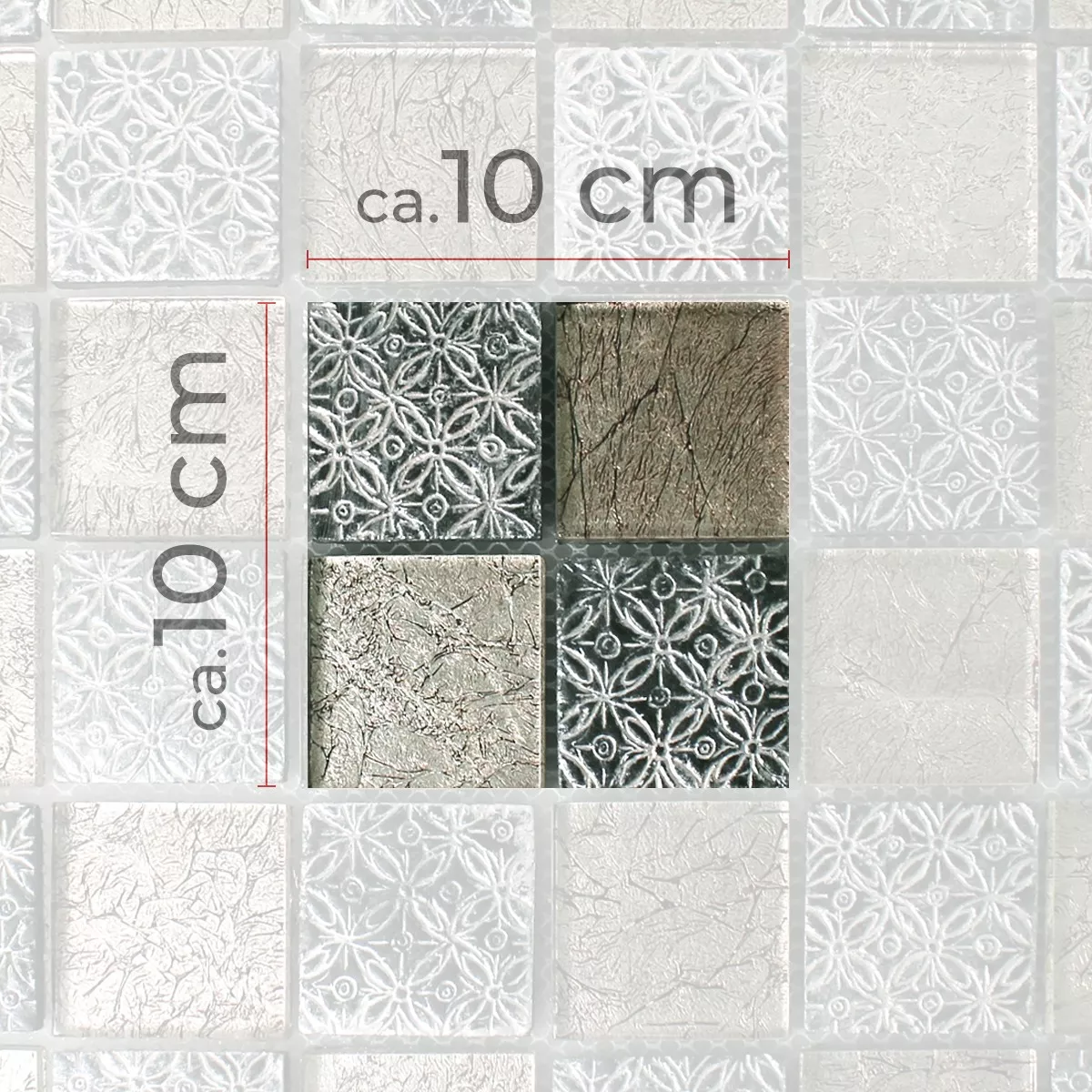 Prøve Glas Natursten Resin Mosaik Fliser Friesia Sølv