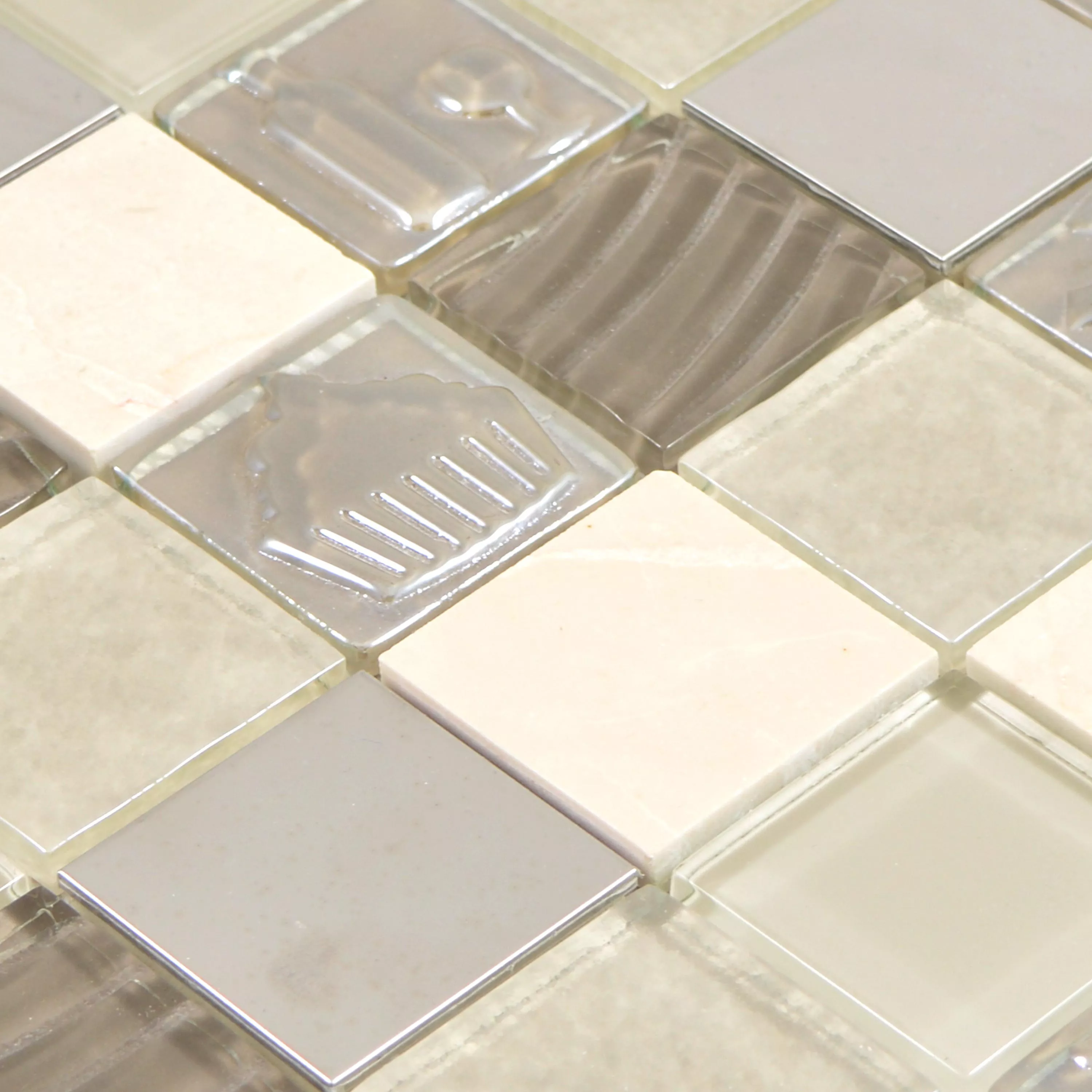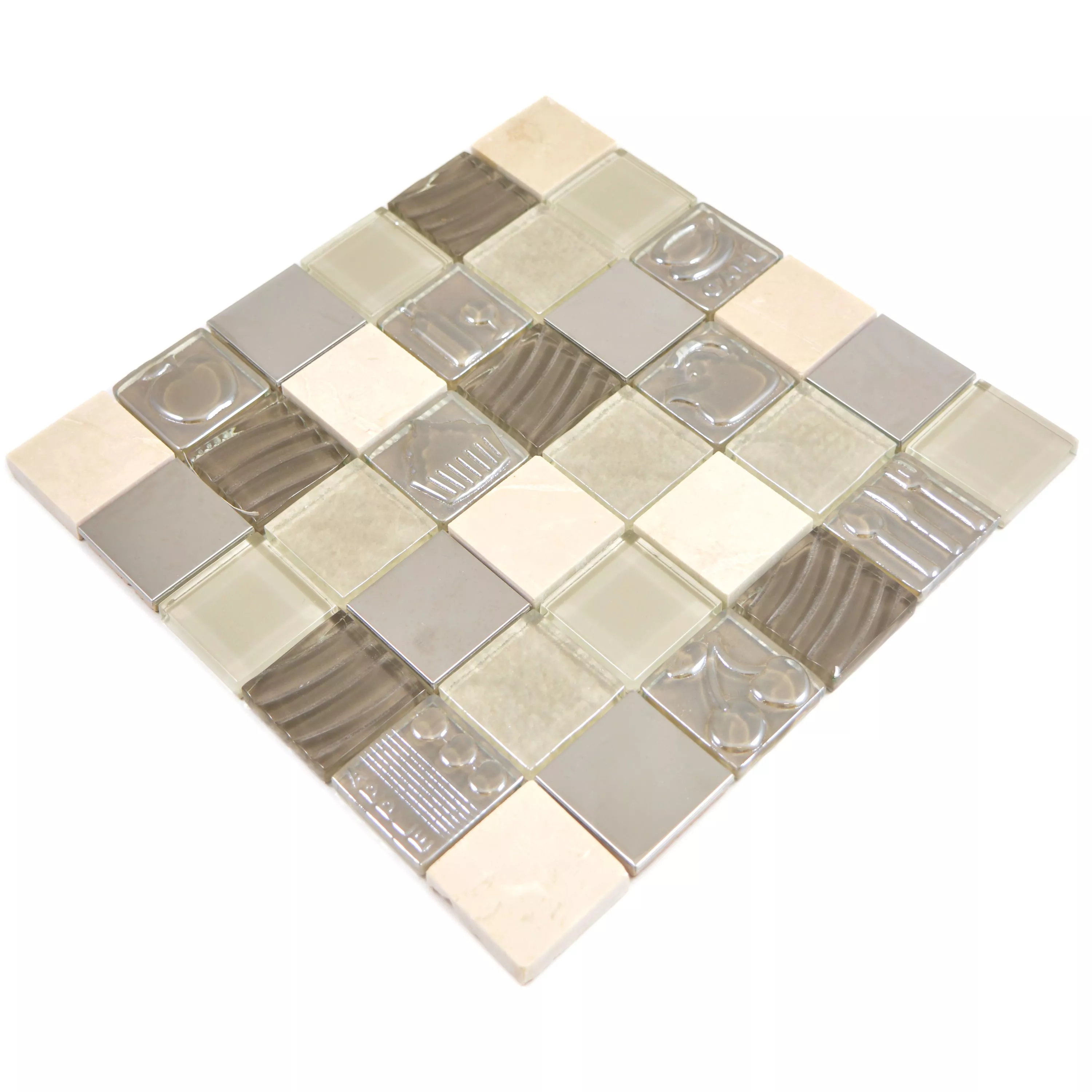 Prøve Glas Rustfrit Stål Natursten Mosaik Fliser Emporia Brun Beige Sølv