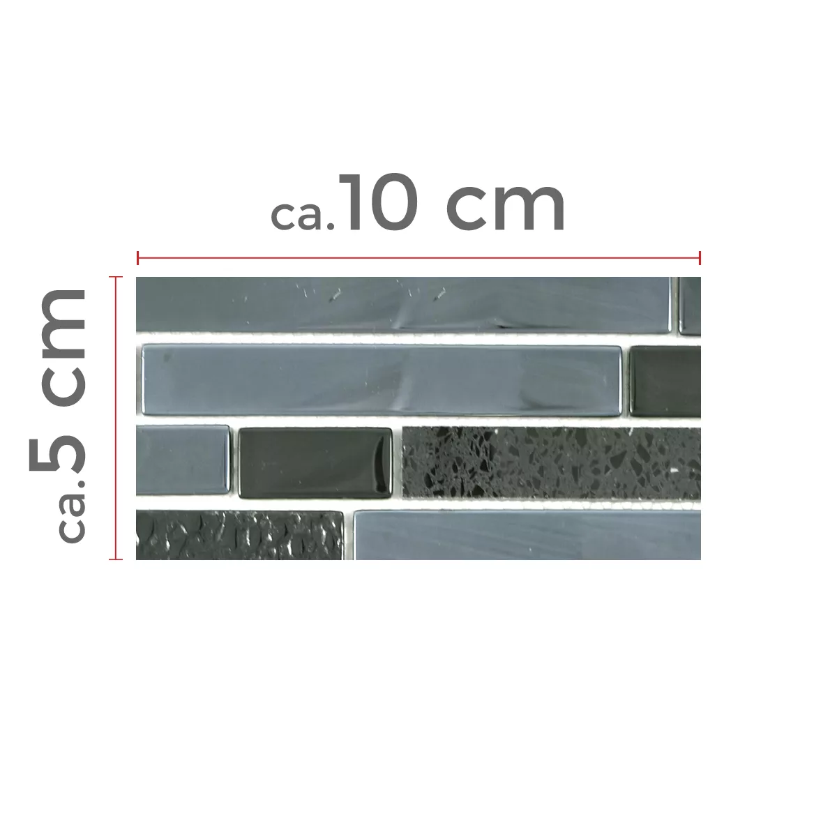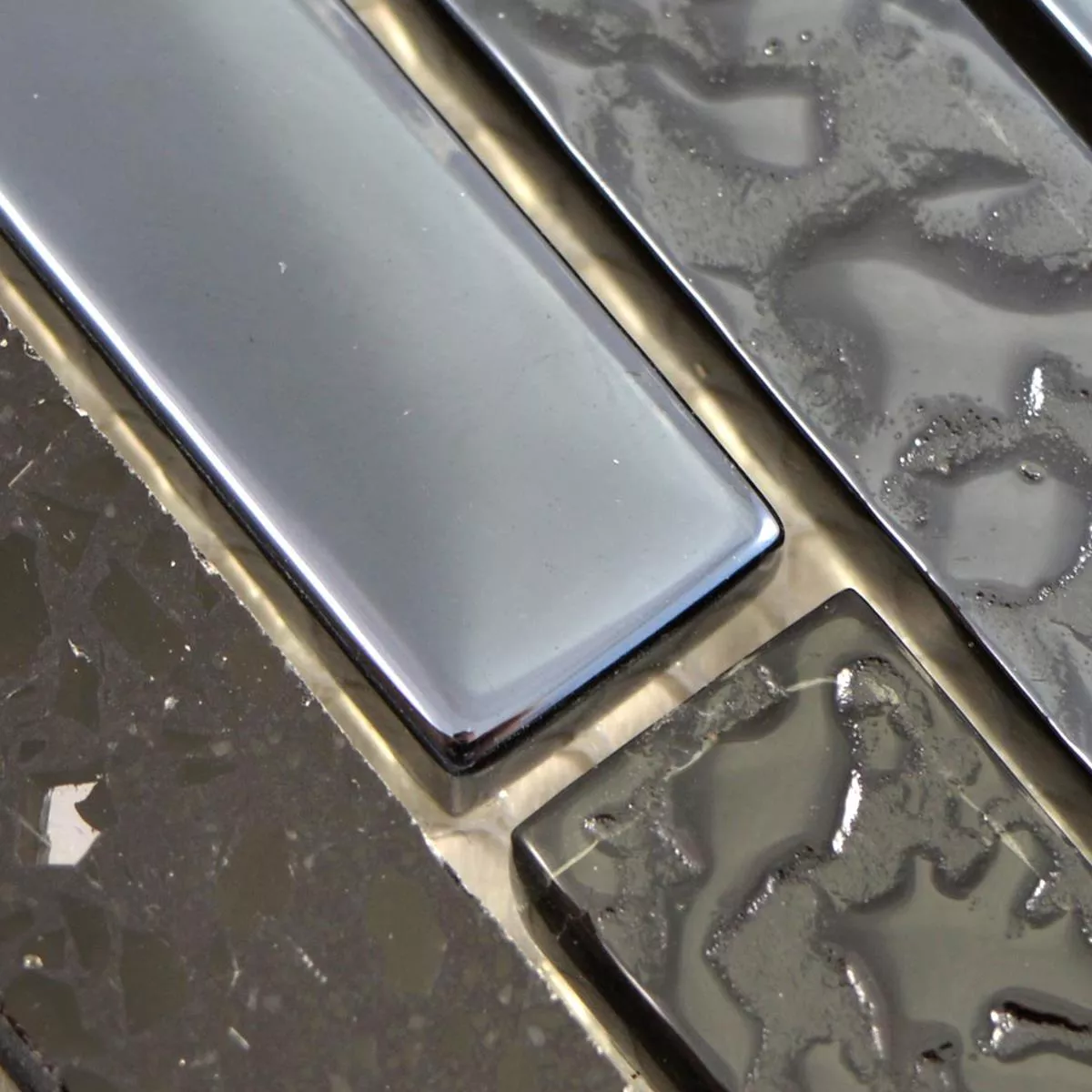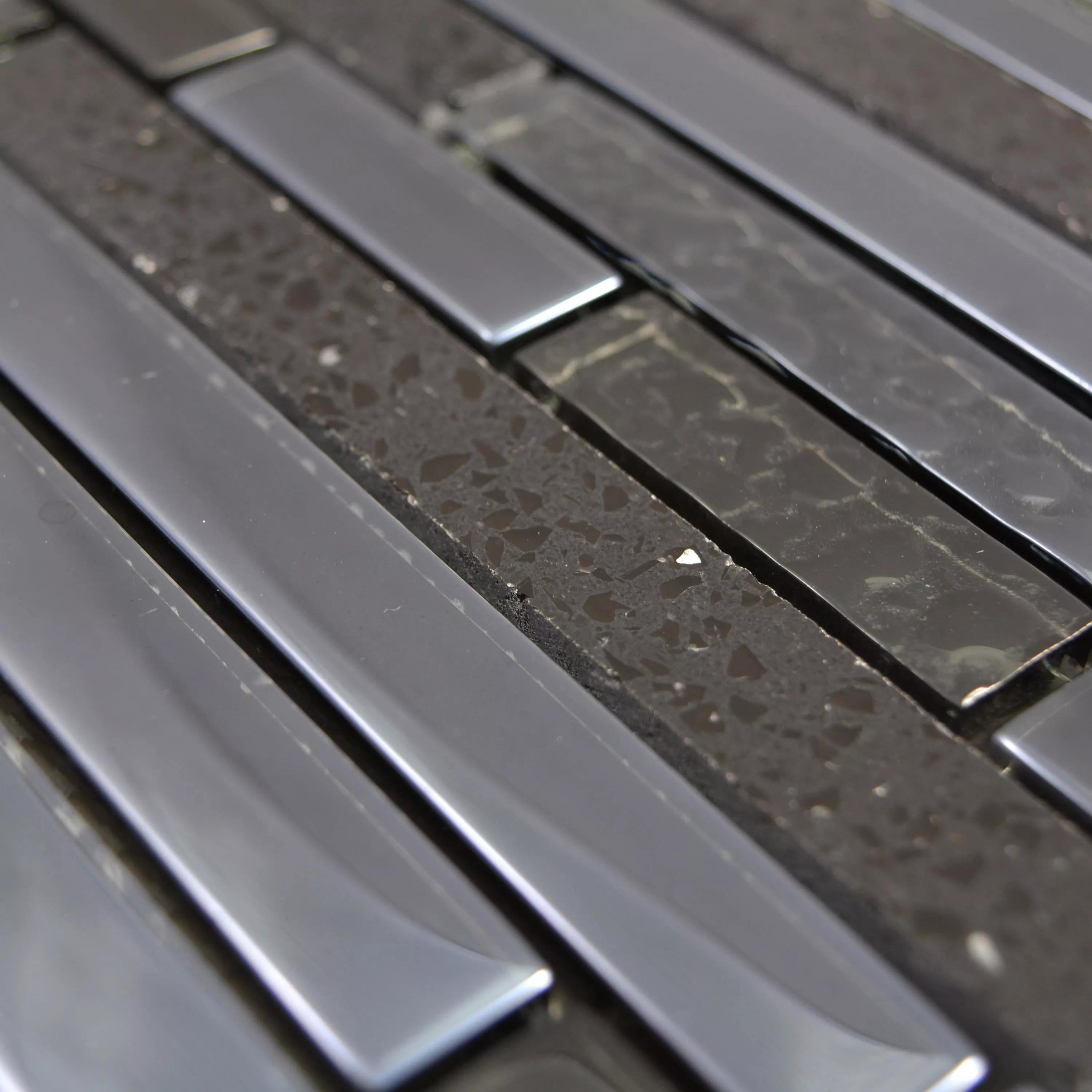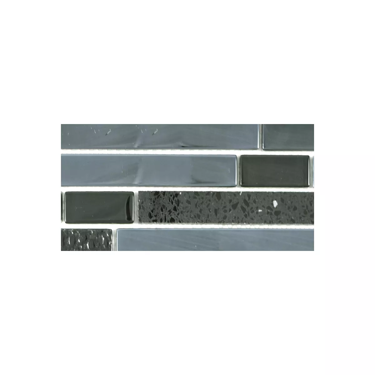 Prøve Glas Sten Rustfrit Stål Mosaik Wilmont Sort Sølv