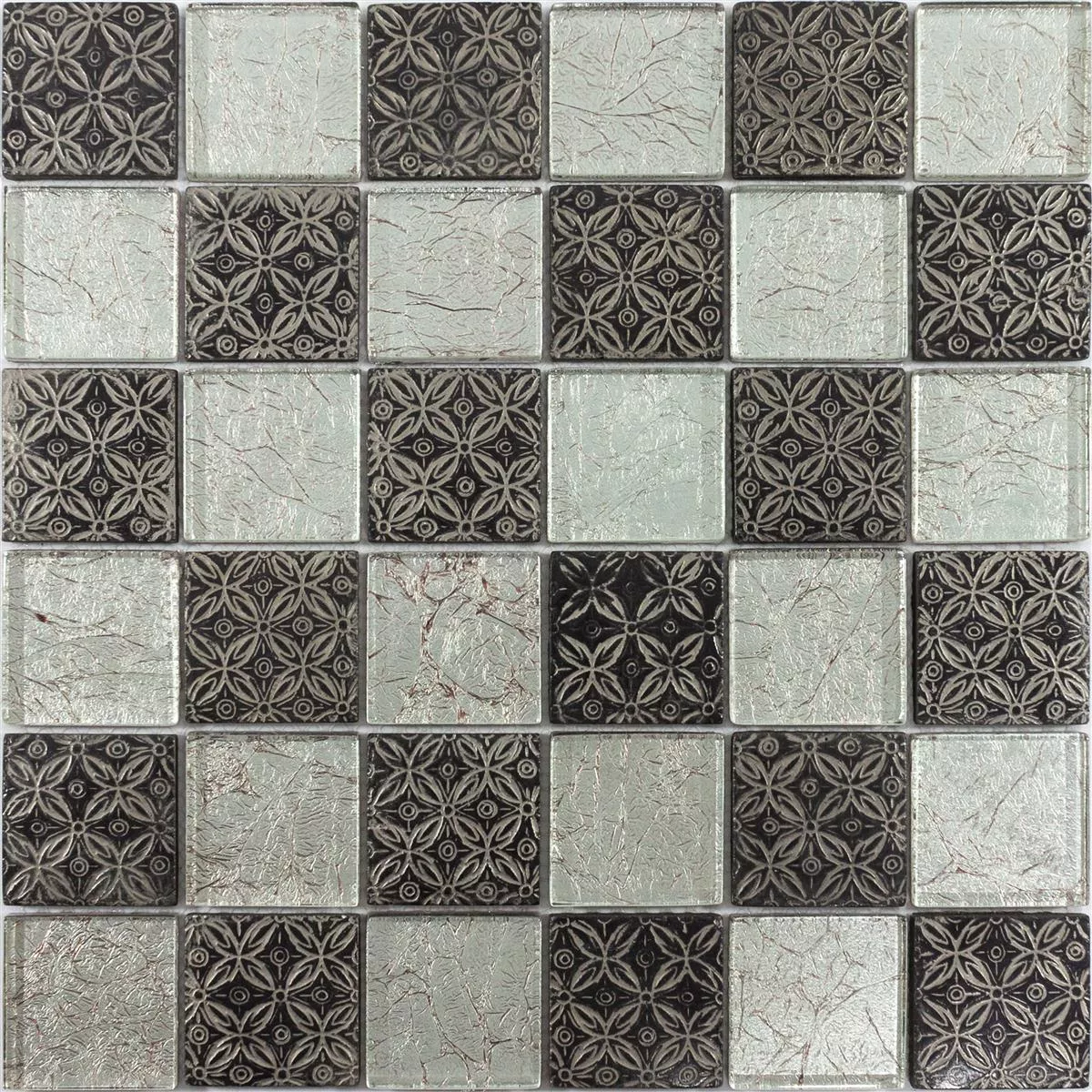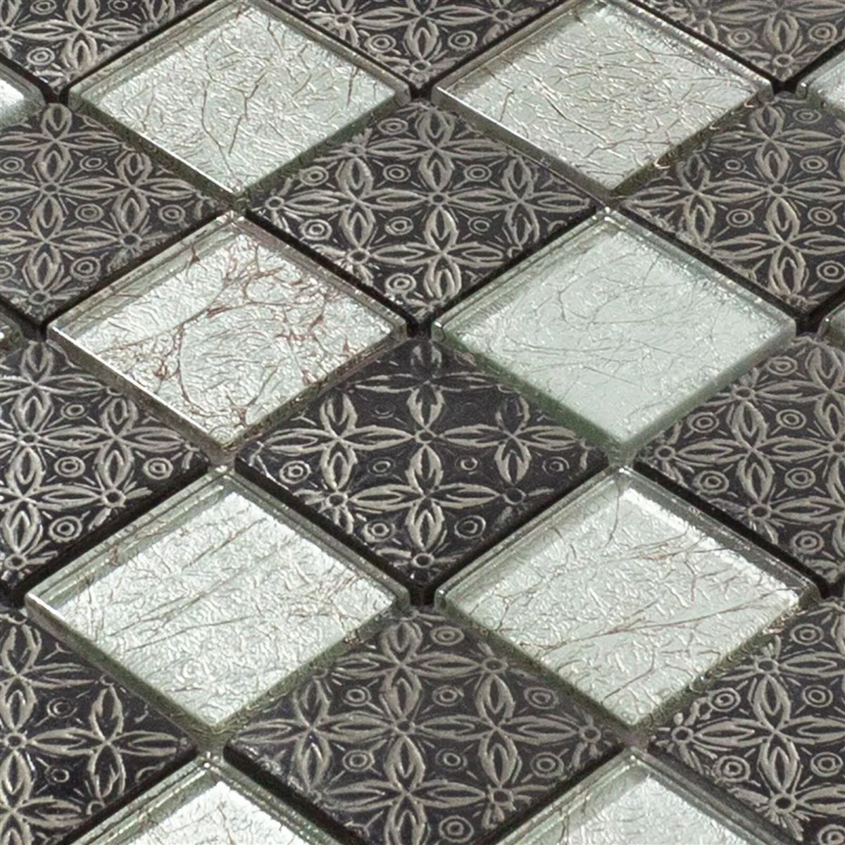 Prøve Glasmosaik Fliser Bayford Ornament Sølv Sort