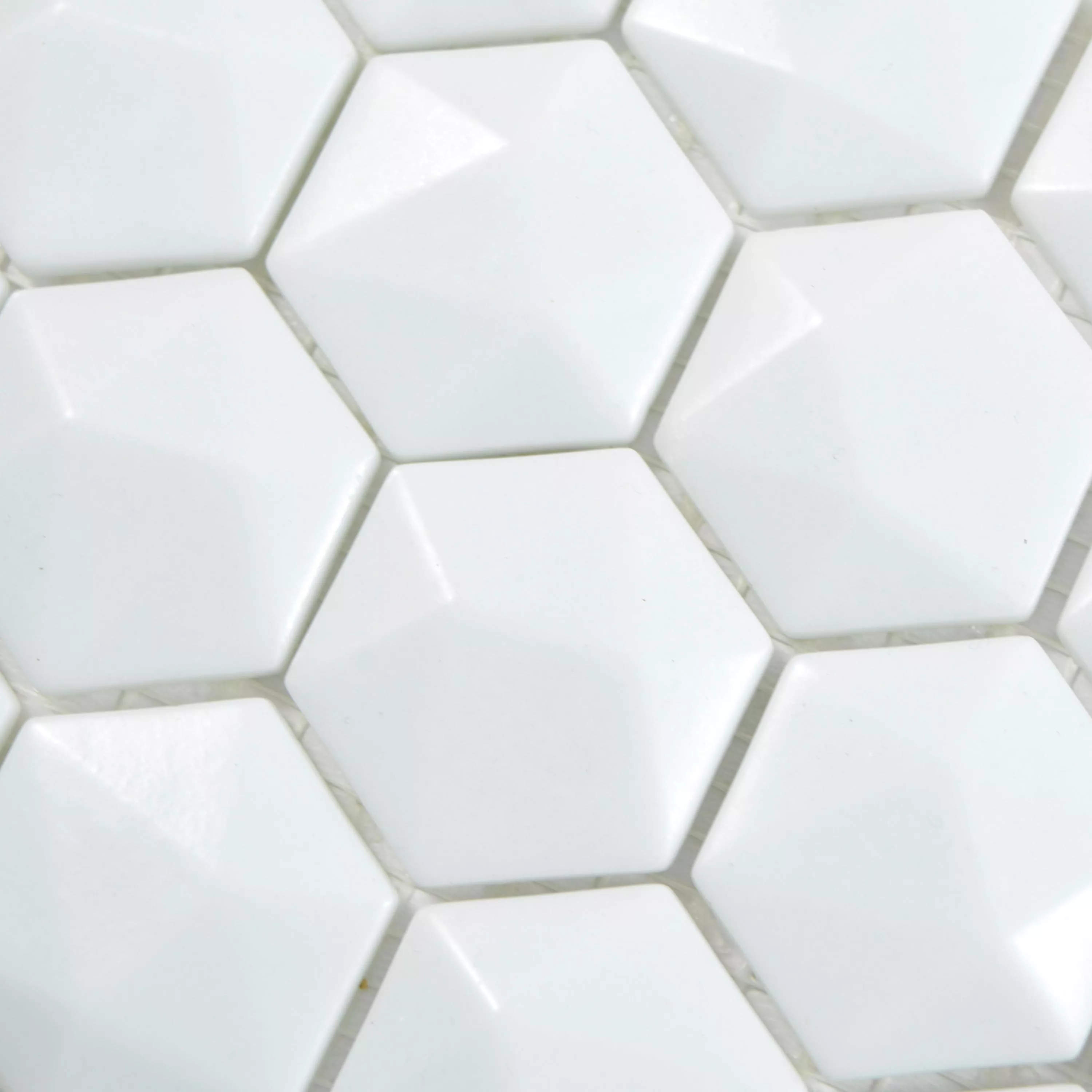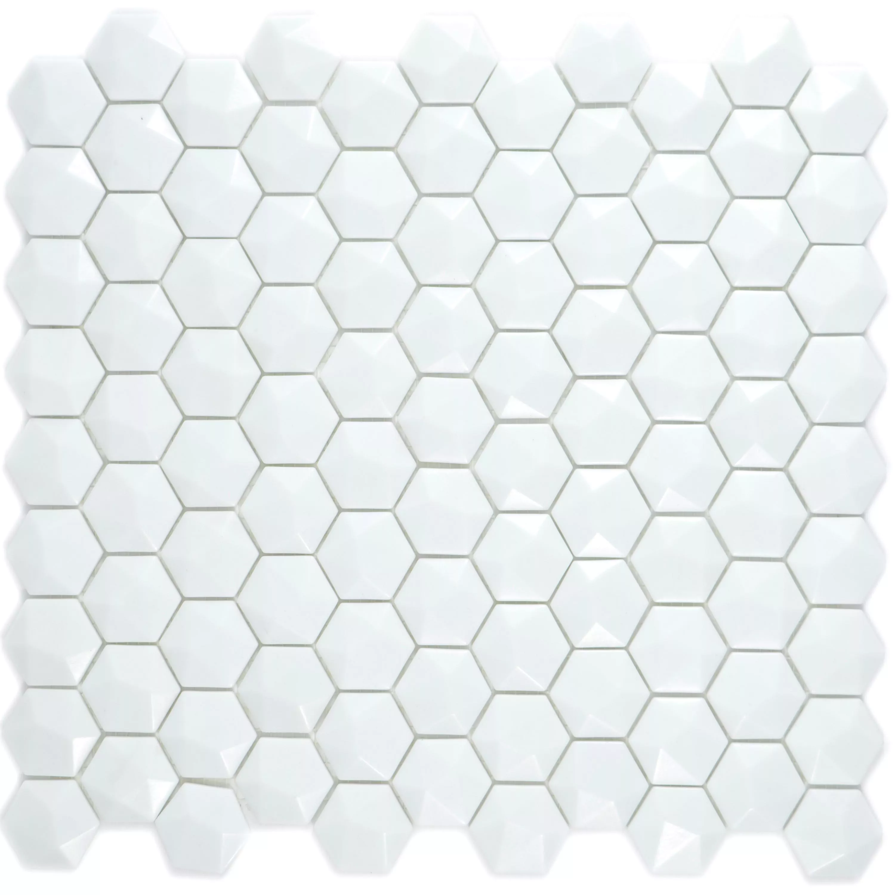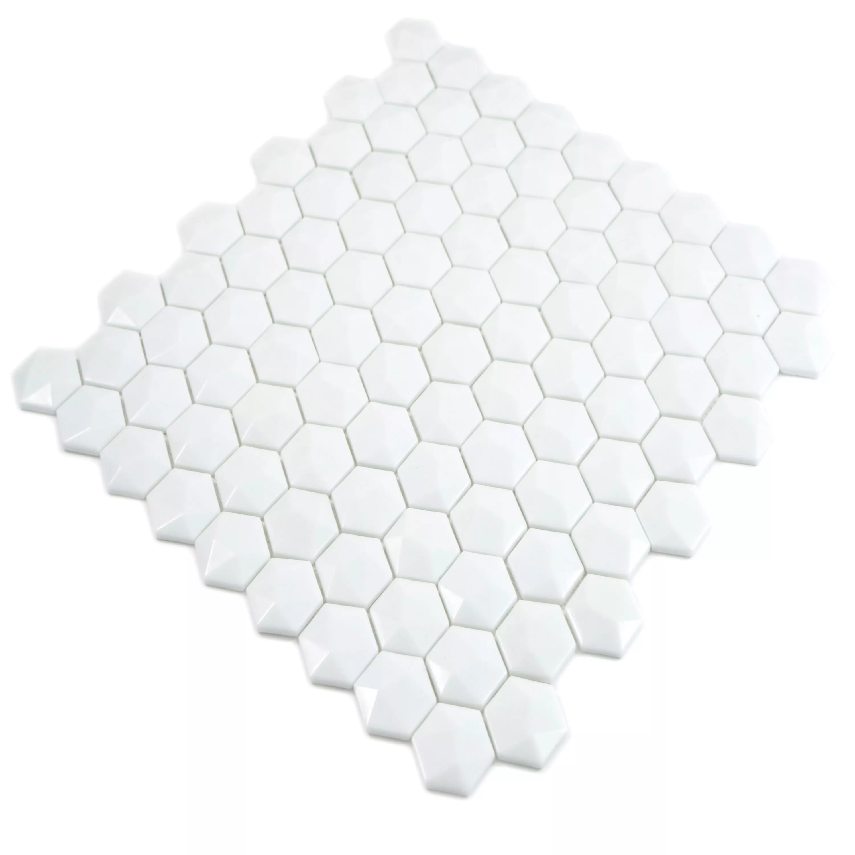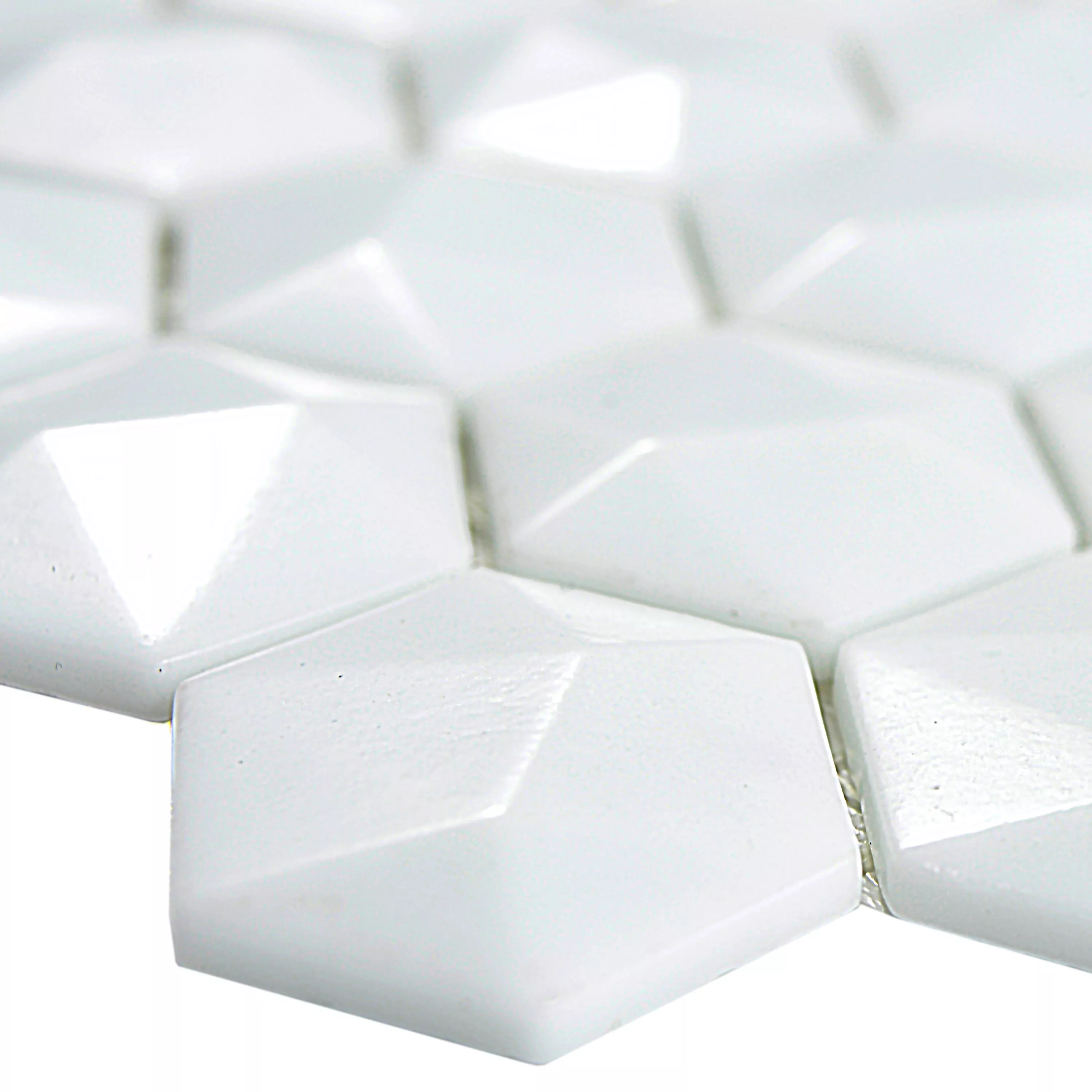 Prøve Glasmosaik Fliser Benevento Hexagon 3D Hvid