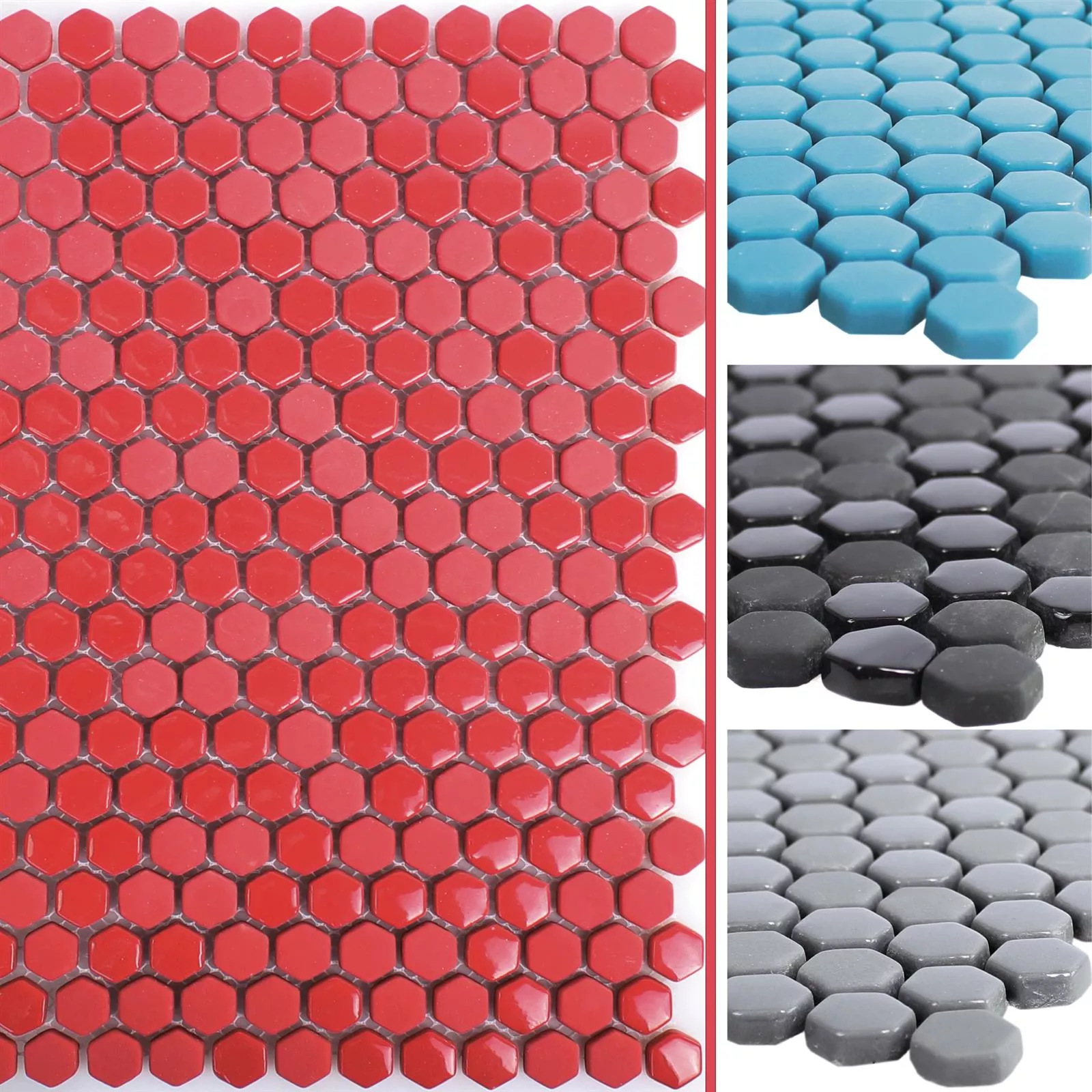 Prøve Glasmosaik Fliser Brockway Hexagon Eco Sort