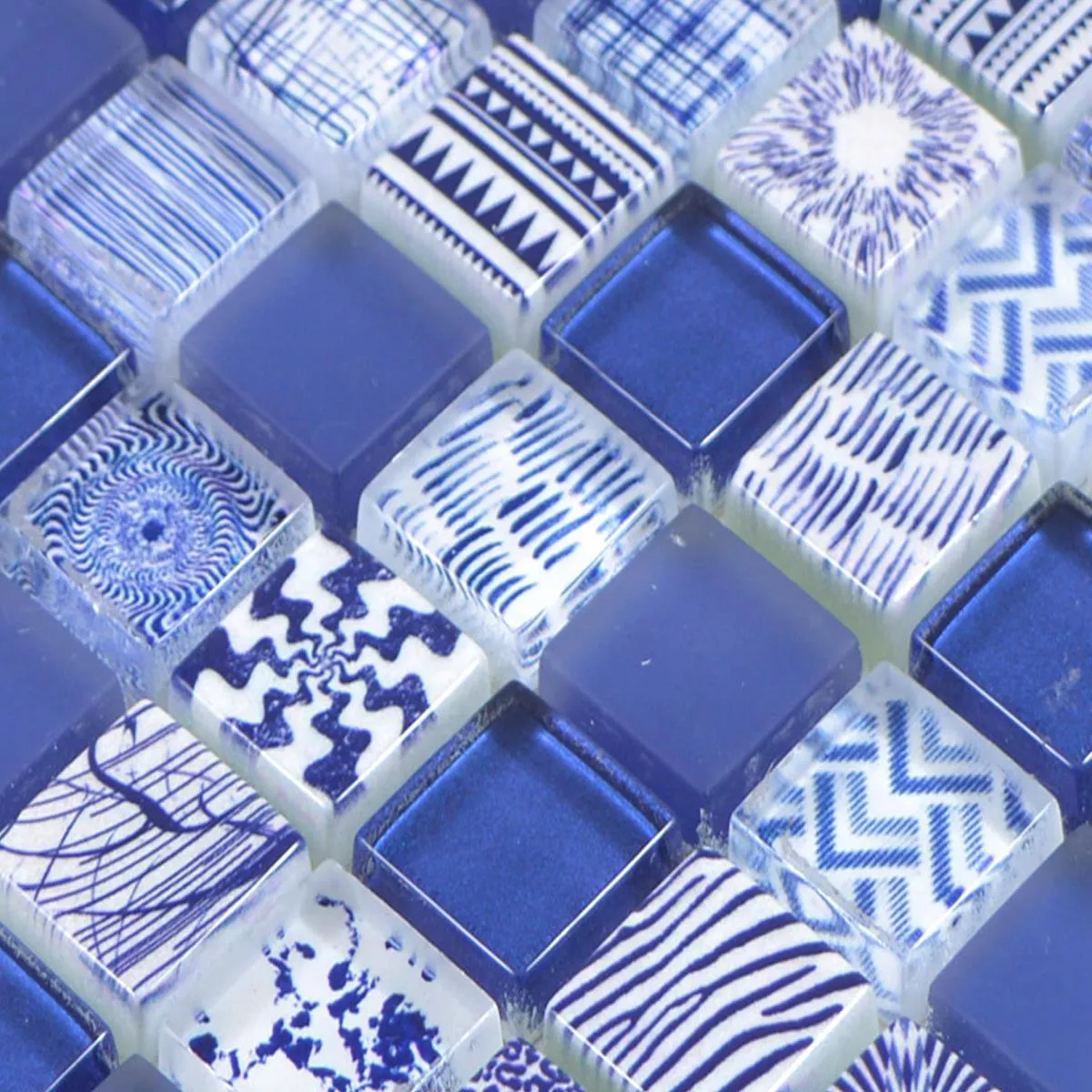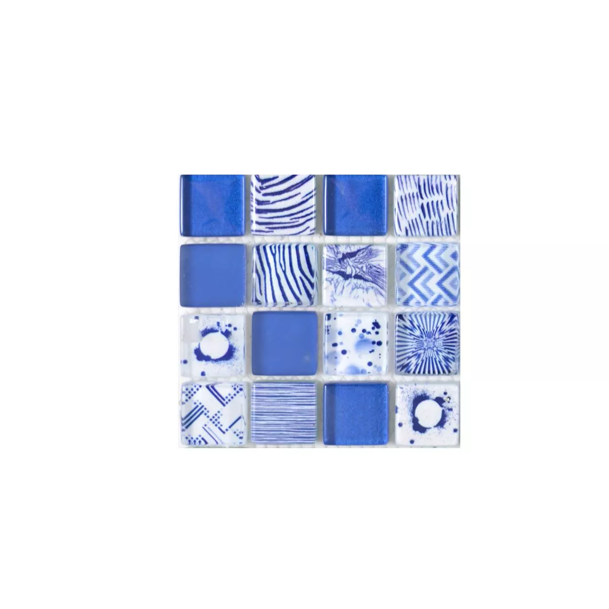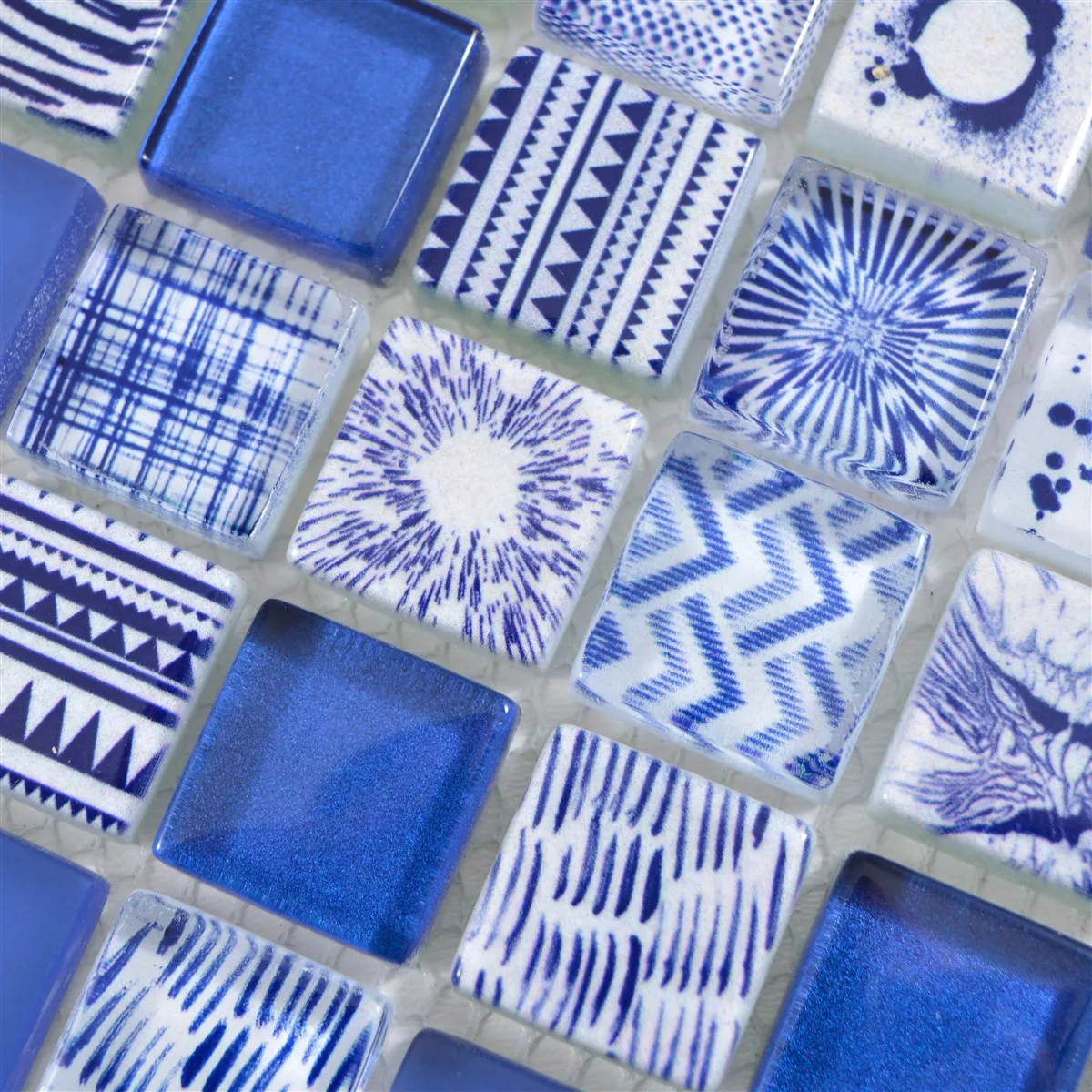Prøve Glasmosaik Fliser Cornelia Retro Optik Blå