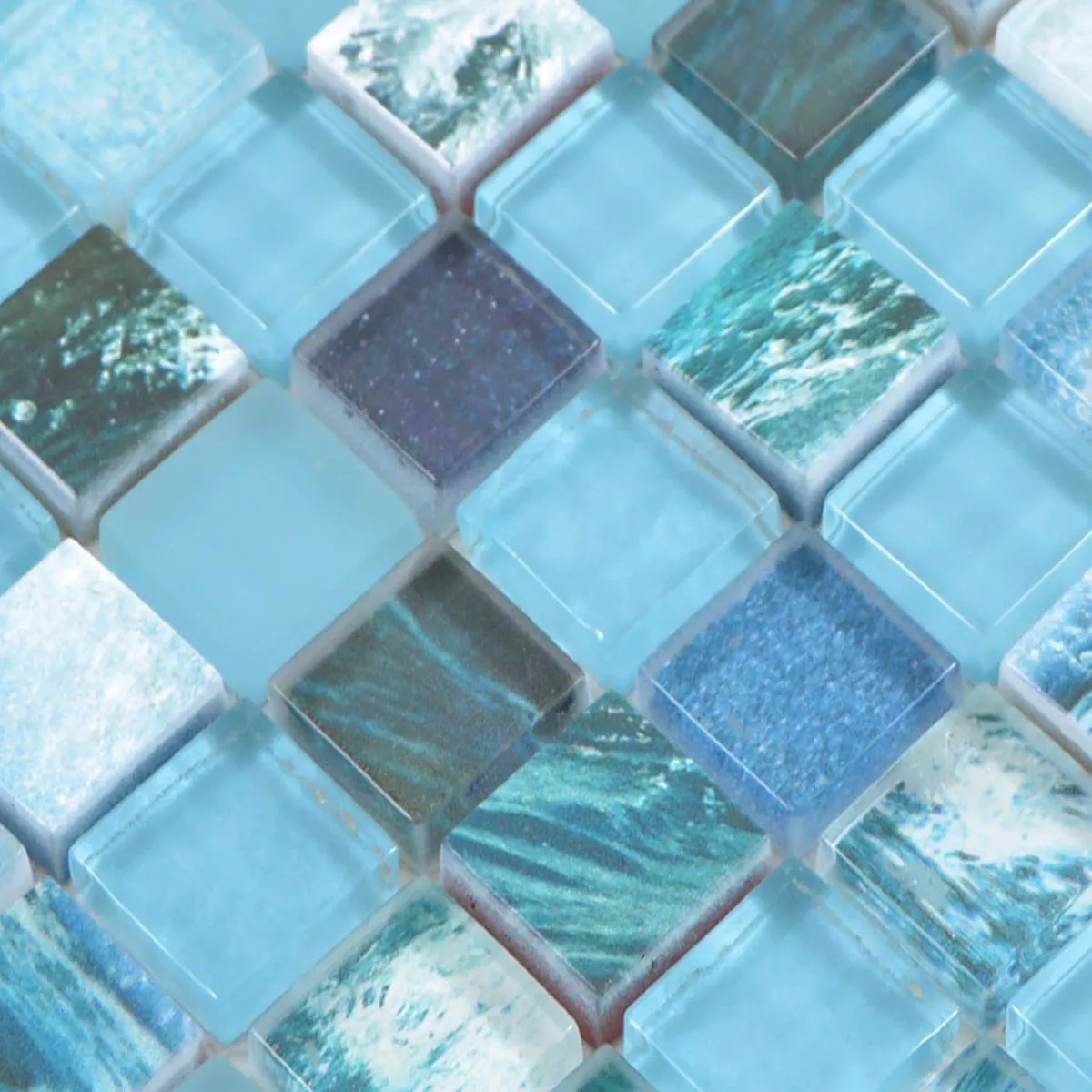 Prøve Glasmosaik Fliser Cornelia Retro Optik Grøn Blå