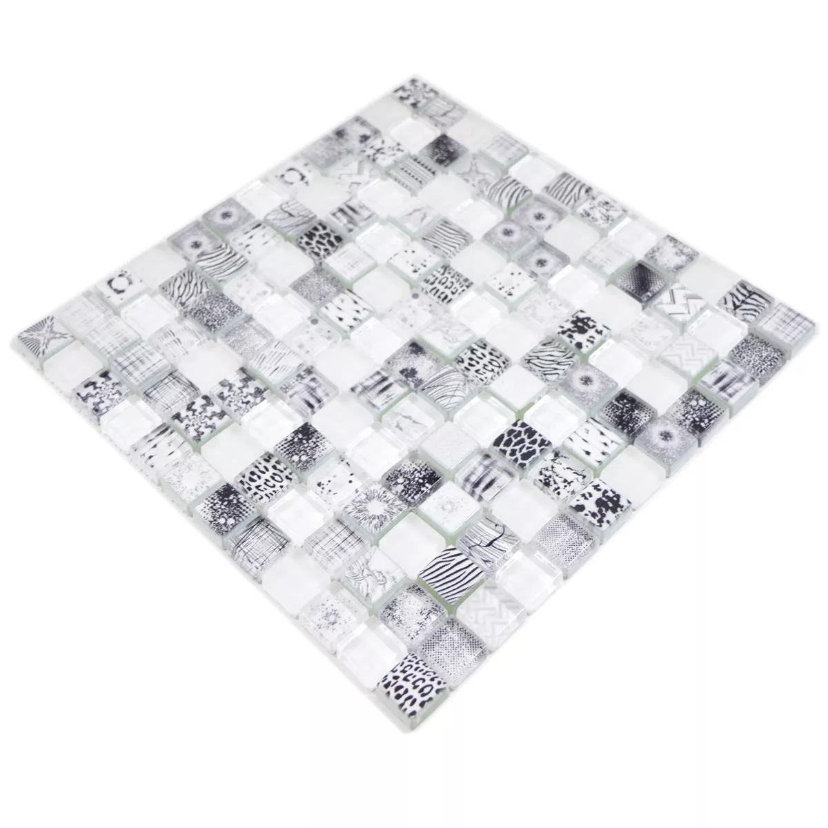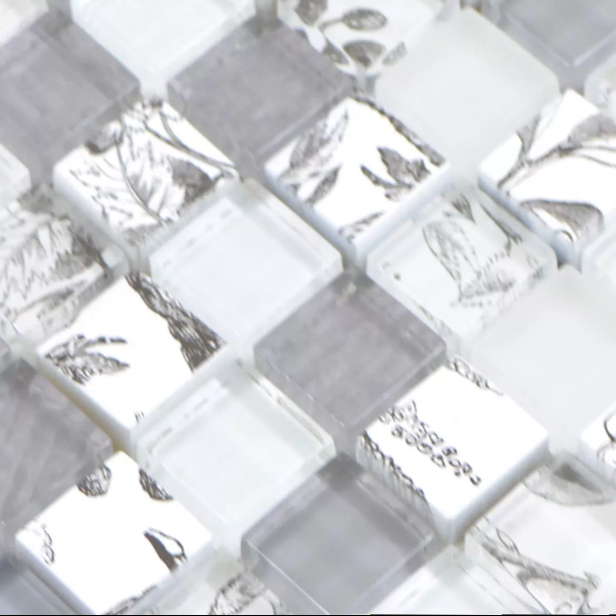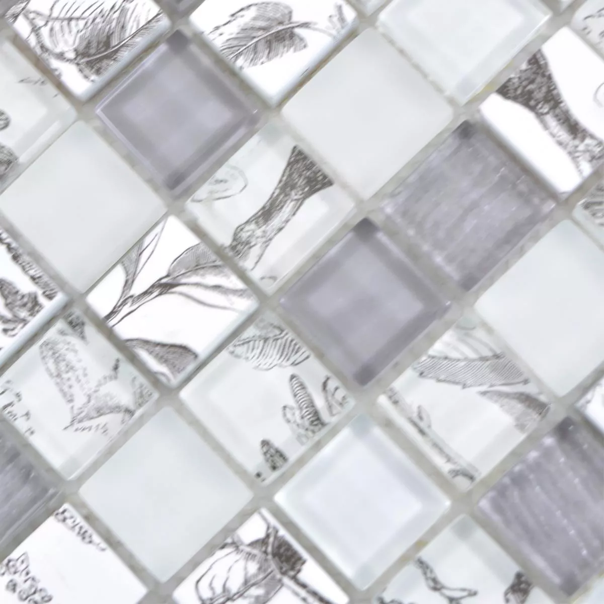 Prøve Glasmosaik Fliser Cornelia Retro Optik Hvid Gra