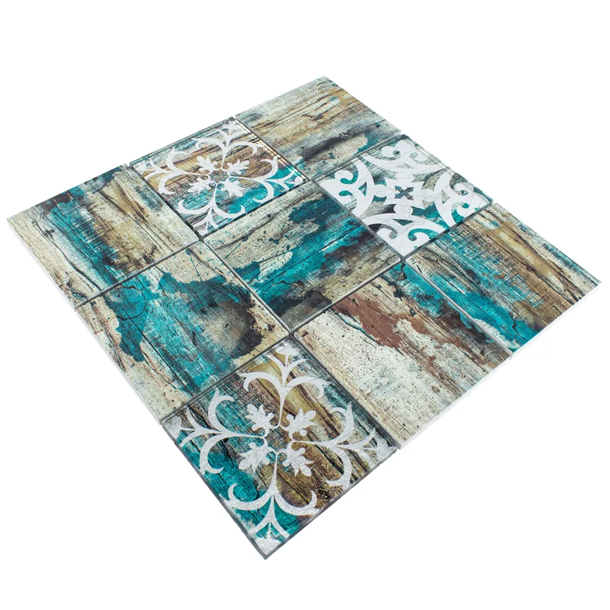 Prøve Glasmosaik Fliser Imiteret Træ Howland Beige Grøn Q98