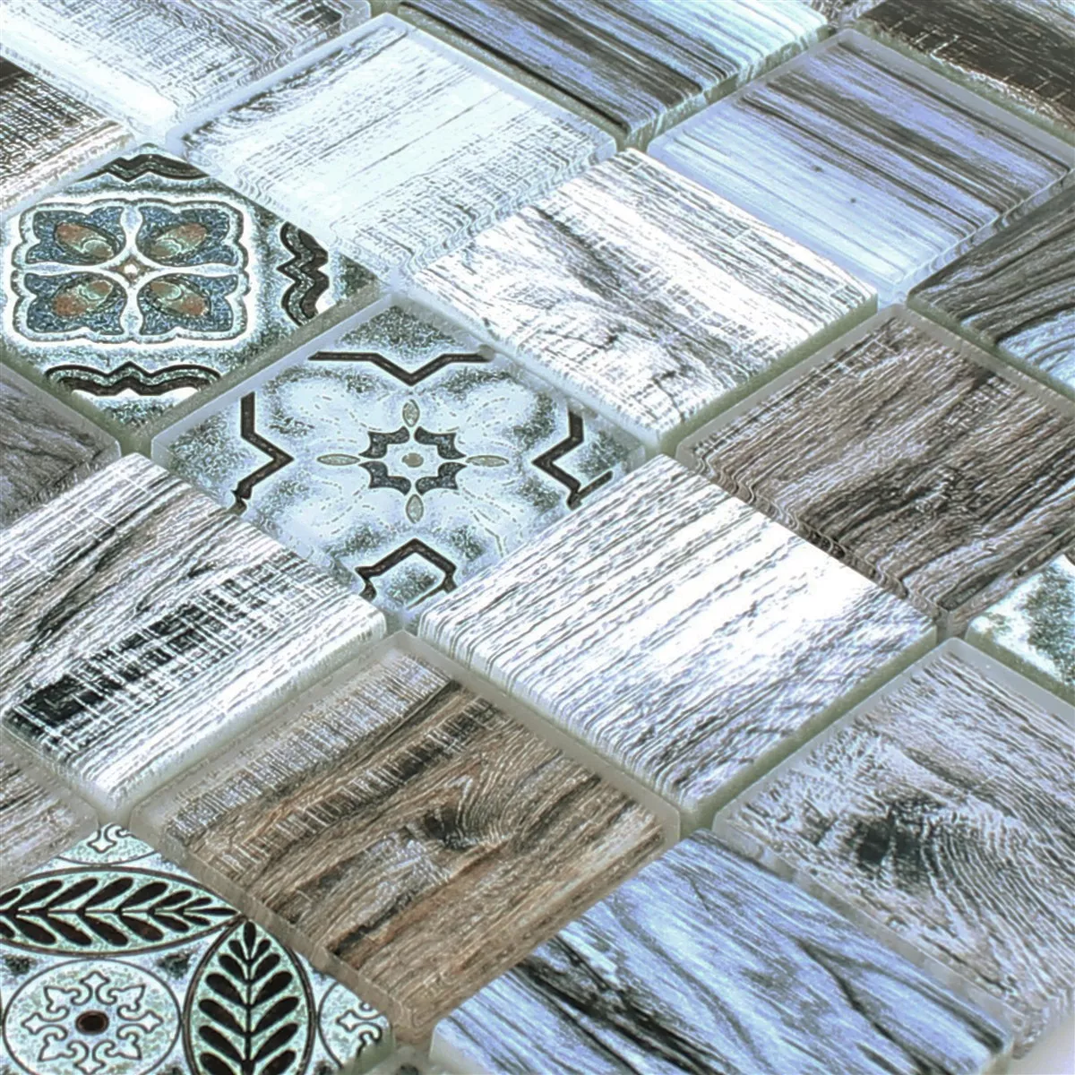 Prøve Glasmosaik Fliser Imiteret Træ Makarska Blå
