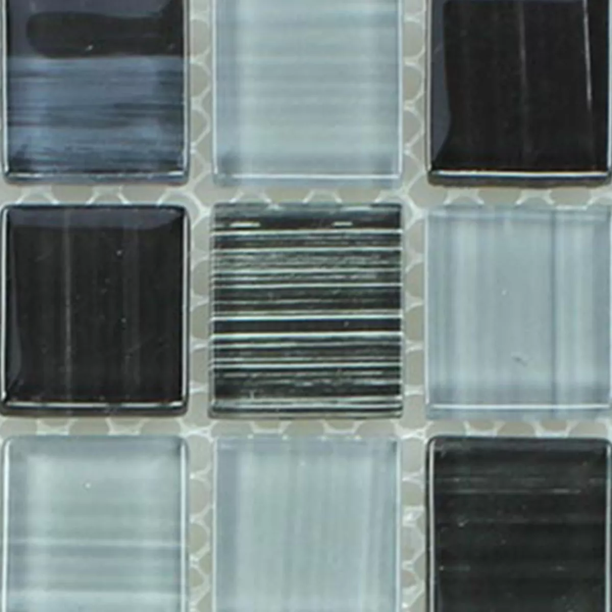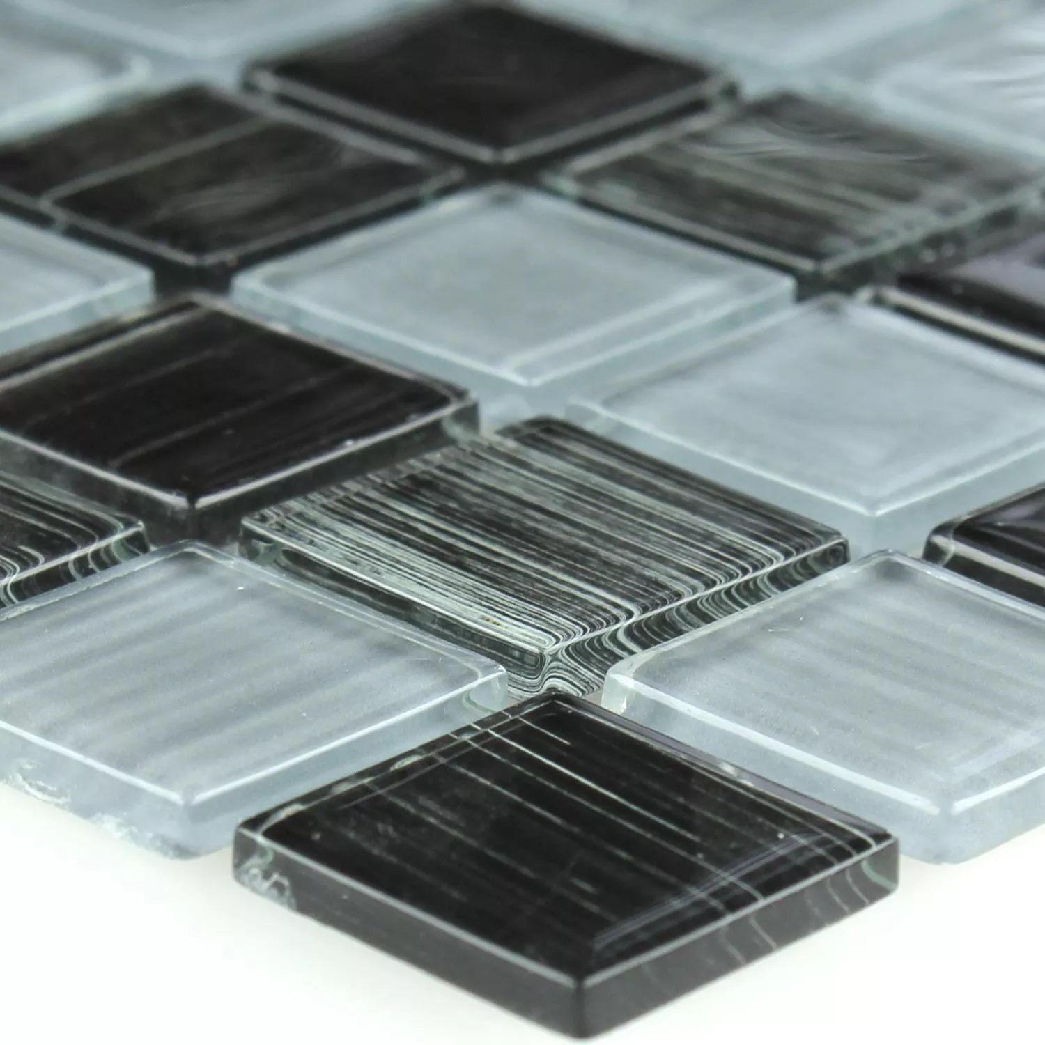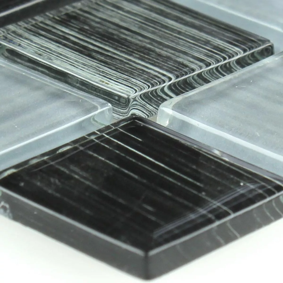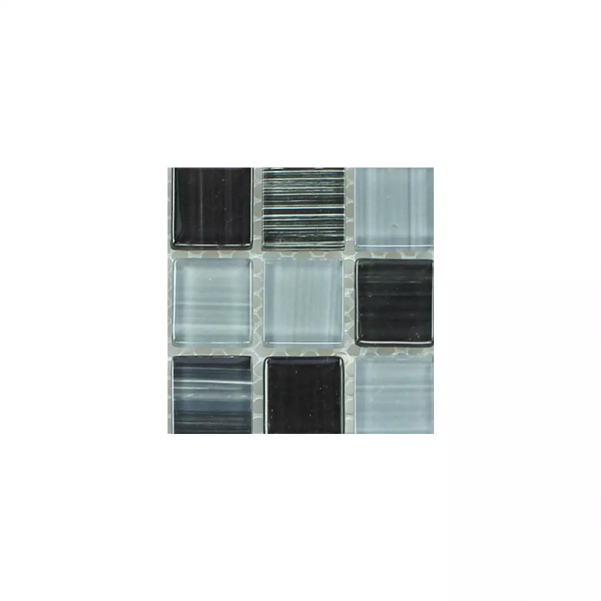 Prøve Glasmosaik Fliser Lafayette Sort Gra Stribet