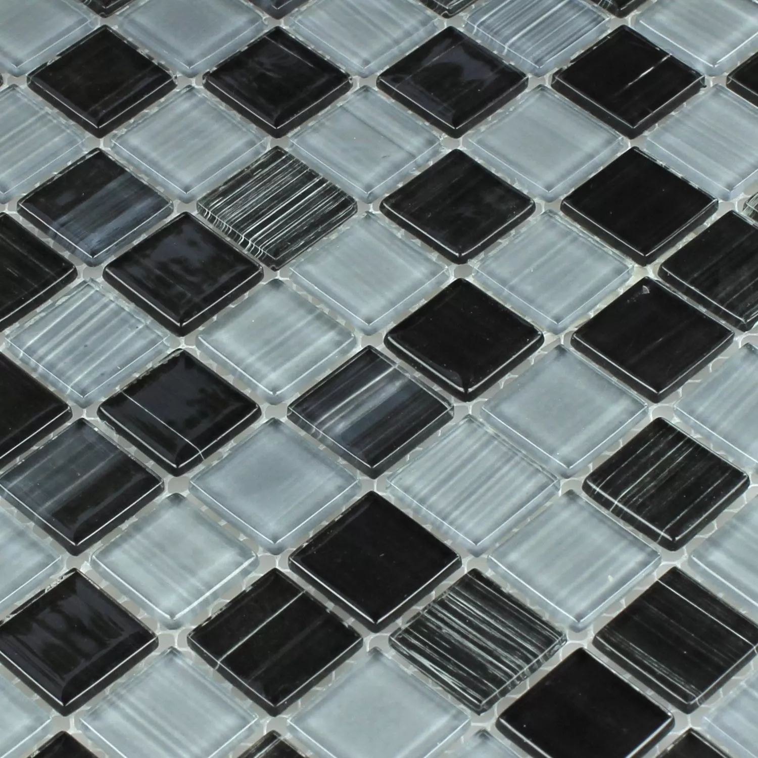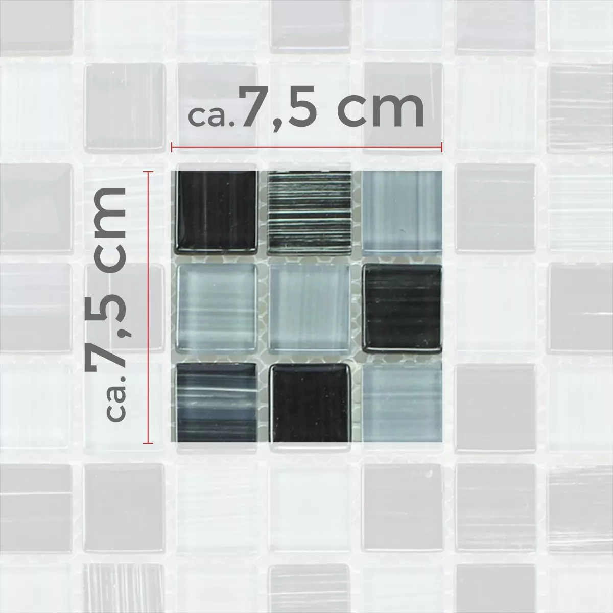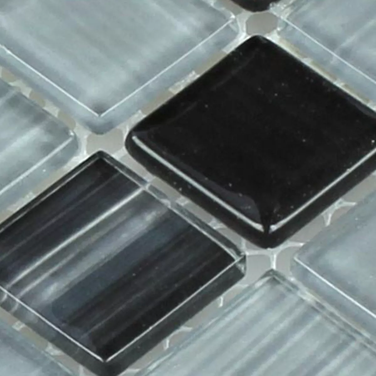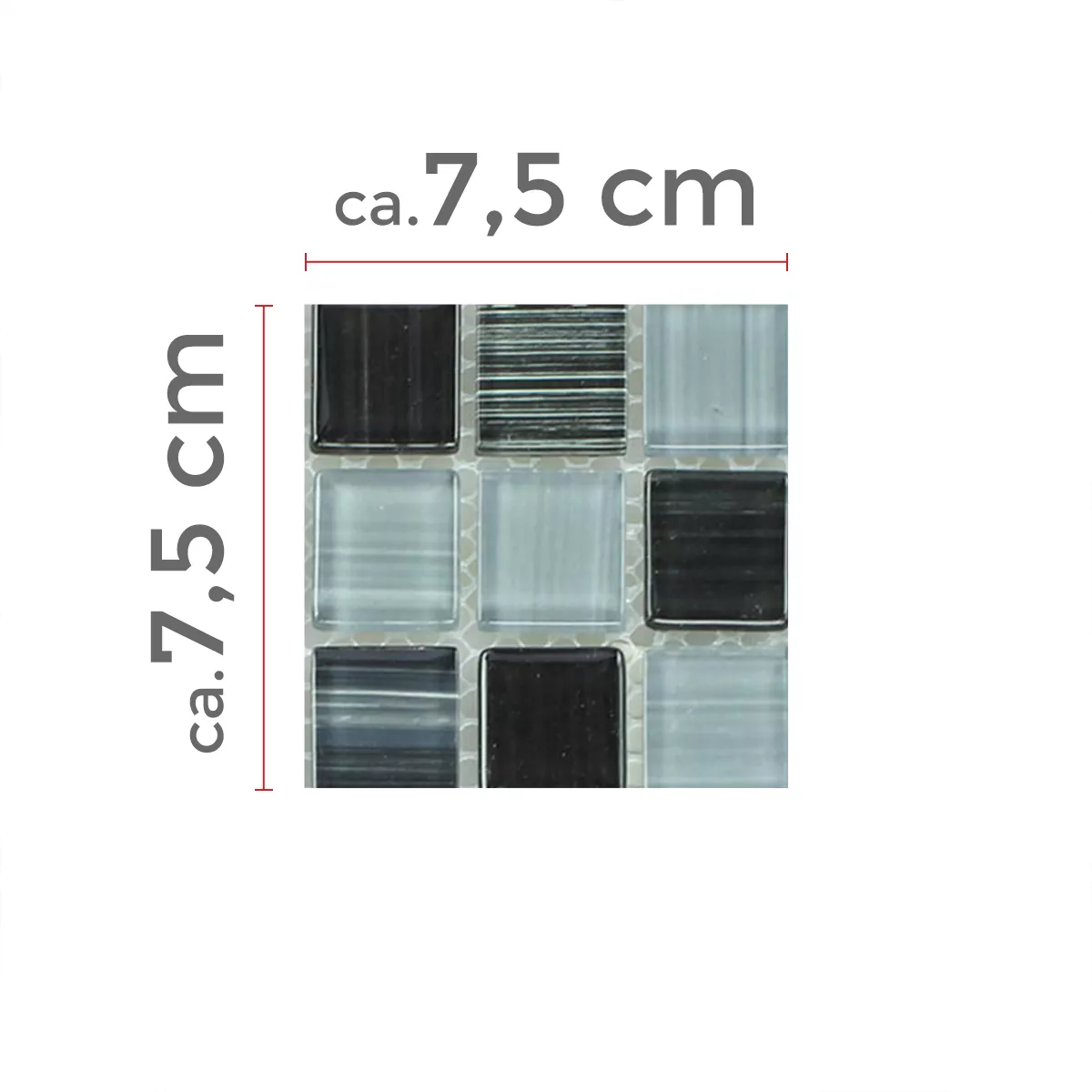 Prøve Glasmosaik Fliser Lafayette Sort Gra Stribet