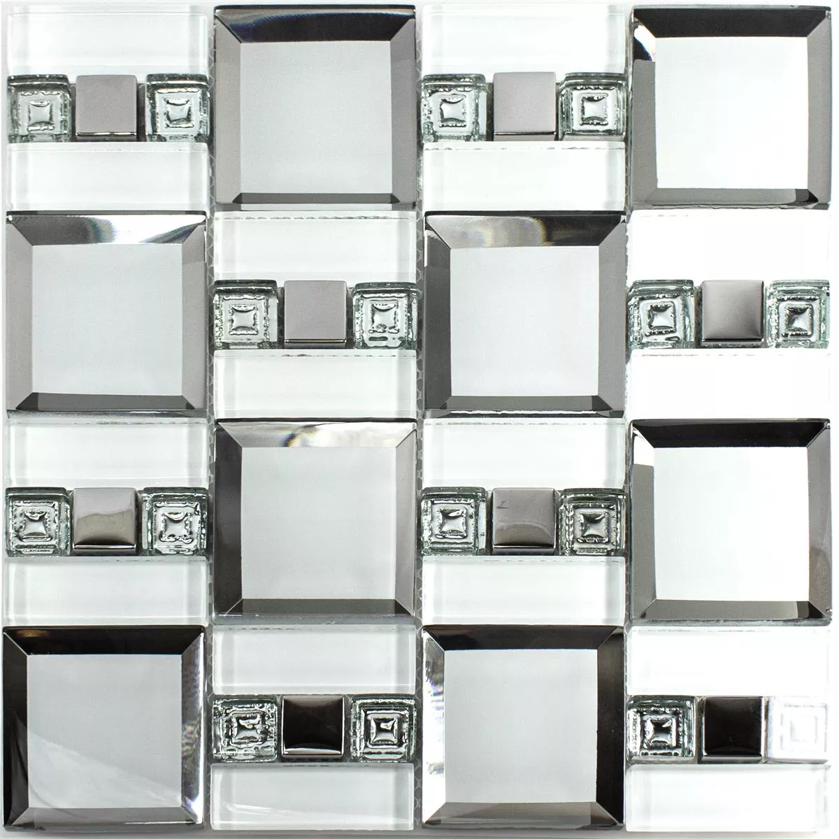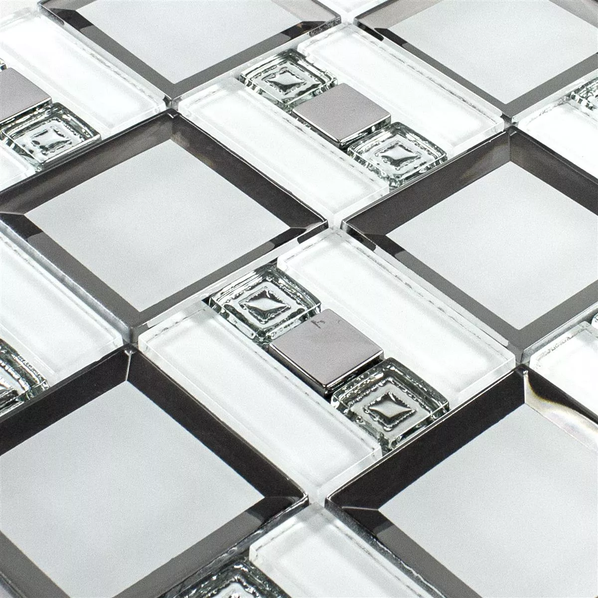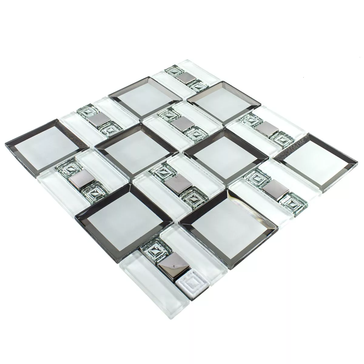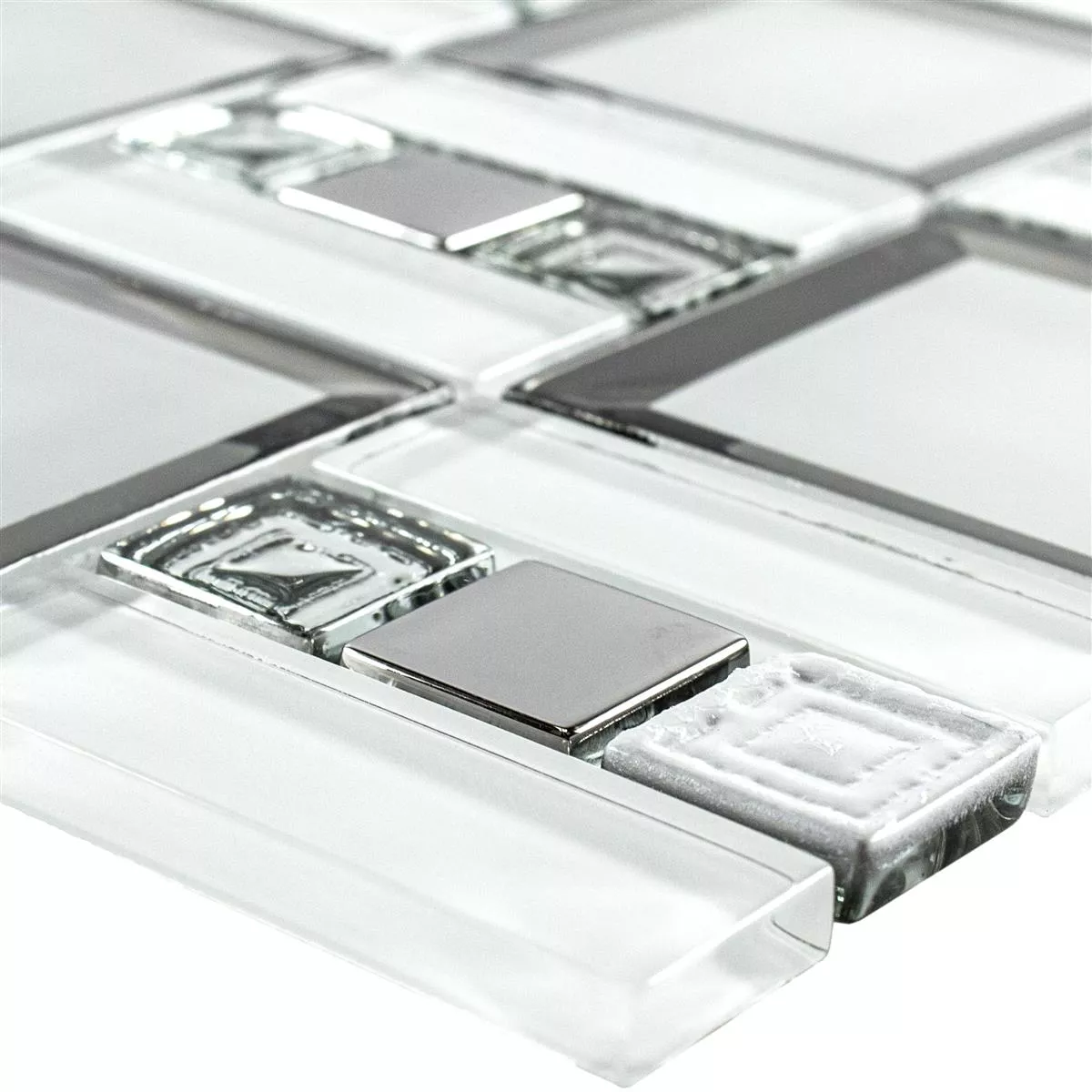 Prøve Glasmosaik Fliser Magical Hvid Sølv