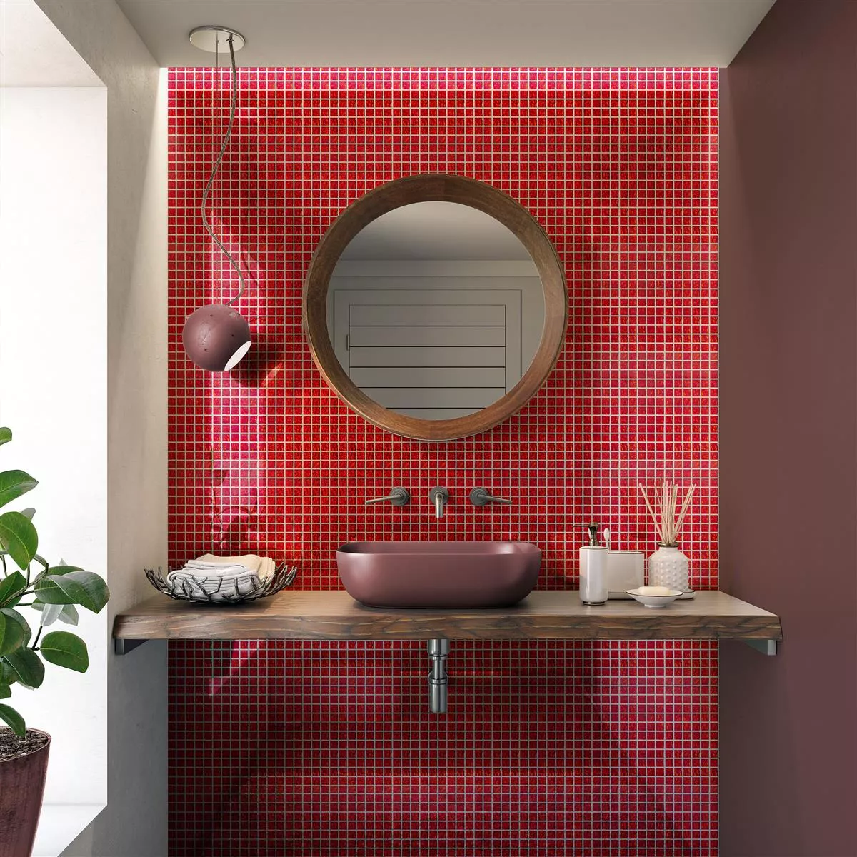 Prøve Glasmosaik Fliser Santa Cruz Struktureret Rød