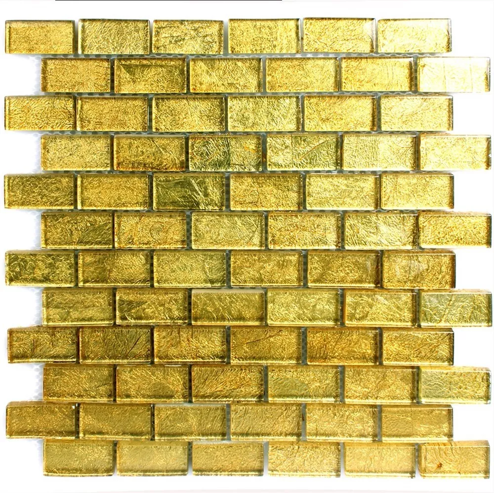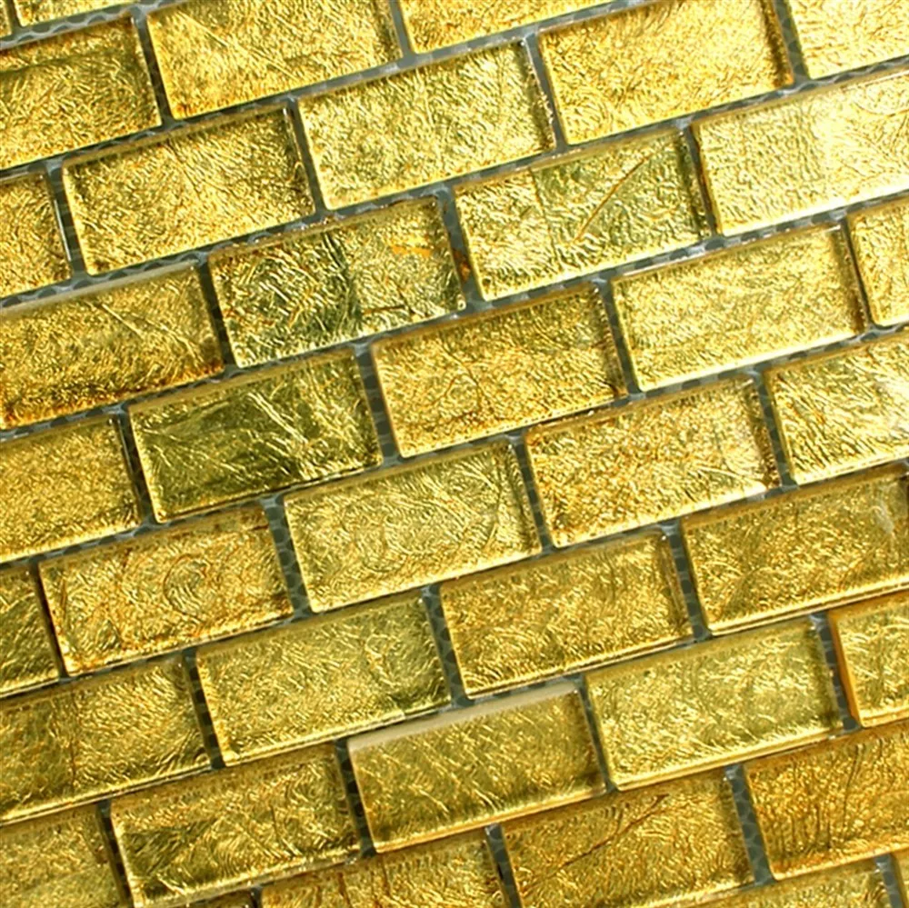 Prøve Glasmosaik Fliser Saturn Guld Rektangel