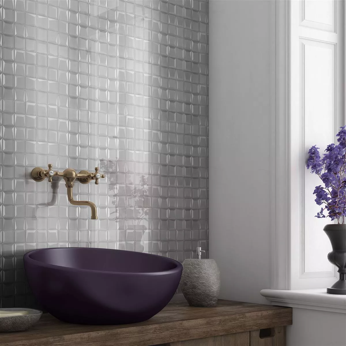 Prøve Glasmosaik Fliser Venedig 3D Sølv