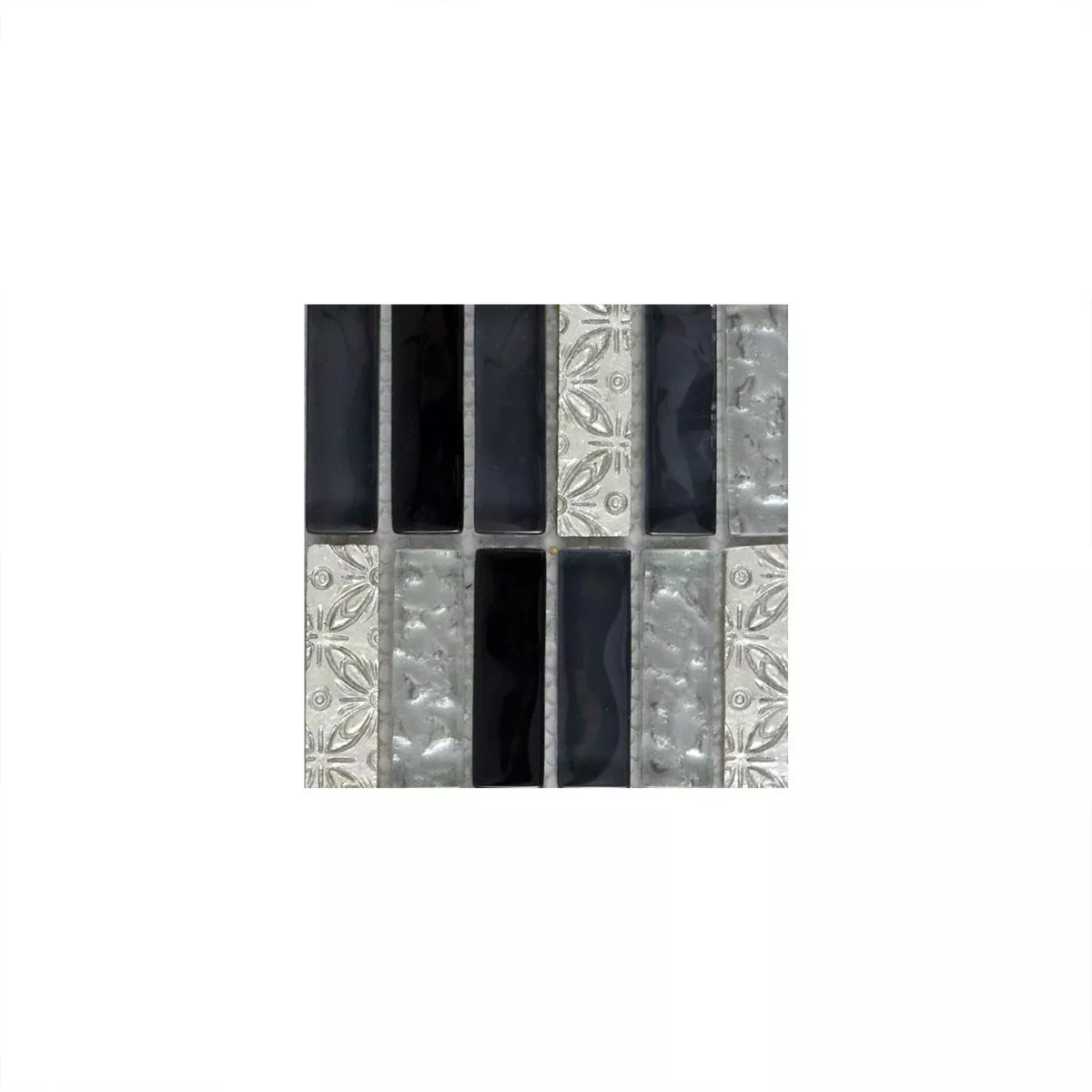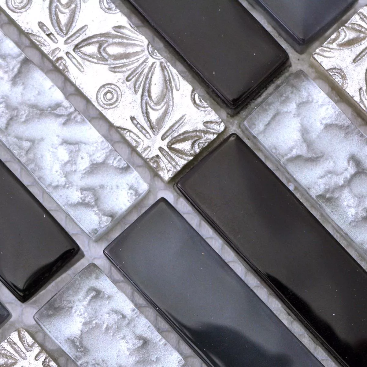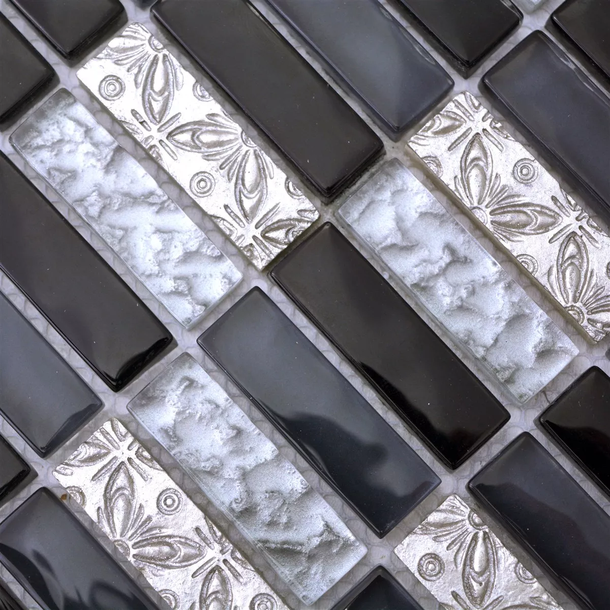 Prøve Glasmosaik Natursten Fliser Conchita Sort Sølv