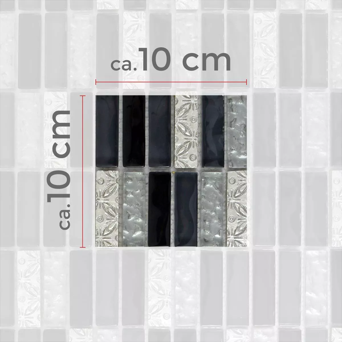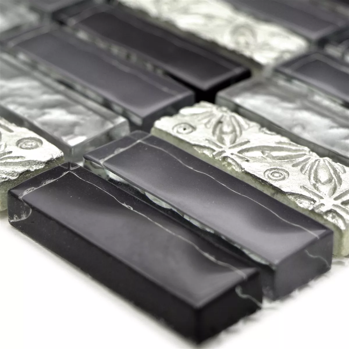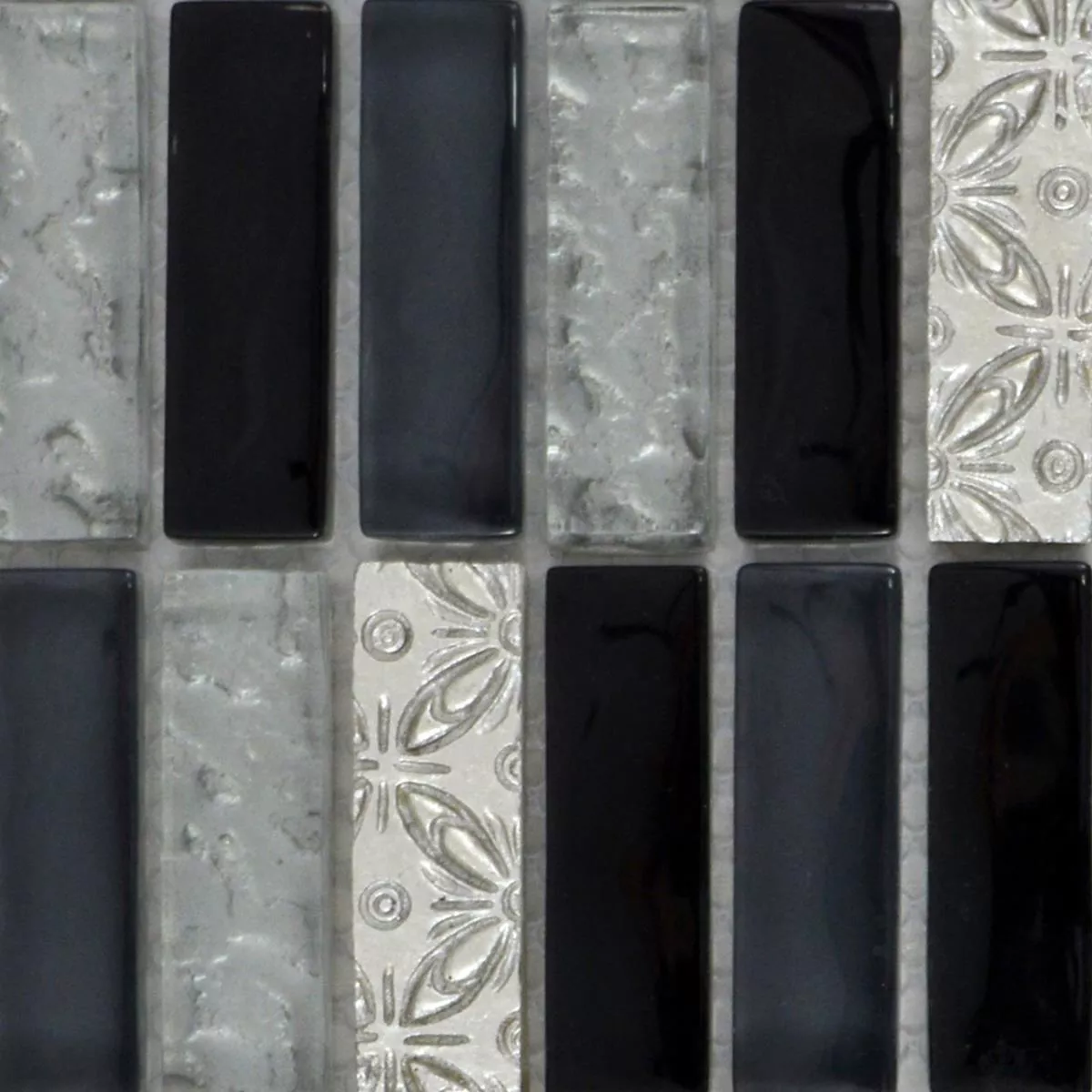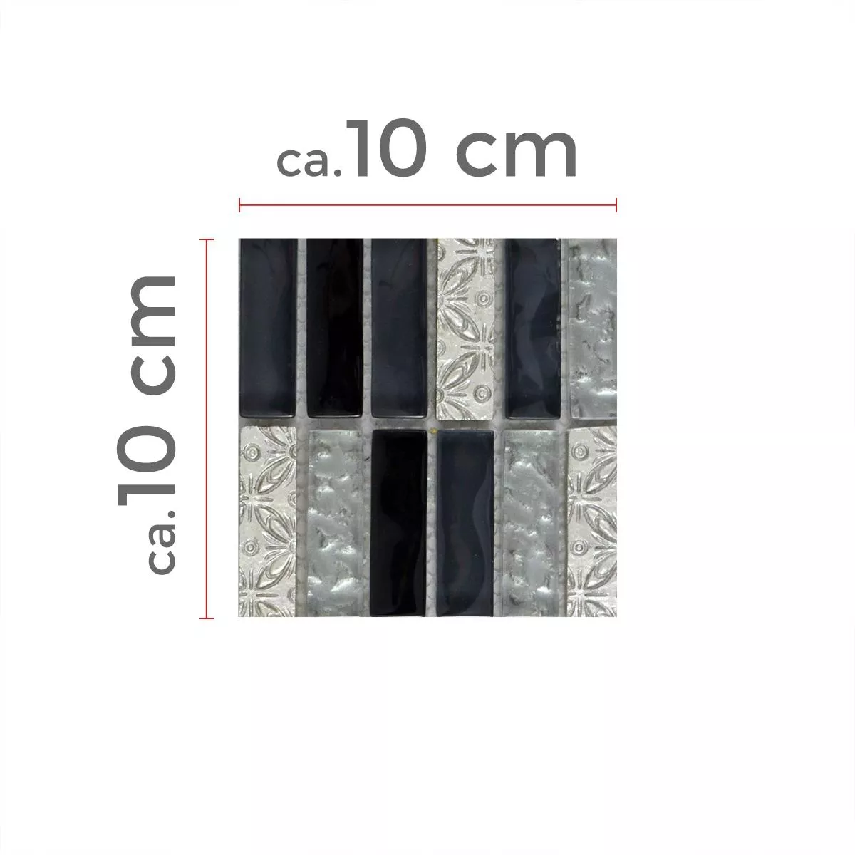 Prøve Glasmosaik Natursten Fliser Conchita Sort Sølv