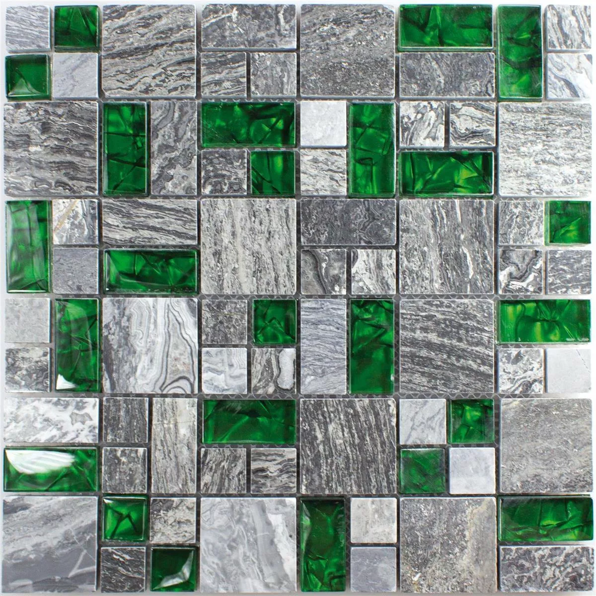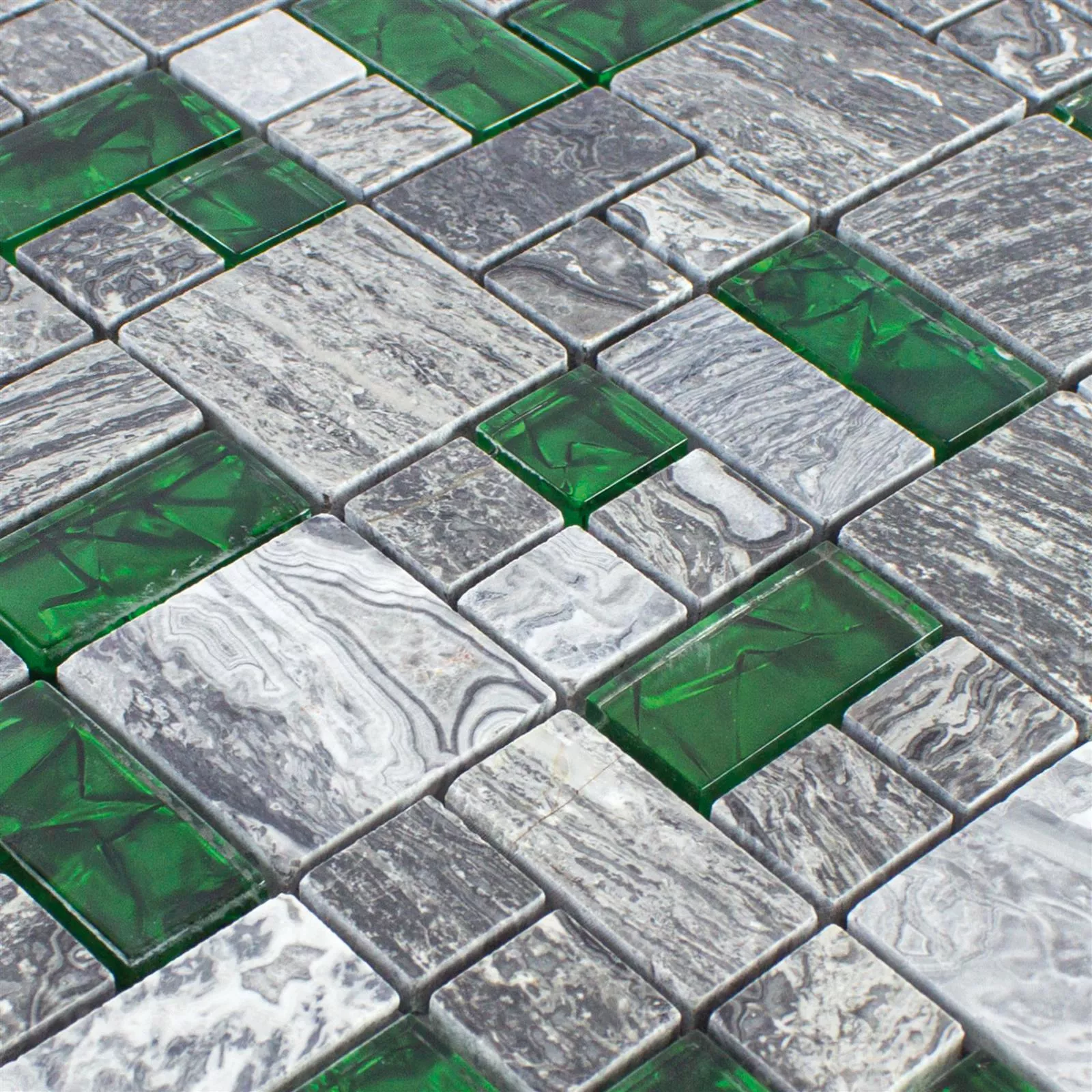 Prøve Glasmosaik Natursten Fliser Manavgat Gra Grøn ix
