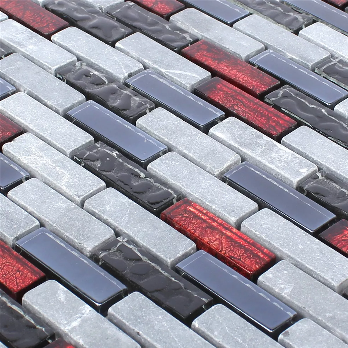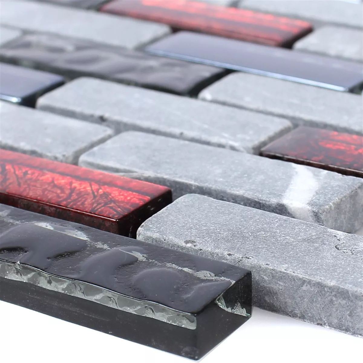 Prøve Glasmosaik Natursten Fliser Marley Sort Rød Gra