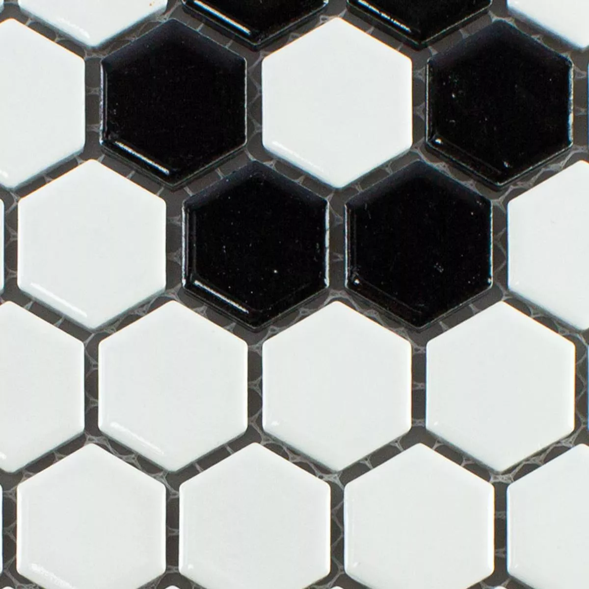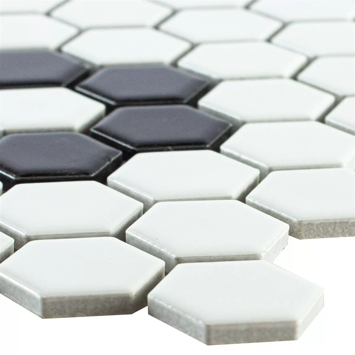 Prøve Keramik Mosaik Fliser Carlsbad Blomster Sort Hvid