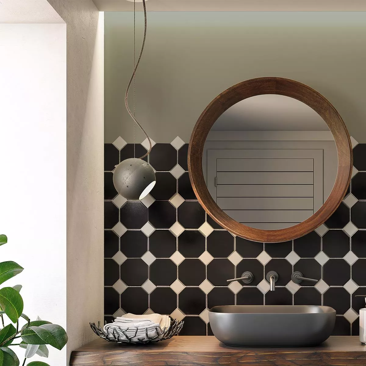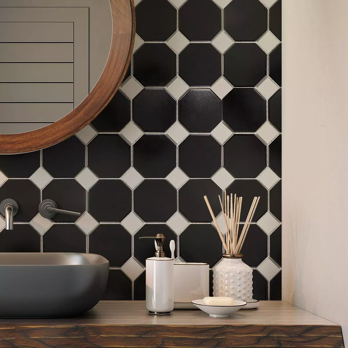 Prøve Keramik Mosaik Fliser Octagon Fürstenberg Sort Hvid