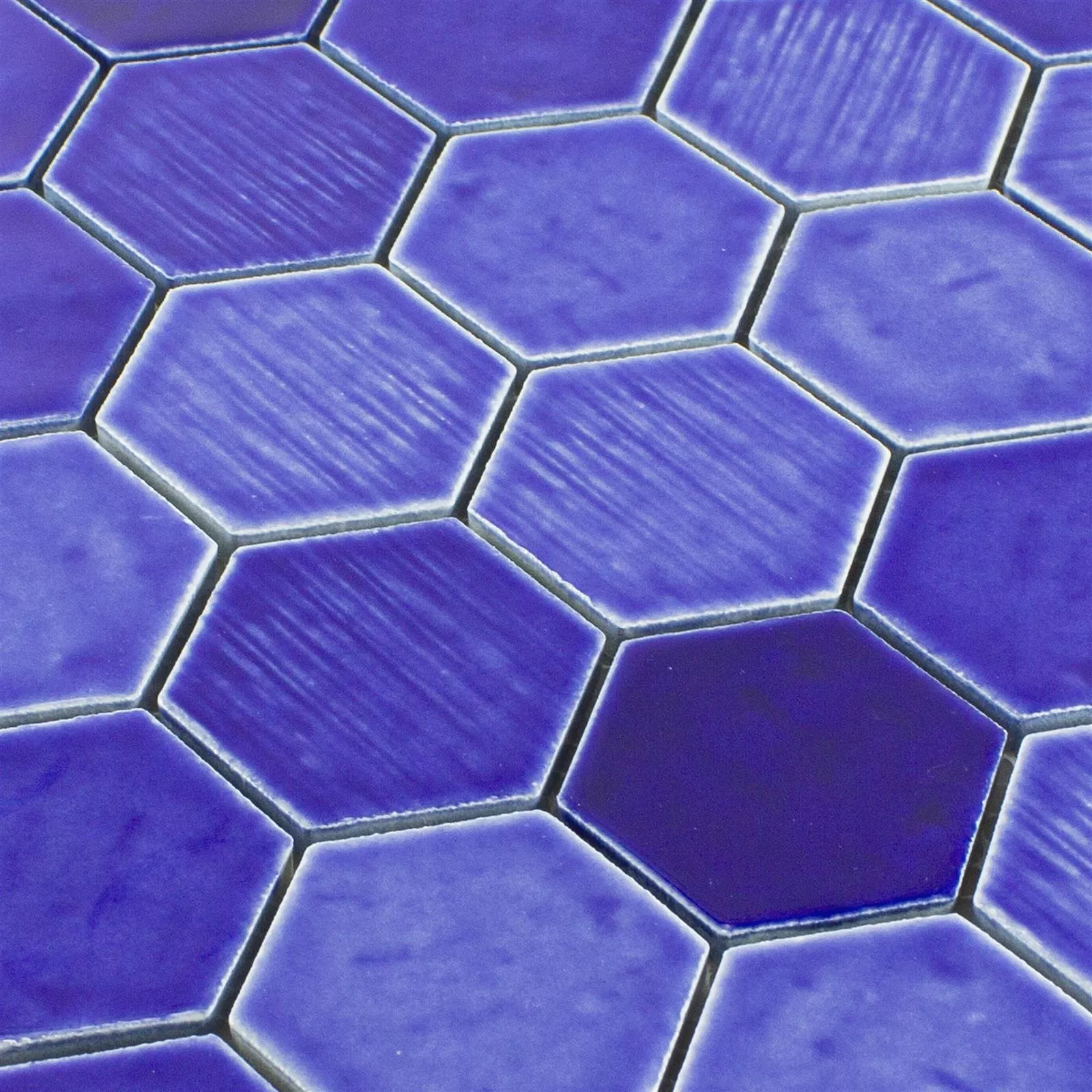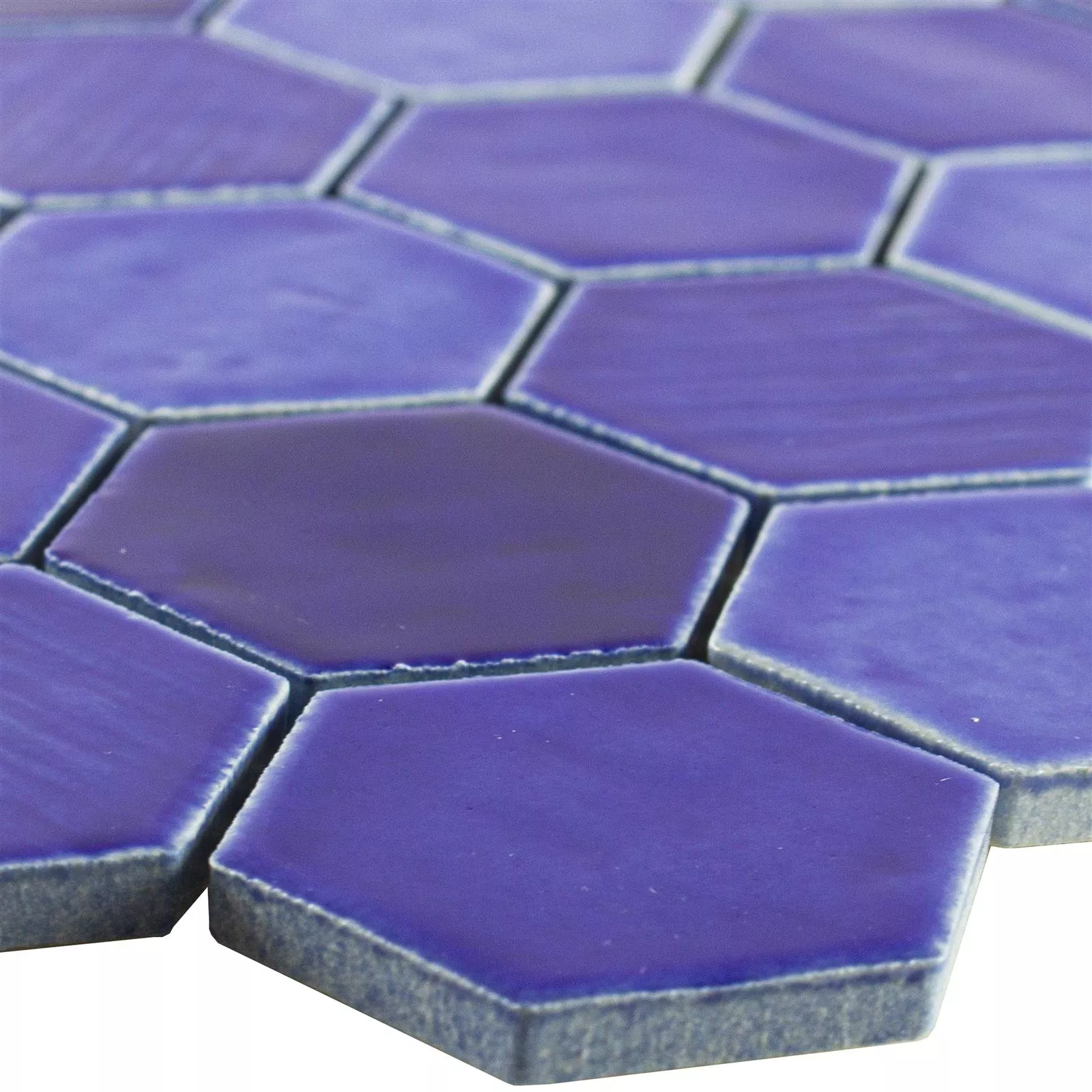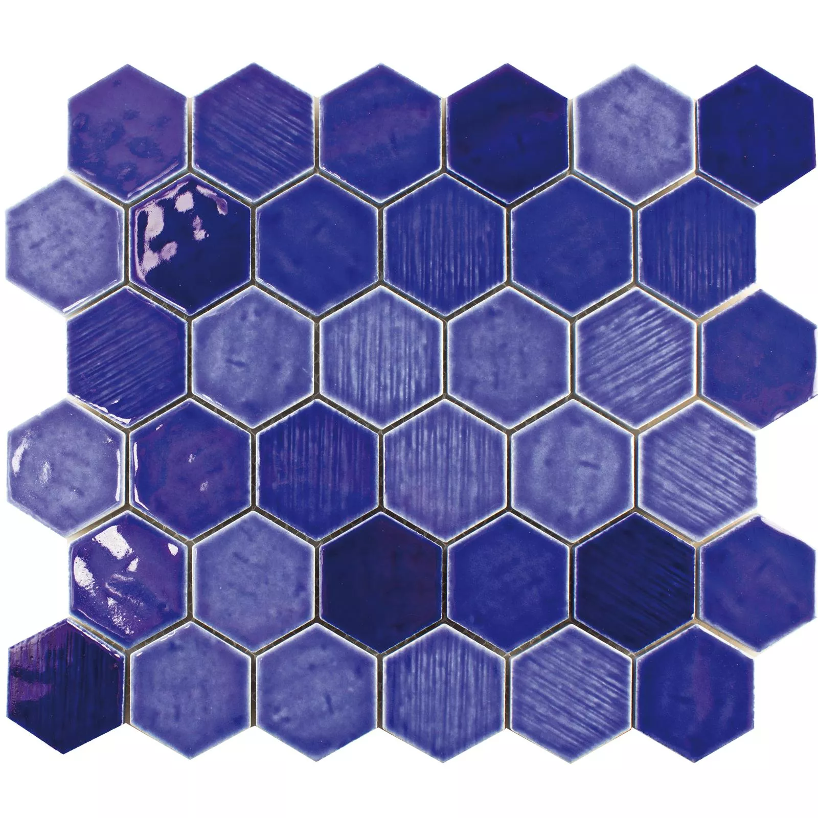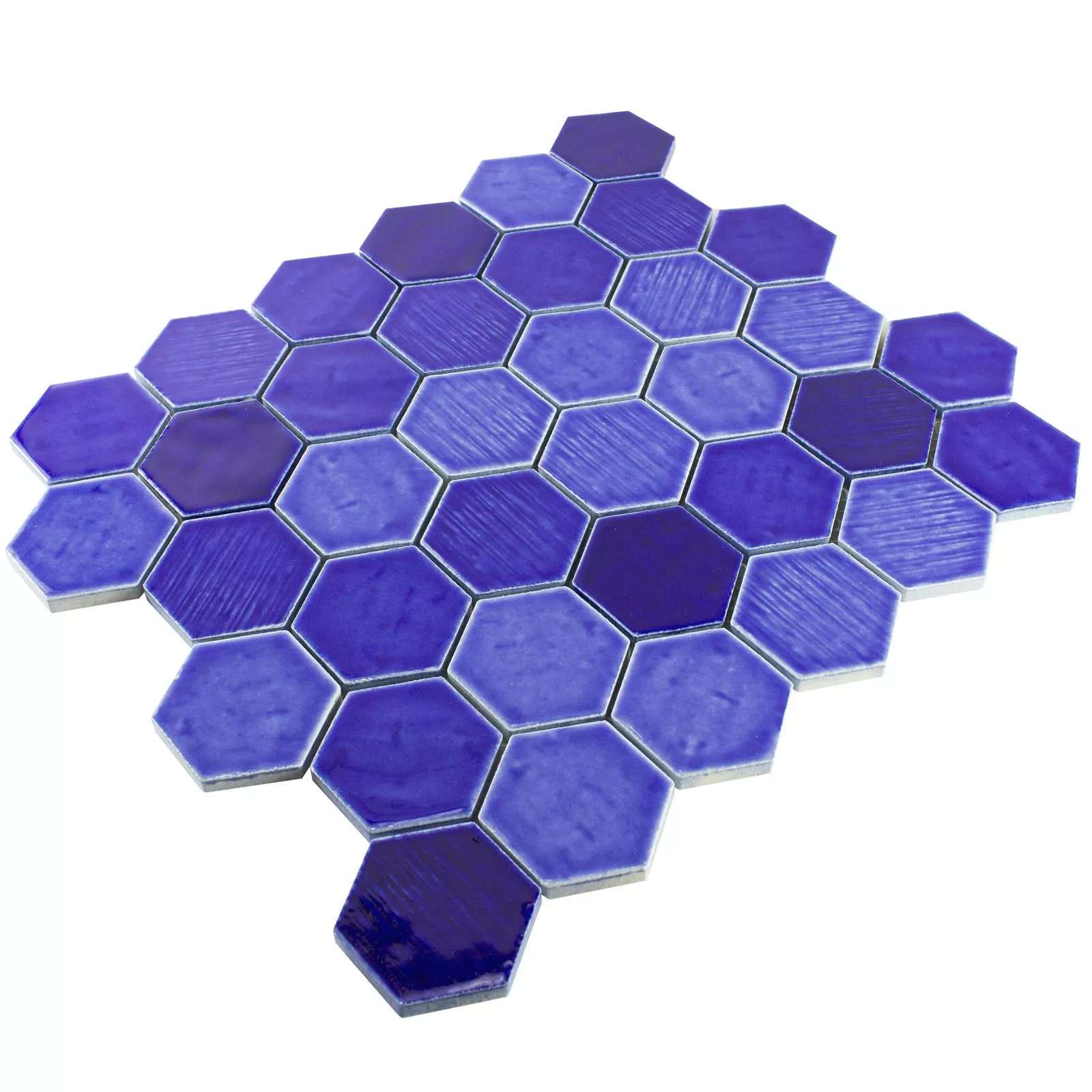 Prøve Keramik Mosaik Fliser Roseburg Hexagon Strålende Blå