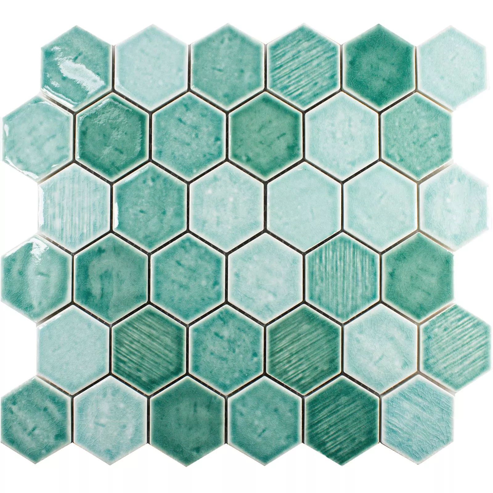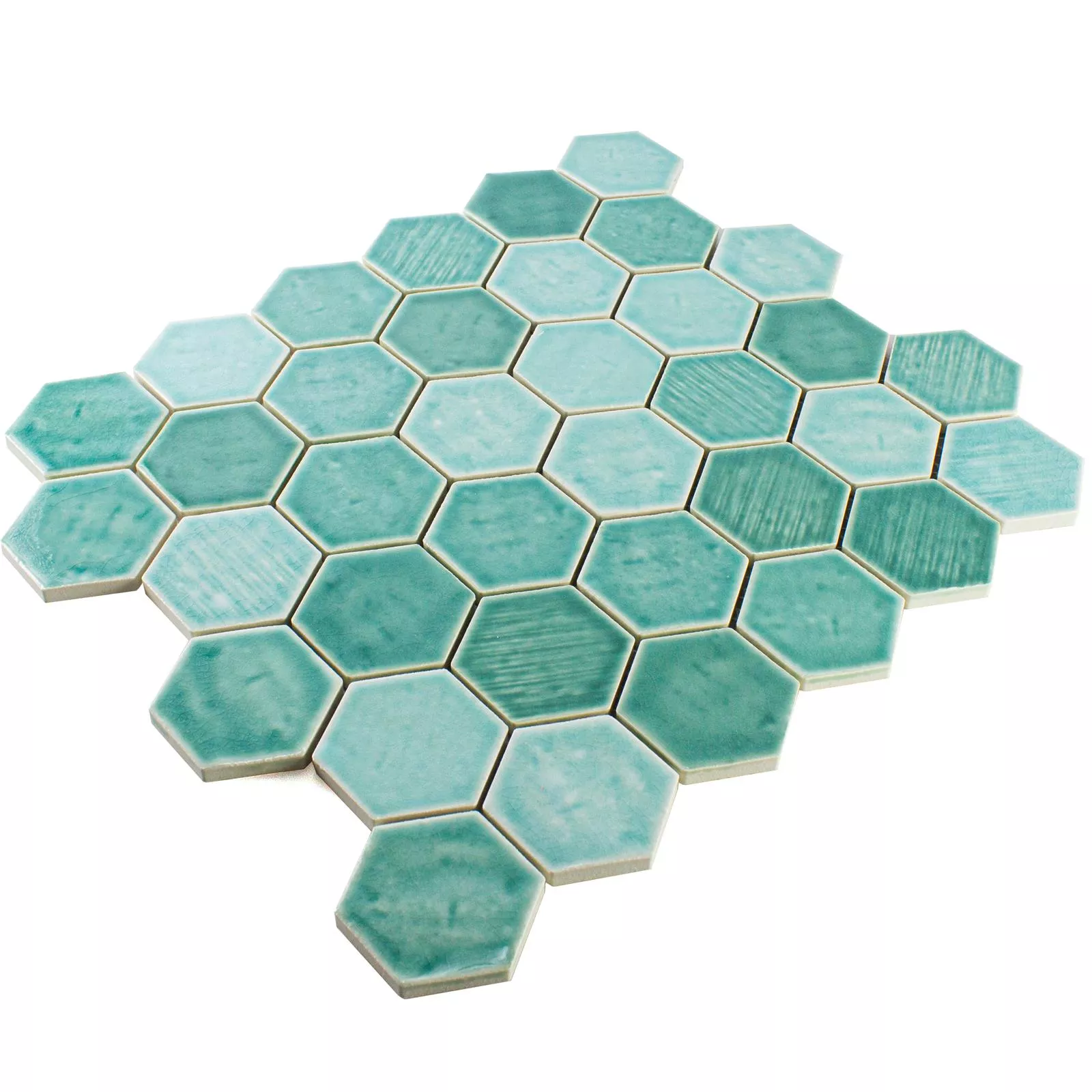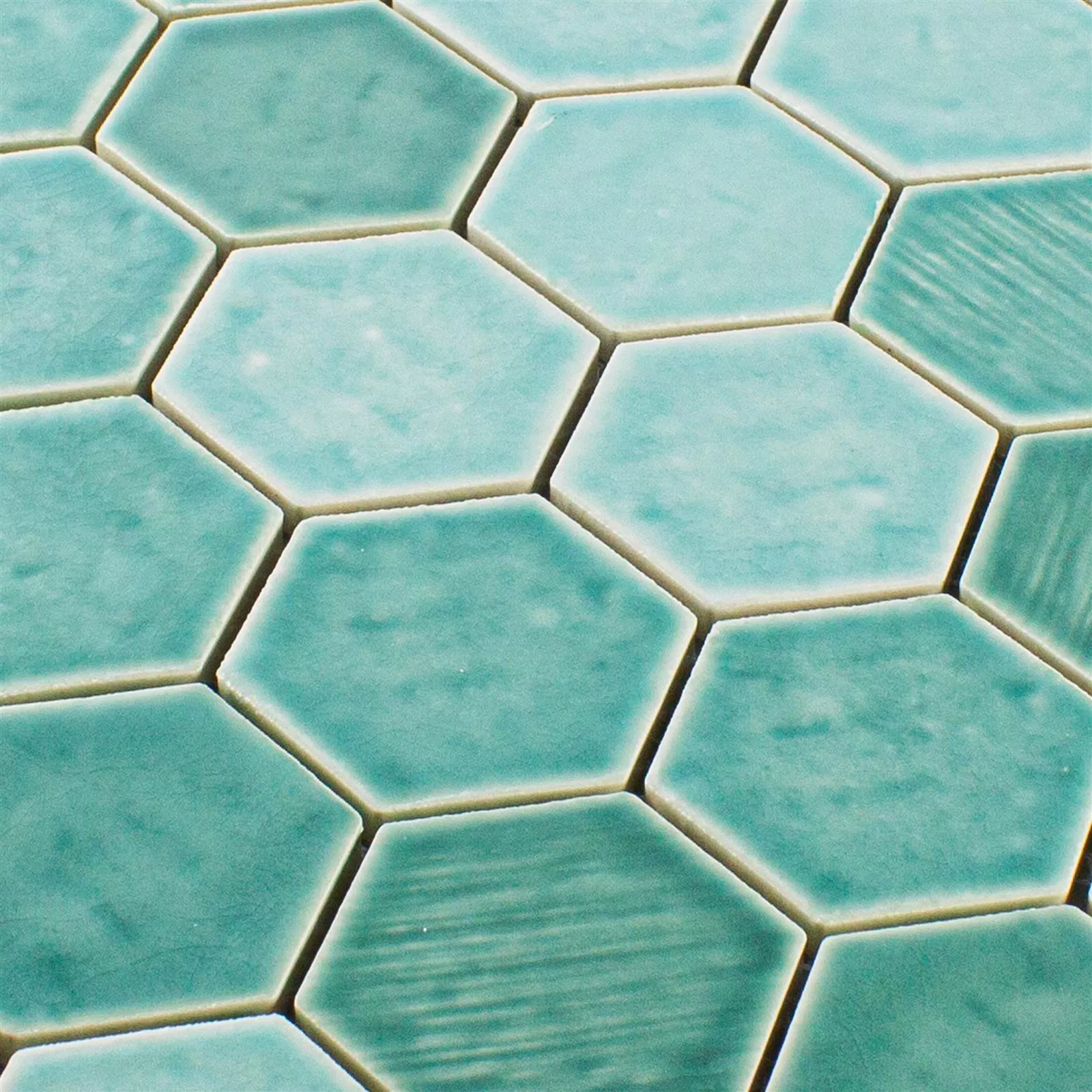 Prøve Keramik Mosaik Fliser Roseburg Hexagon Strålende Turkis