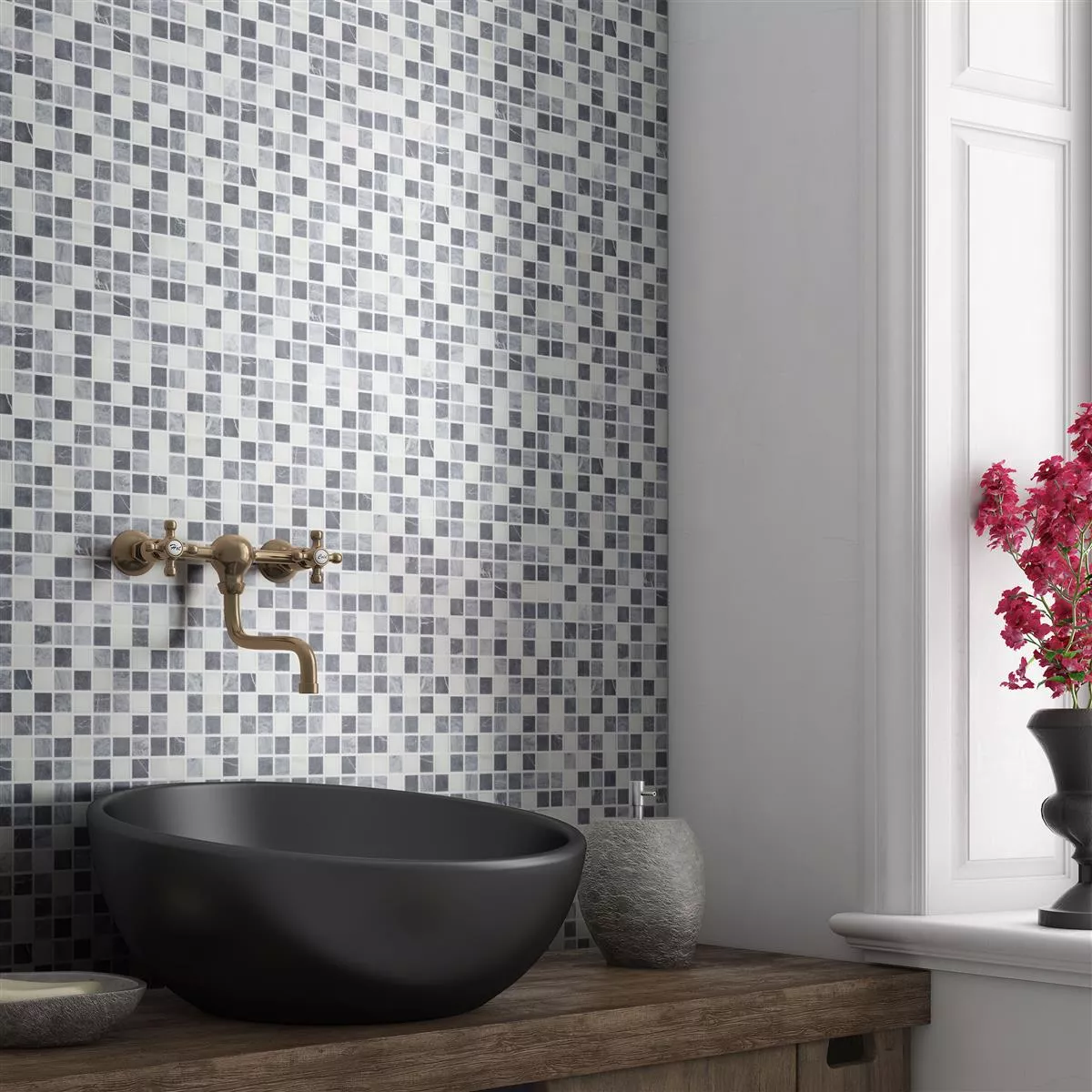 Prøve Marmor Natursten Mosaik Fliser Stanford Gra Hvid