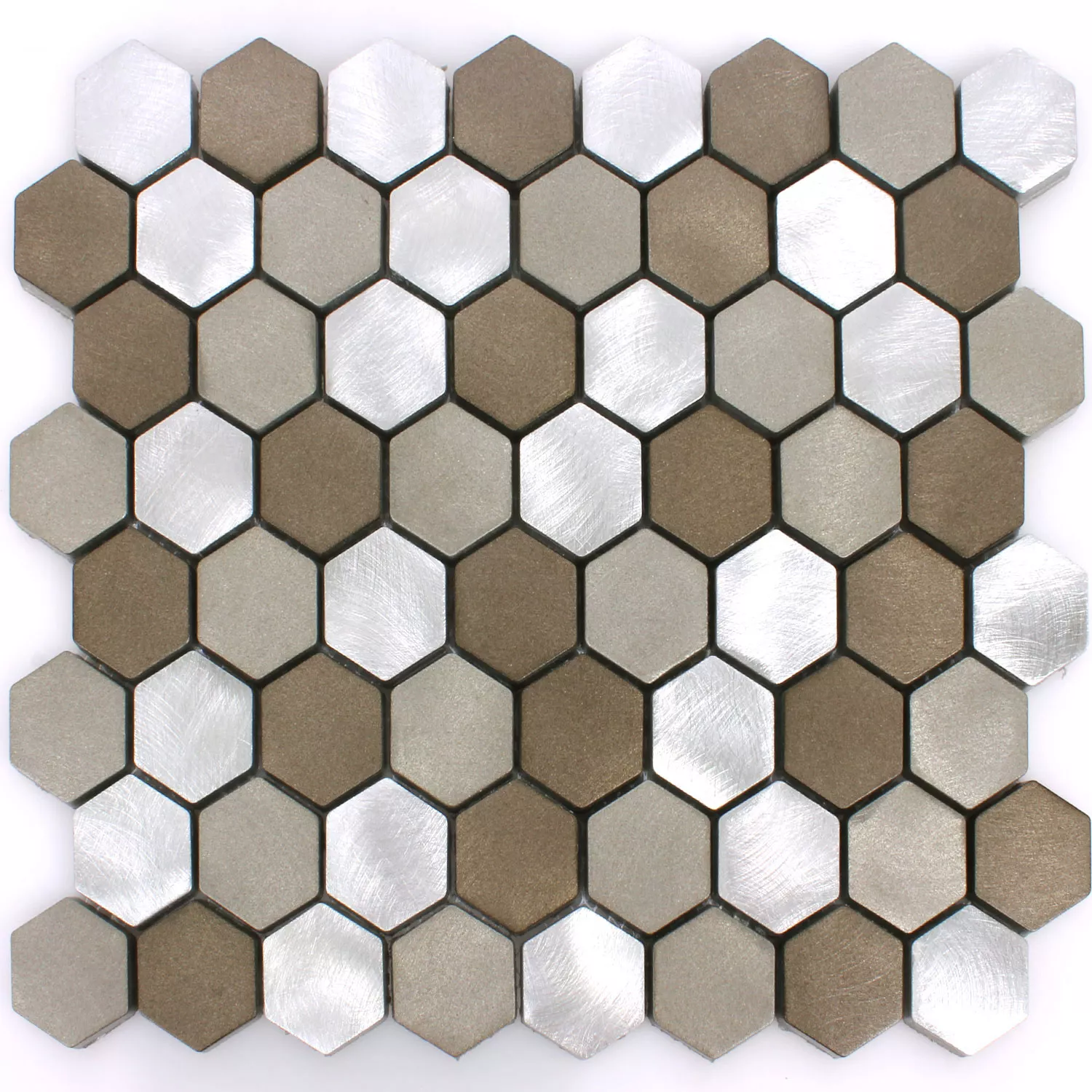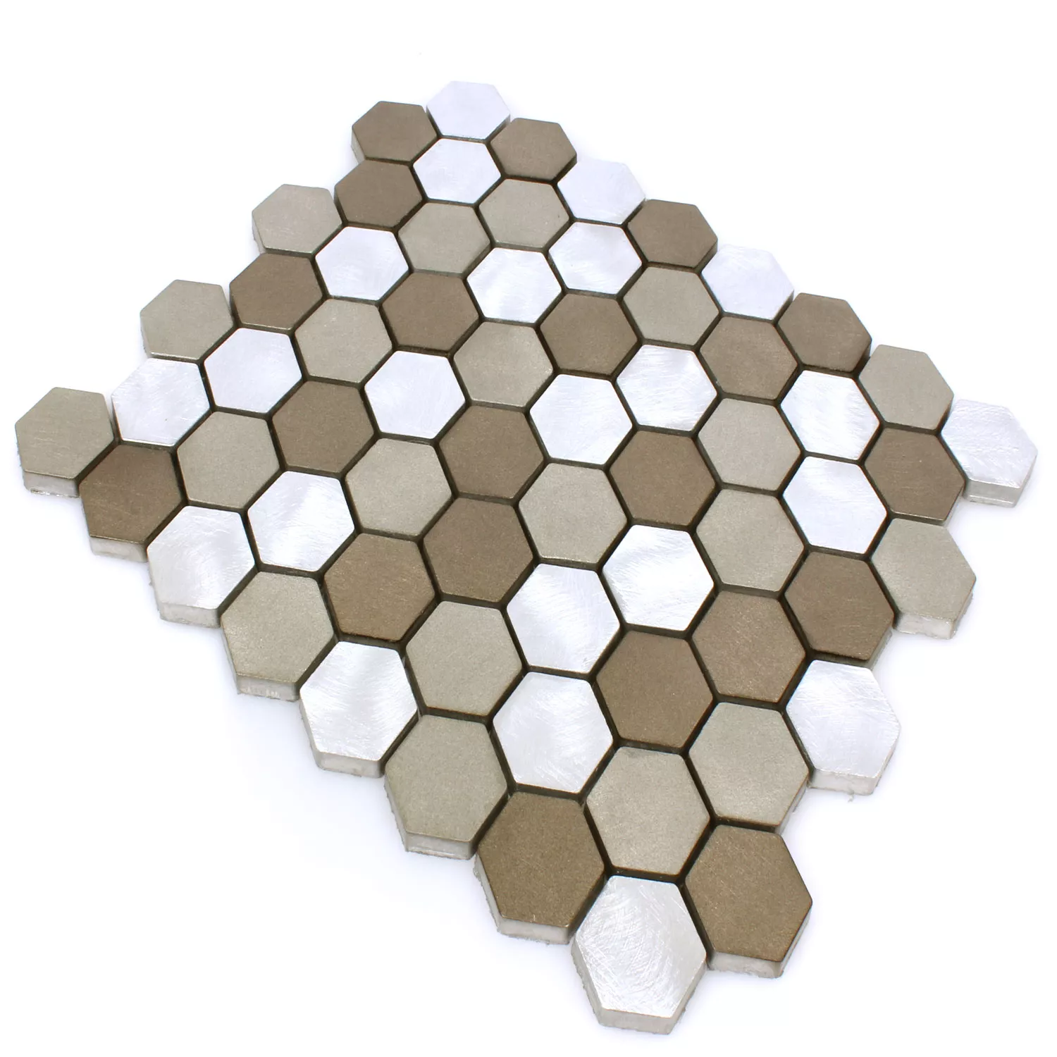 Prøve Mosaik Fliser Aluminium Apache Hexagon Brun Sølv