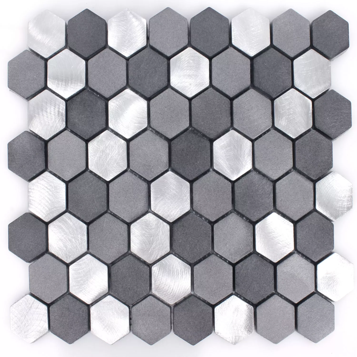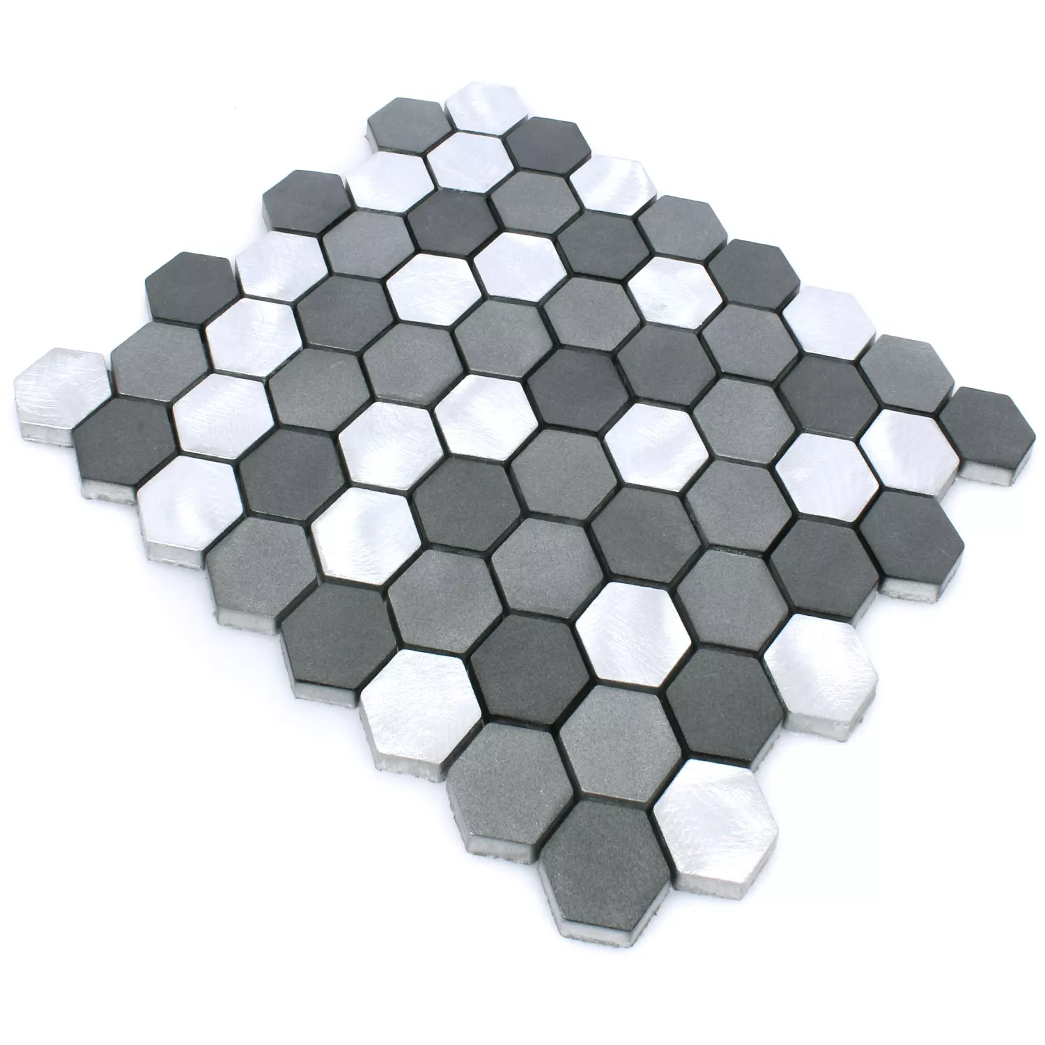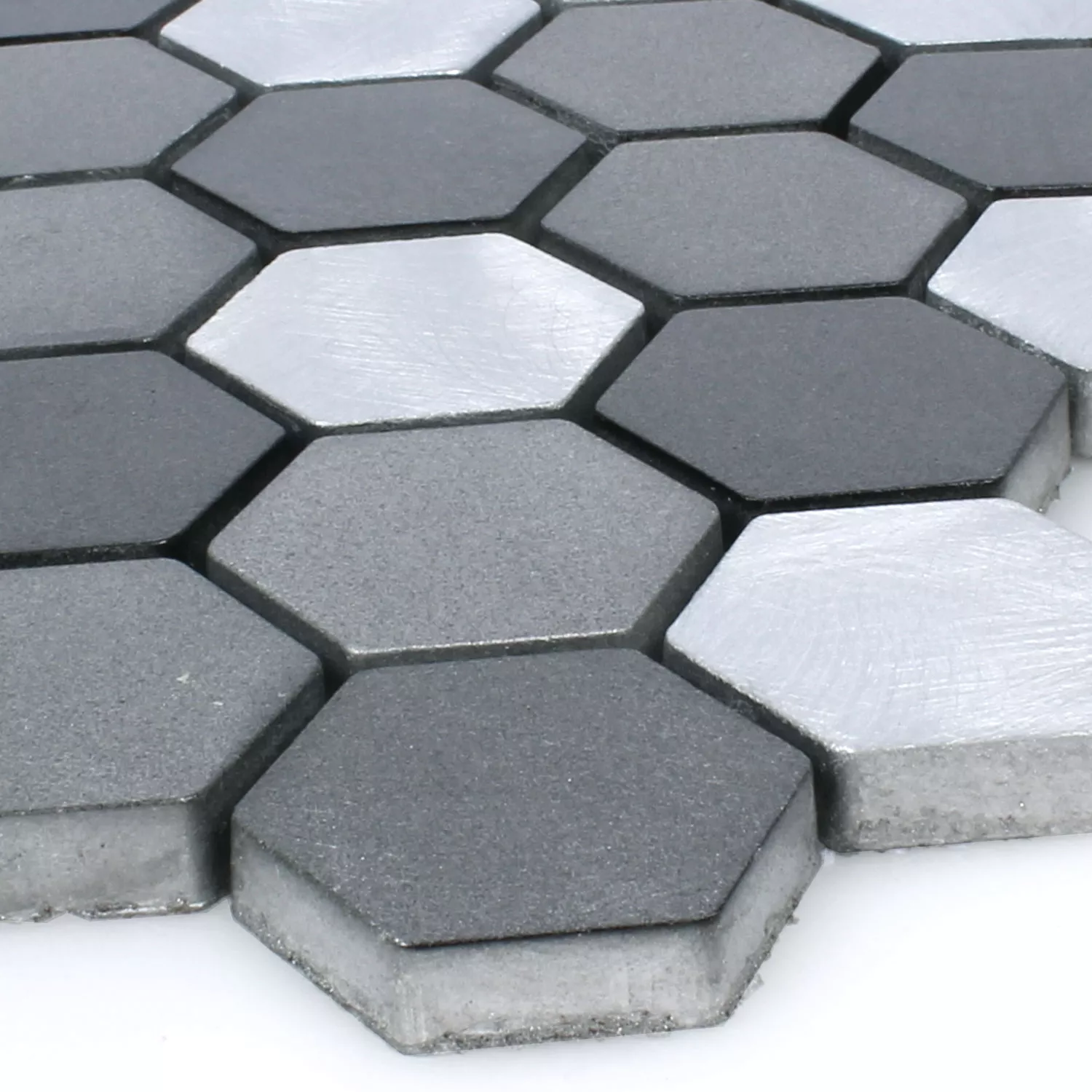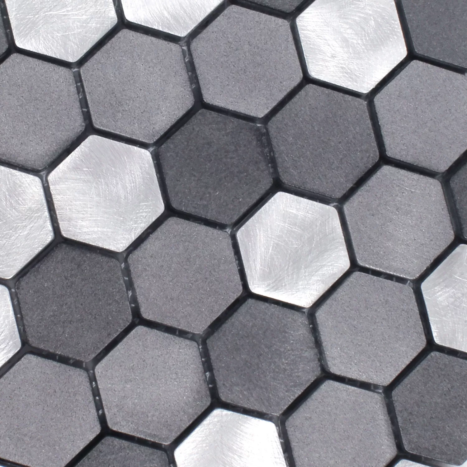 Prøve Mosaik Fliser Aluminium Apache Hexagon Sort Sølv