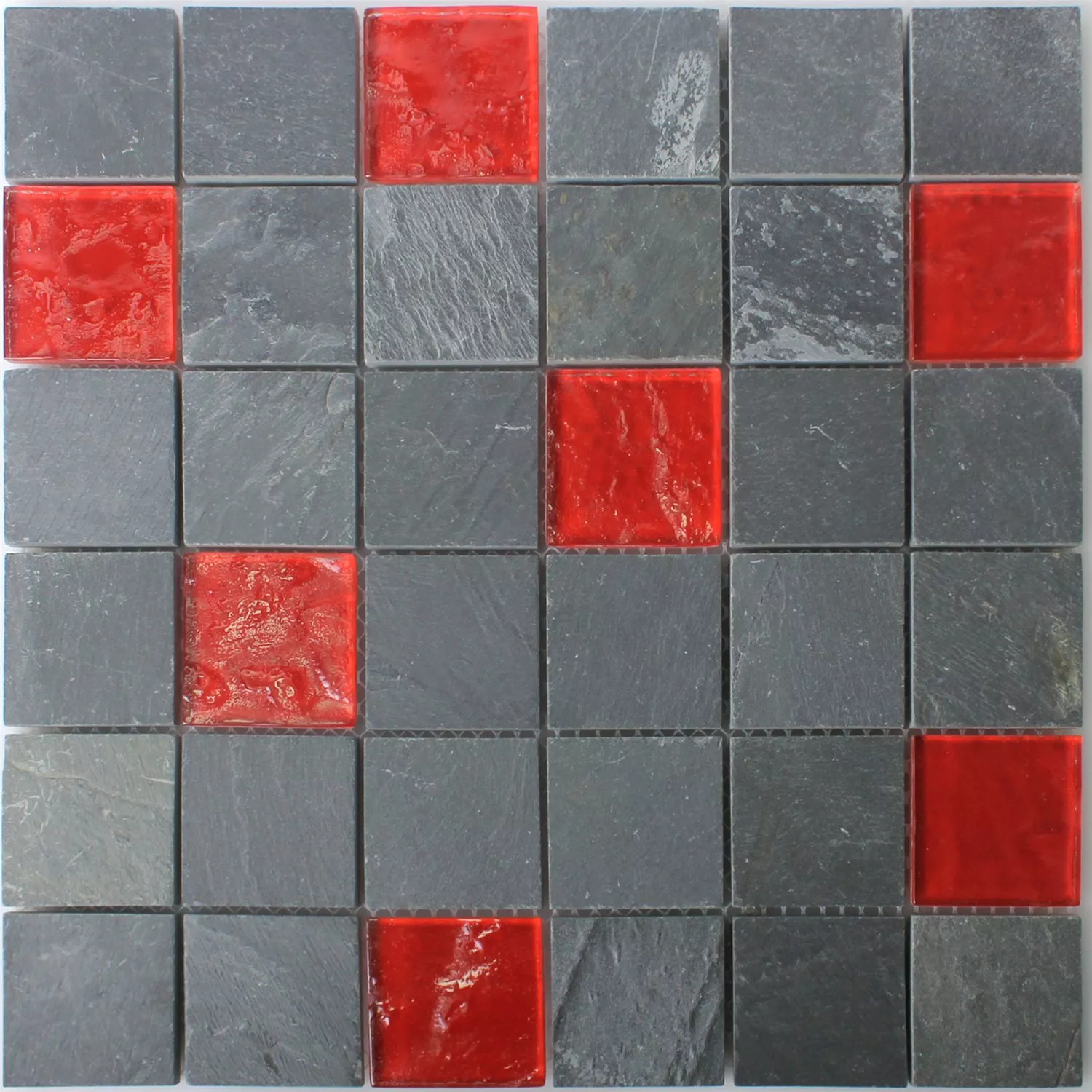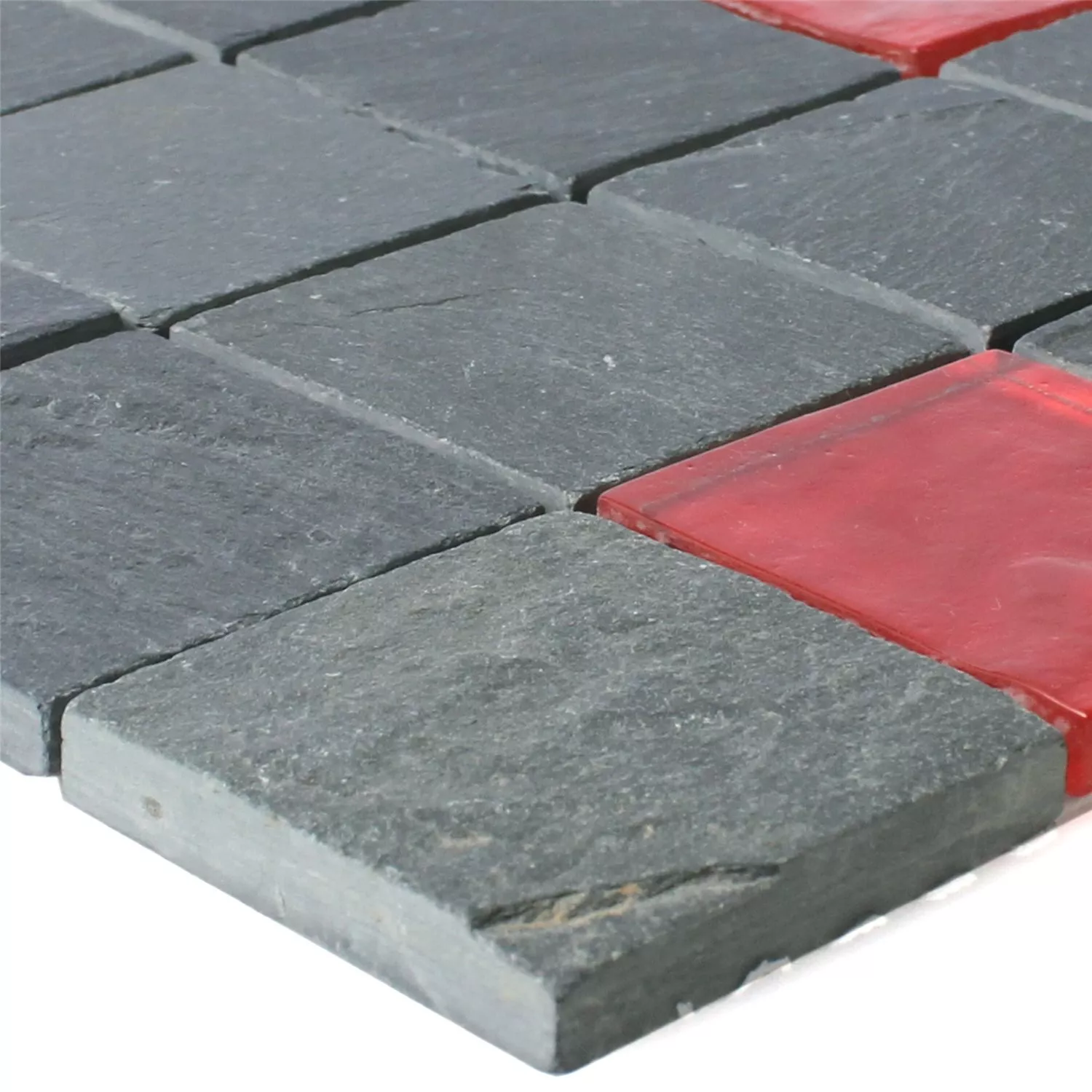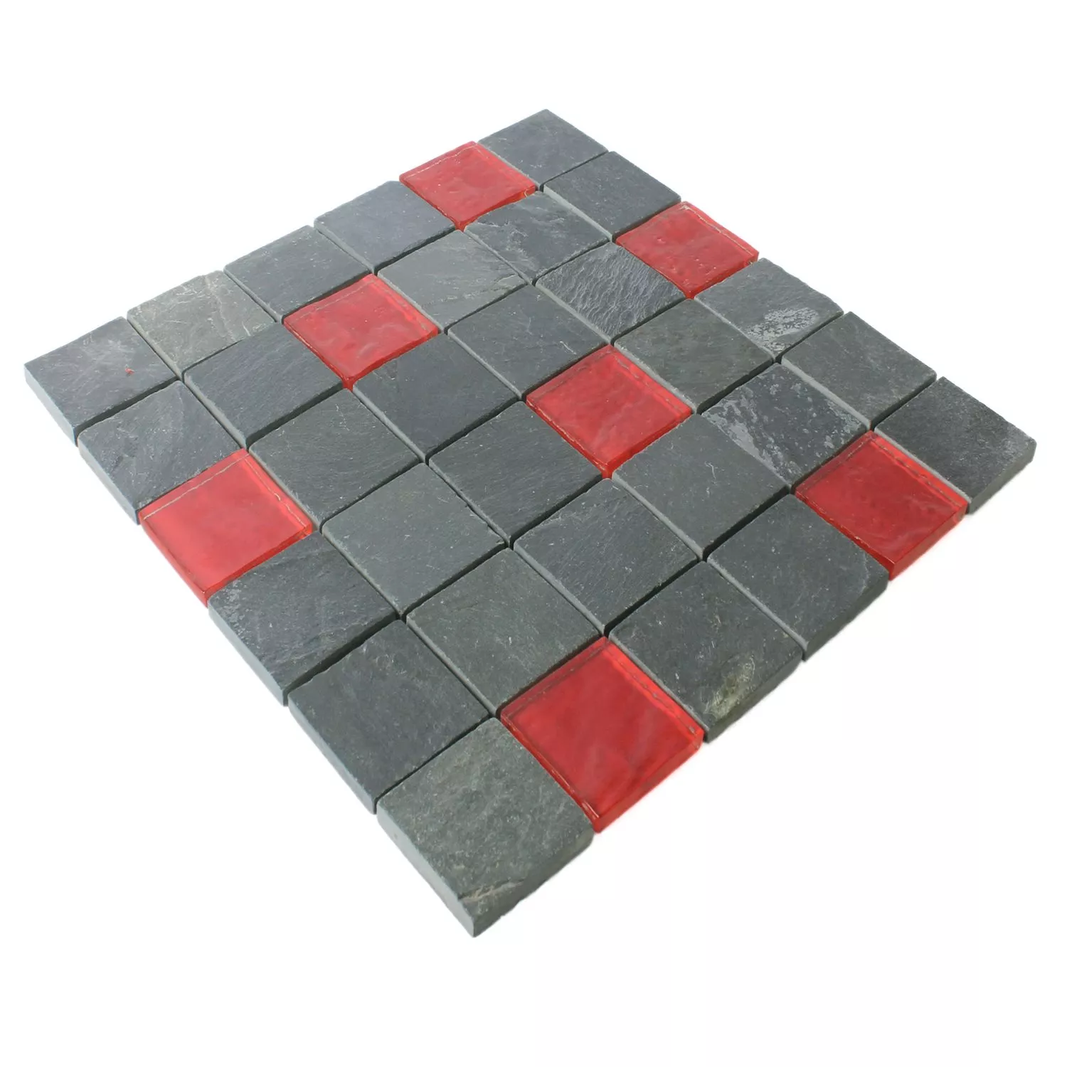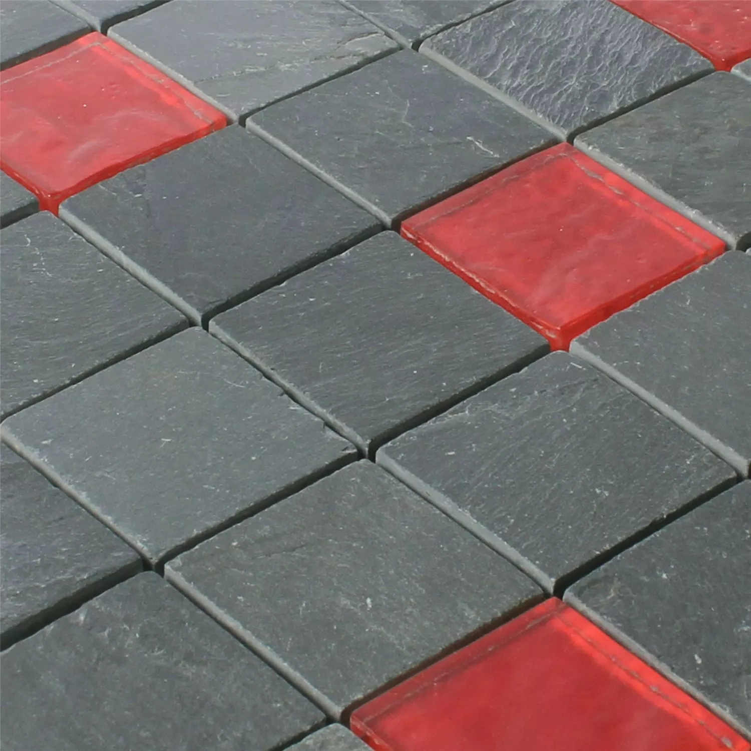 Prøve Mosaik Fliser Dragon Skifer Glas Mix Sort Rød
