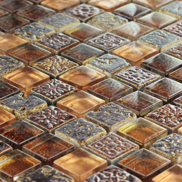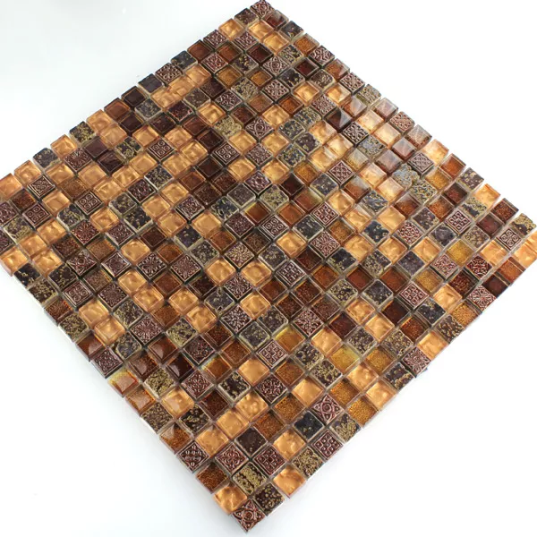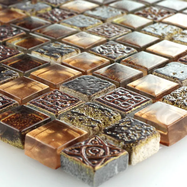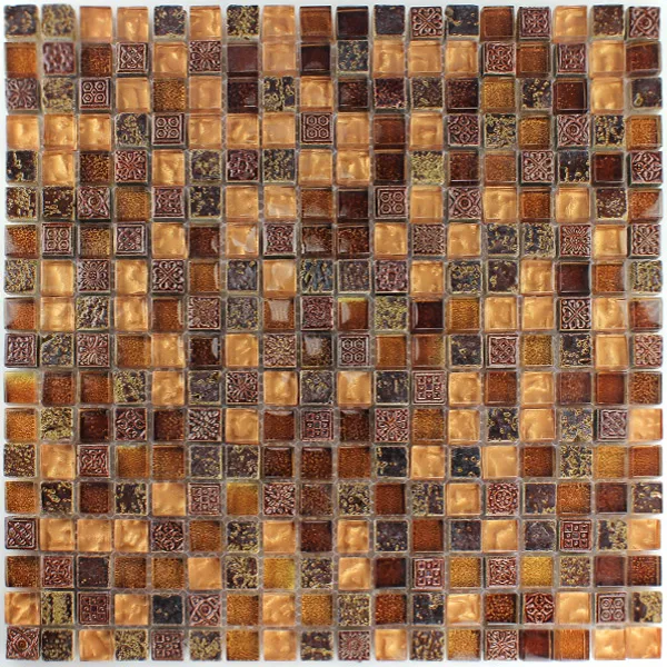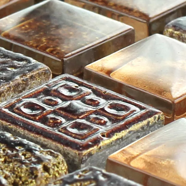 Prøve Mosaik Fliser Escimo Glas Natursten Mix Brun Guld