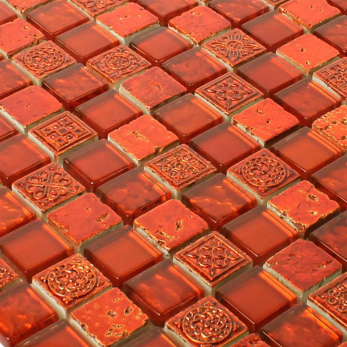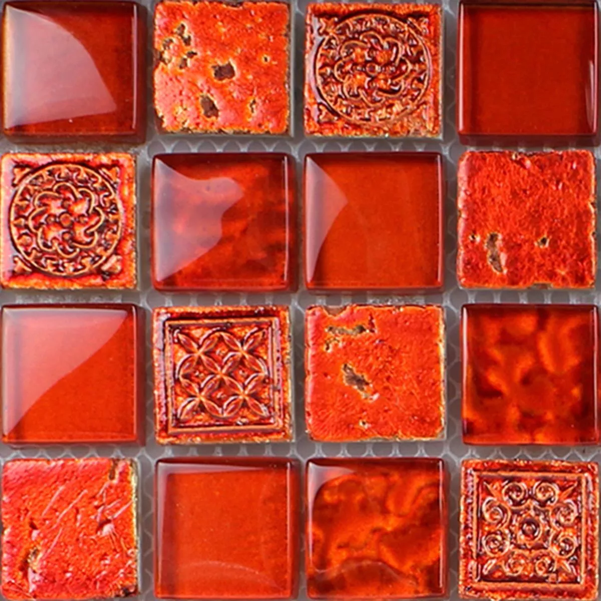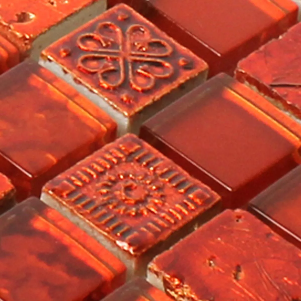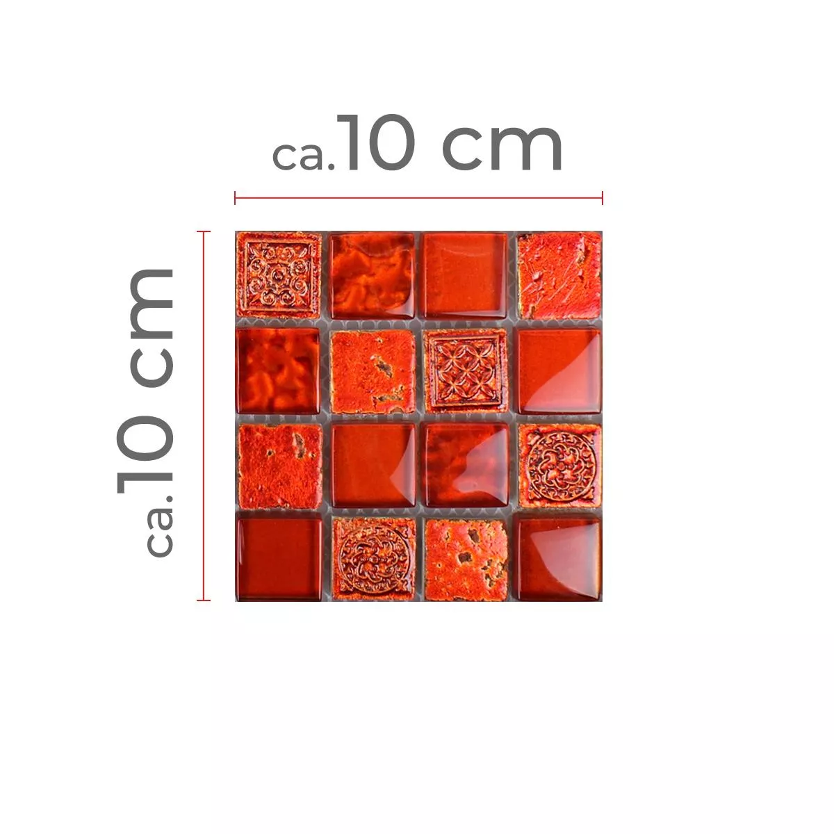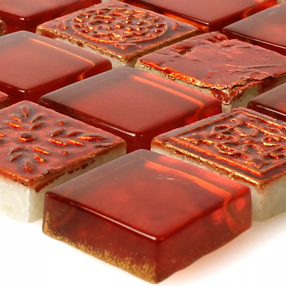 Prøve Mosaik Fliser Georgia Glas Natursten Mix Rød