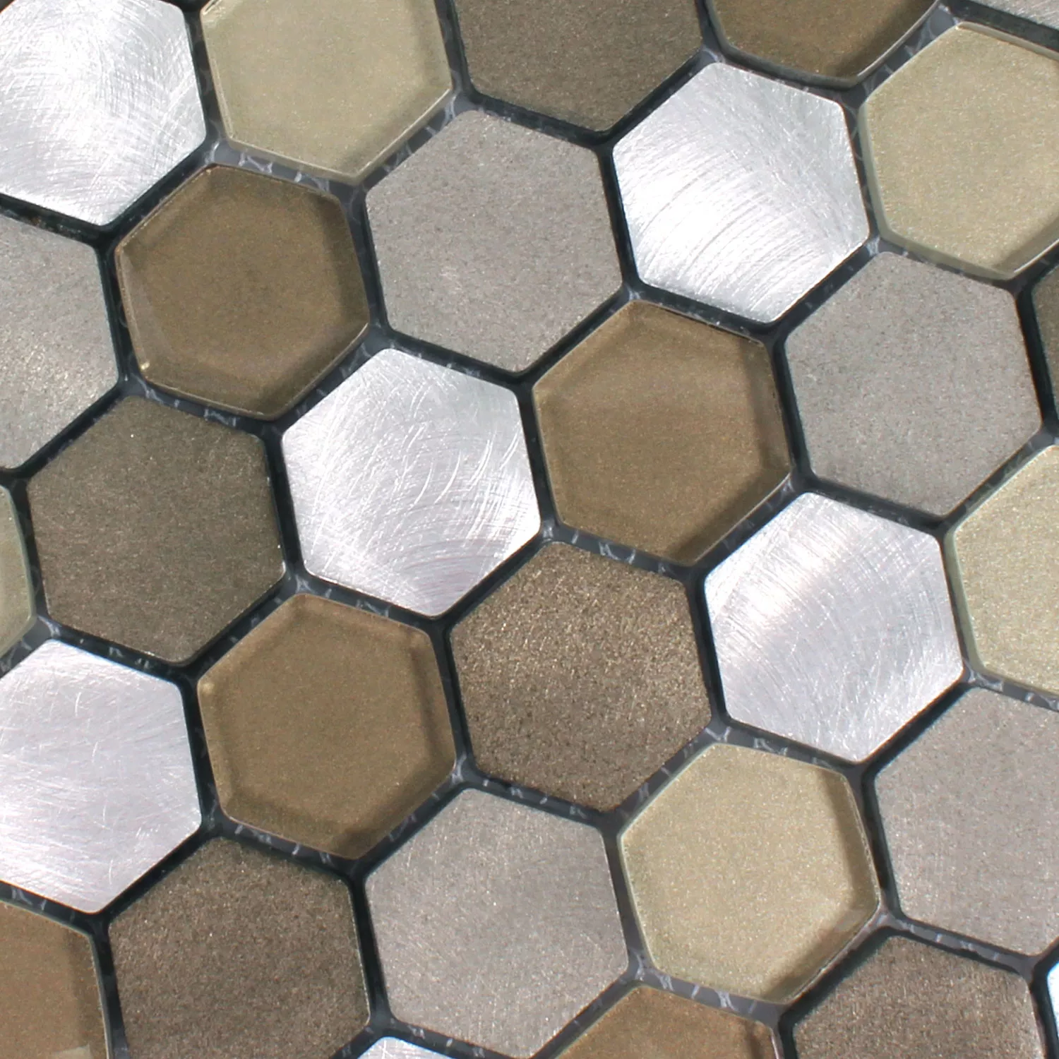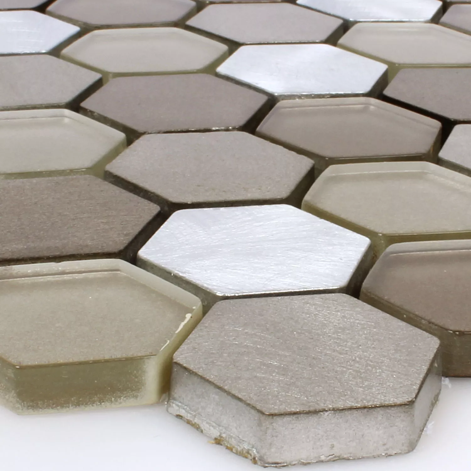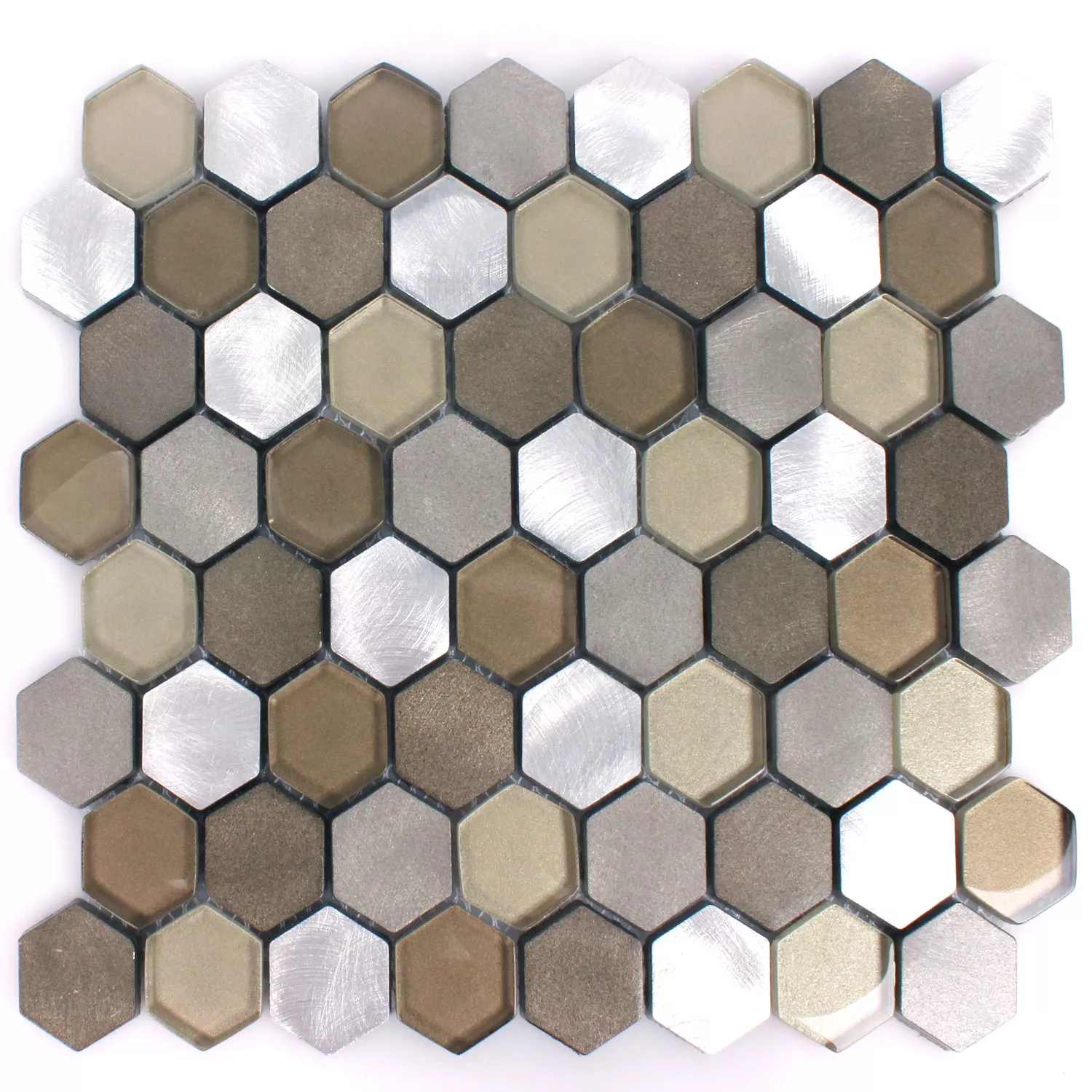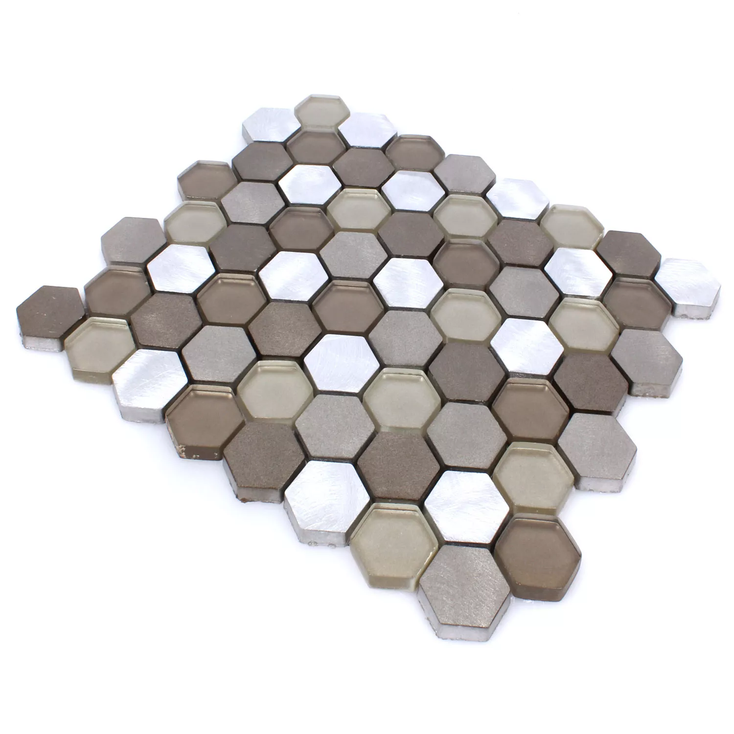 Prøve Mosaik Fliser Glas Alu Angela Hexagon Brun Sølv
