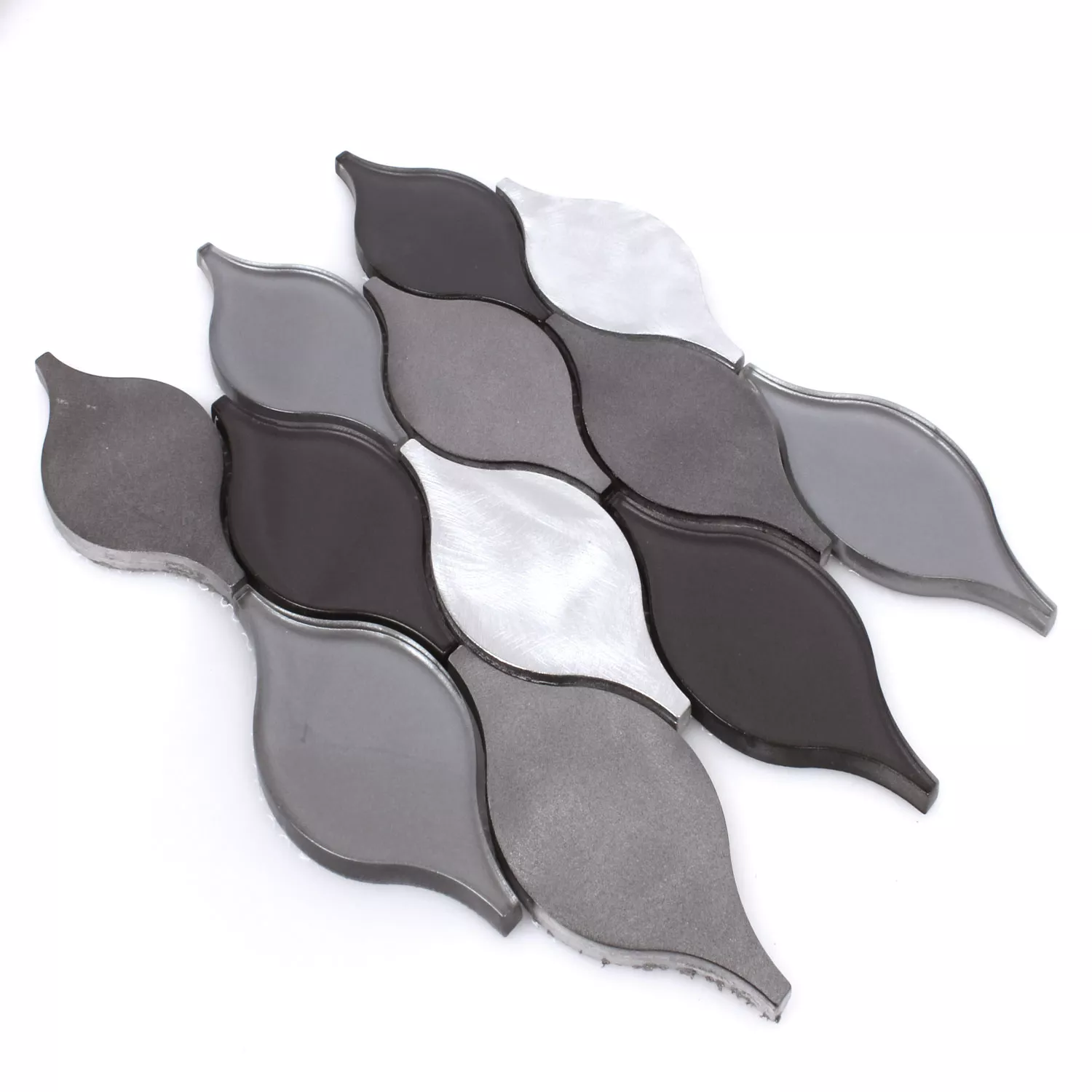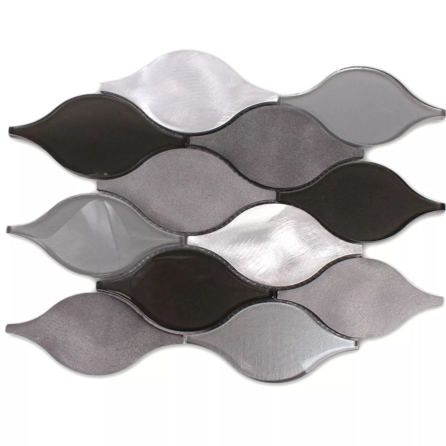 Prøve Mosaik Fliser Glas Aluminium Eliza Sort Sølv