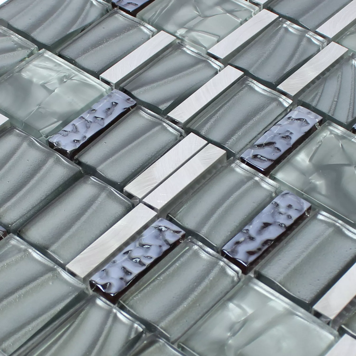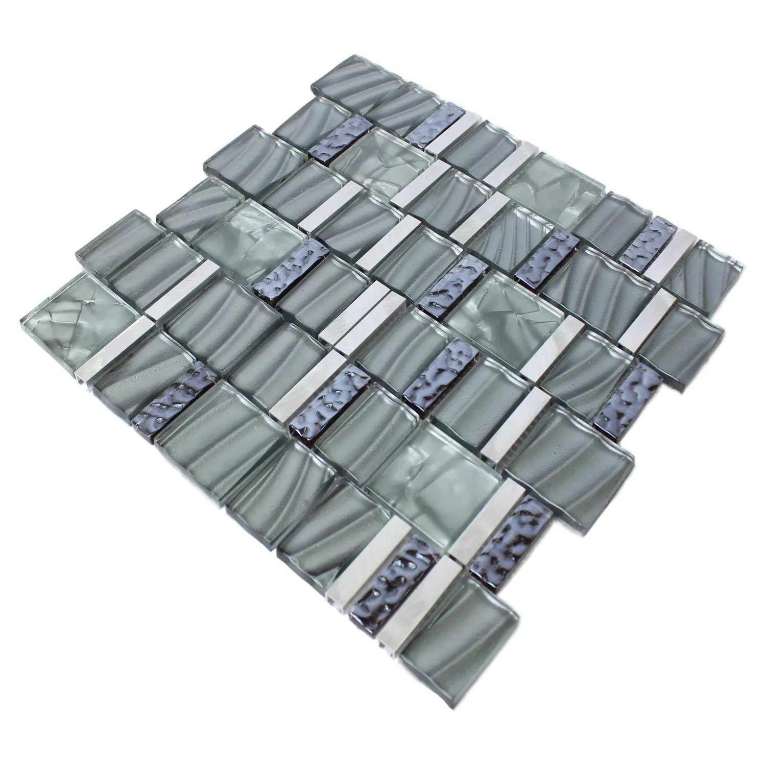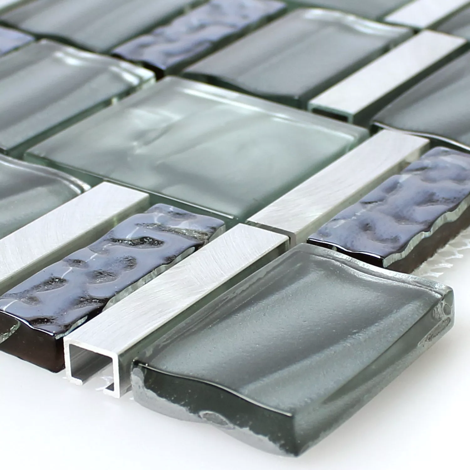 Prøve Mosaik Fliser Glas Aluminium Gra Sølv Mix