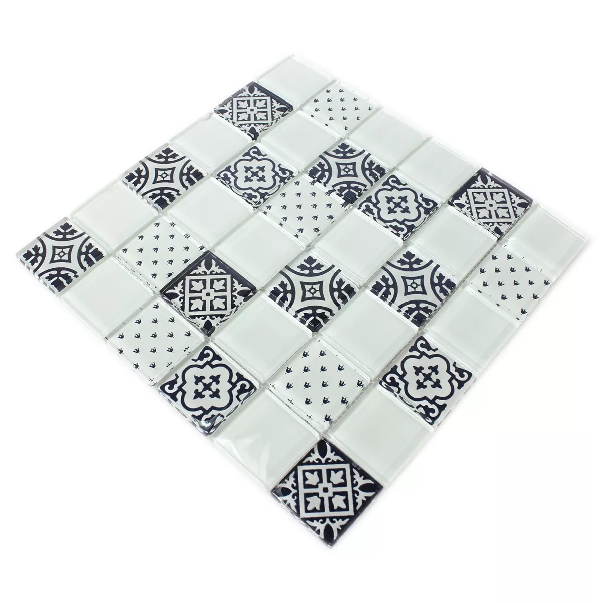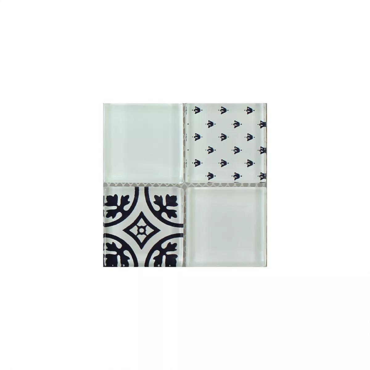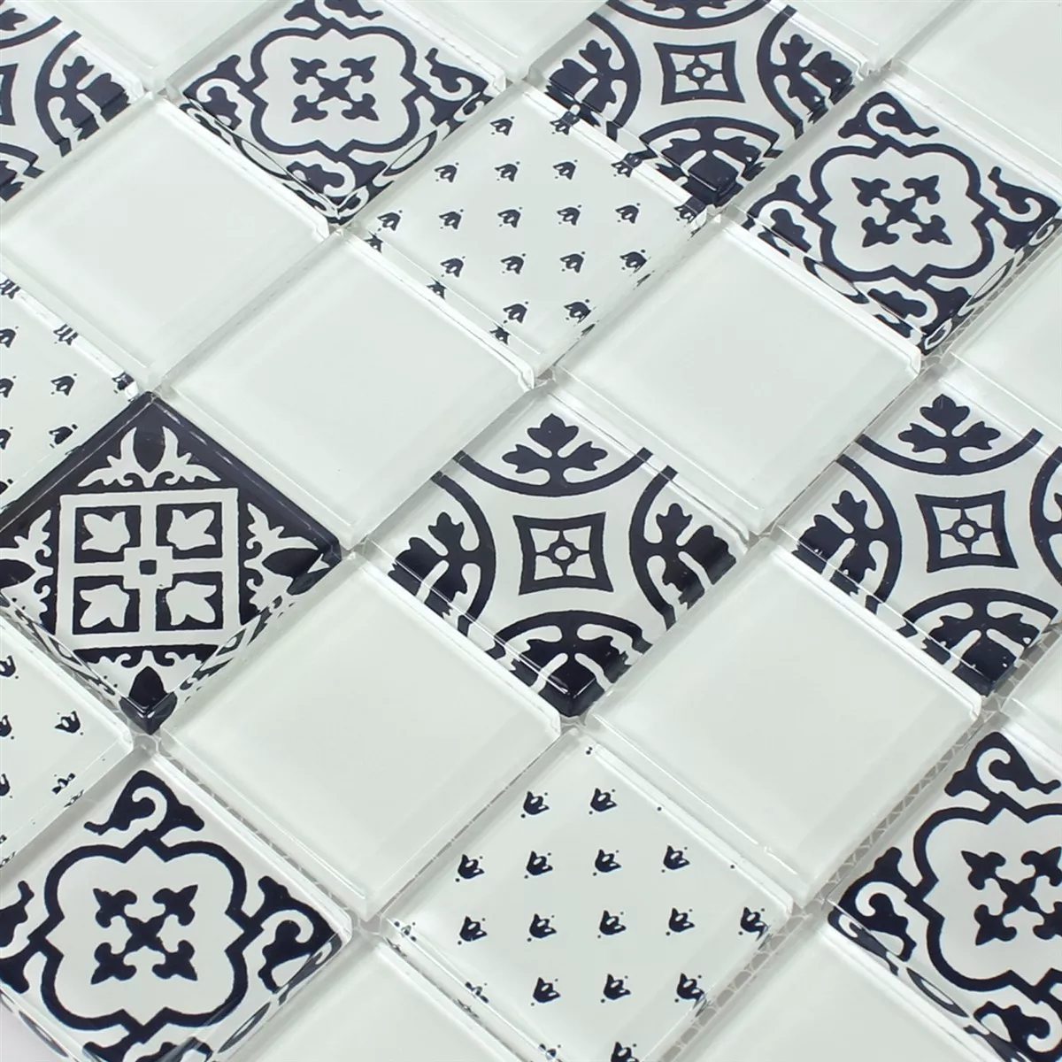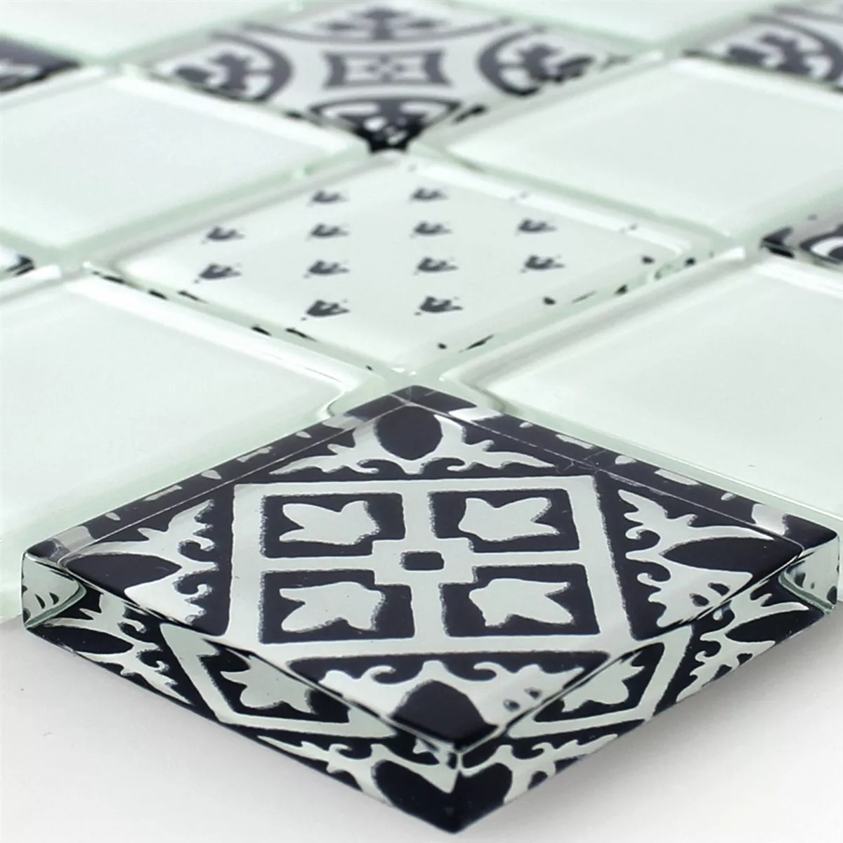 Prøve Mosaik Fliser Glas Barock Ornament Hvid