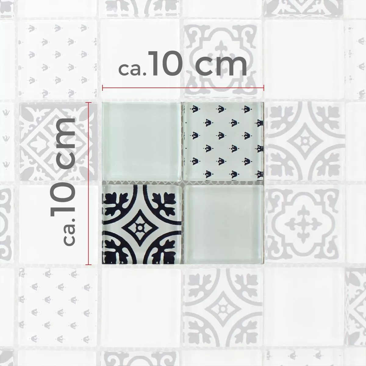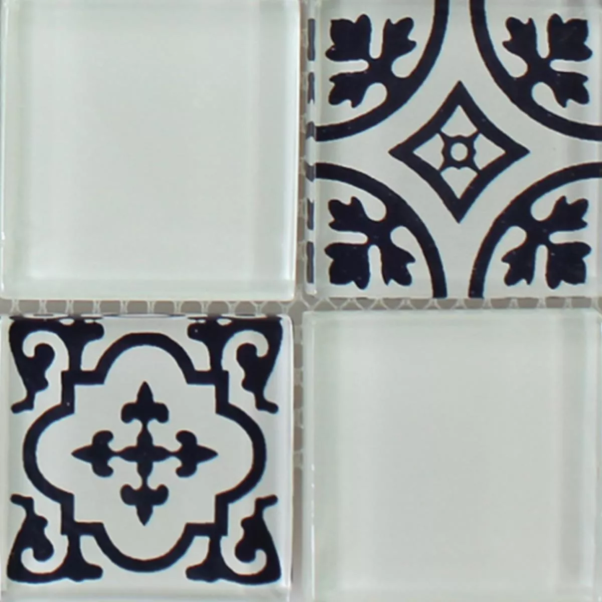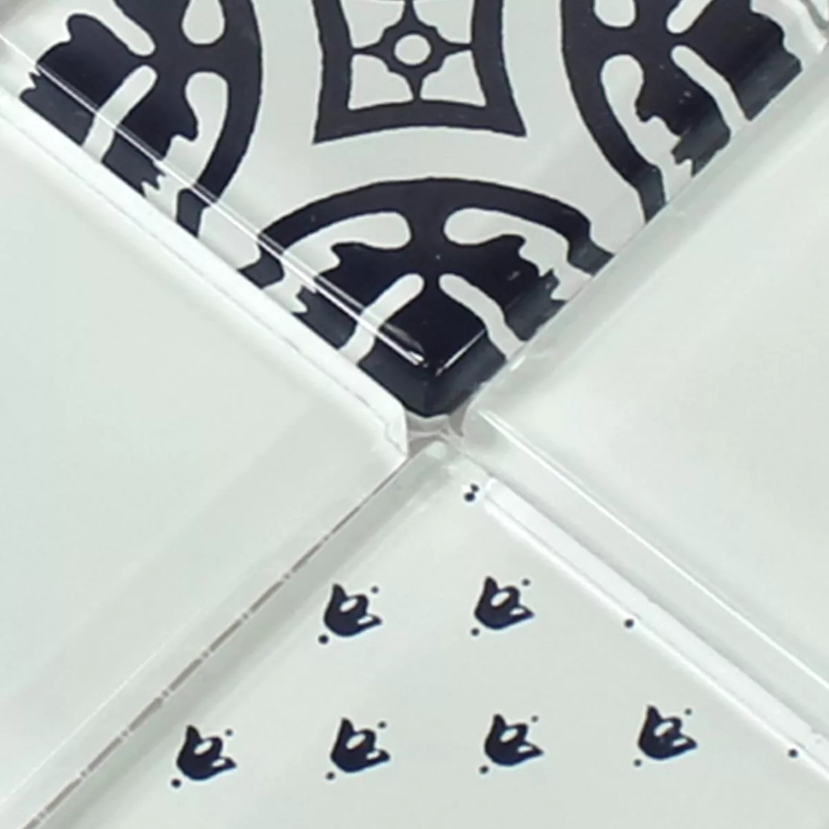 Prøve Mosaik Fliser Glas Barock Ornament Hvid
