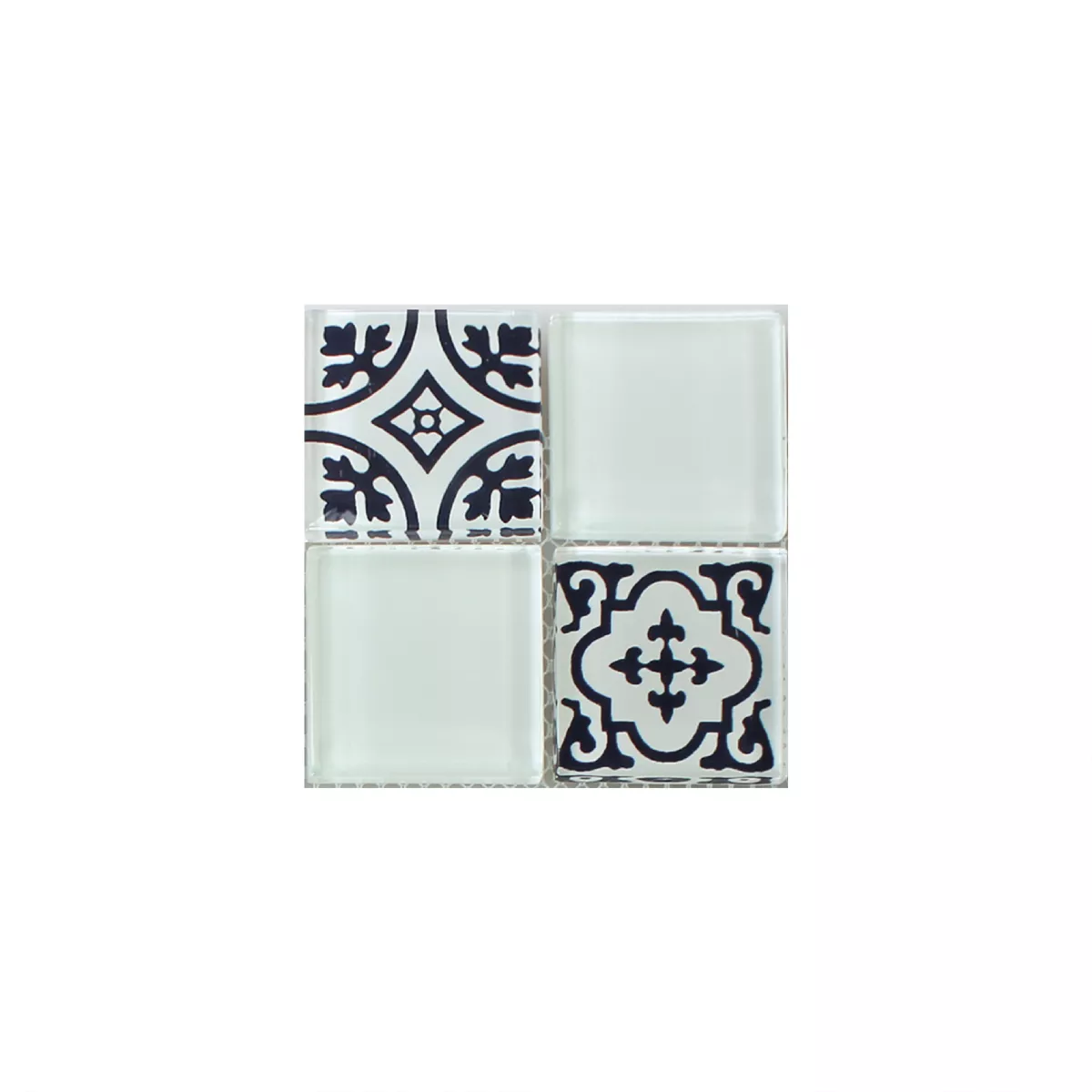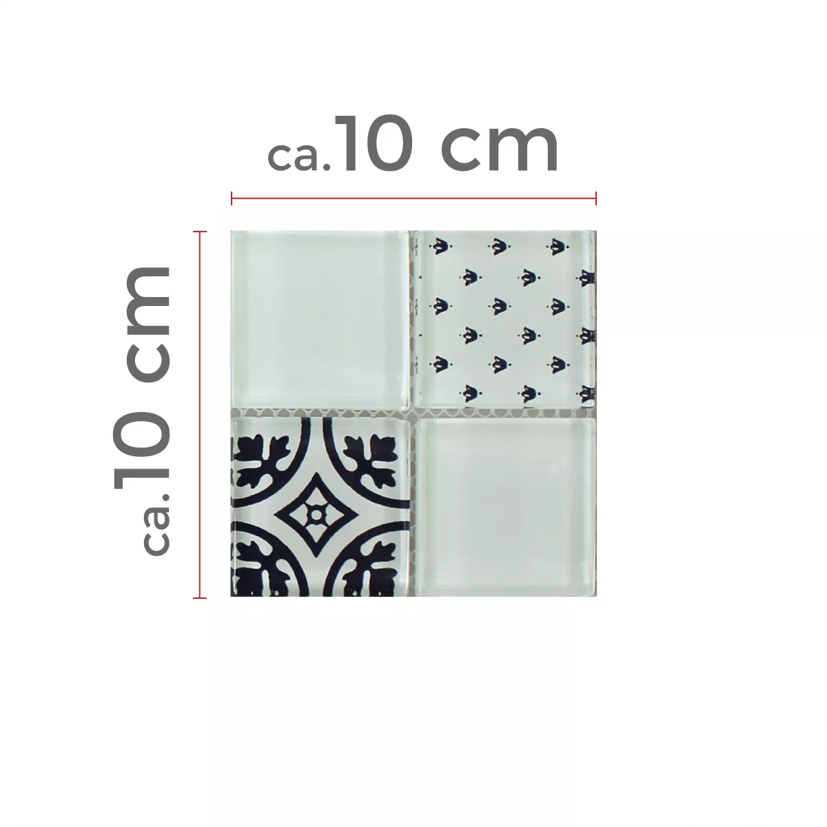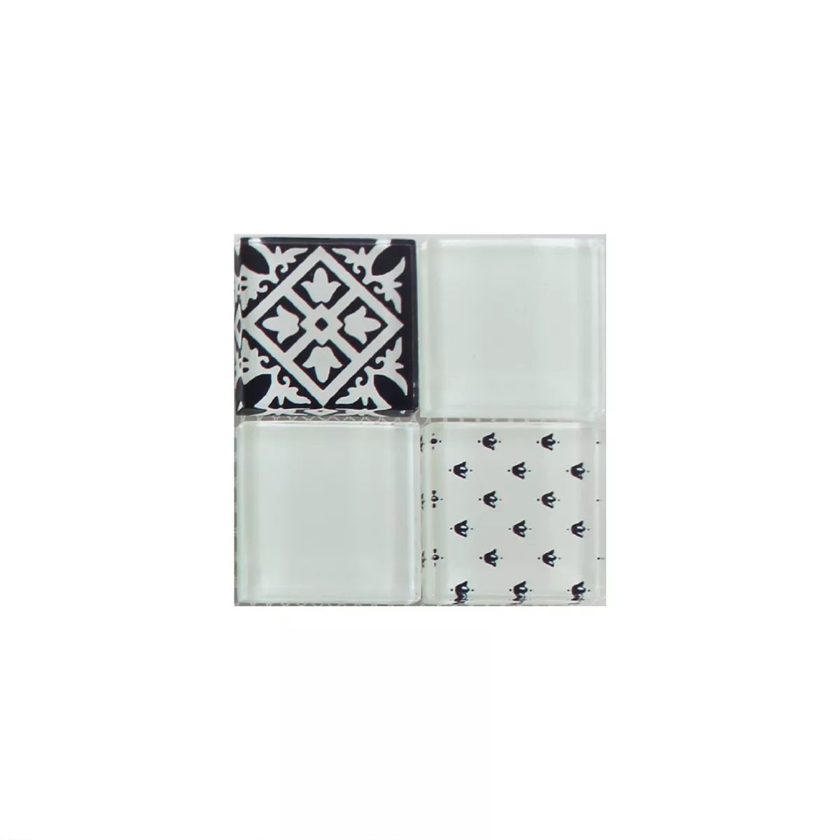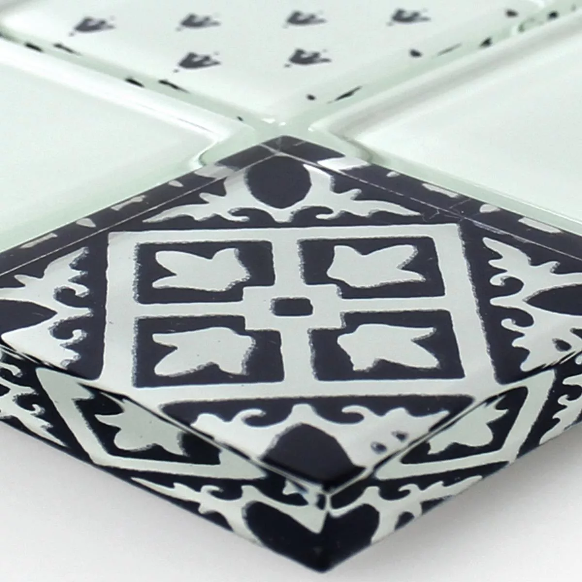 Prøve Mosaik Fliser Glas Barock Ornament Hvid