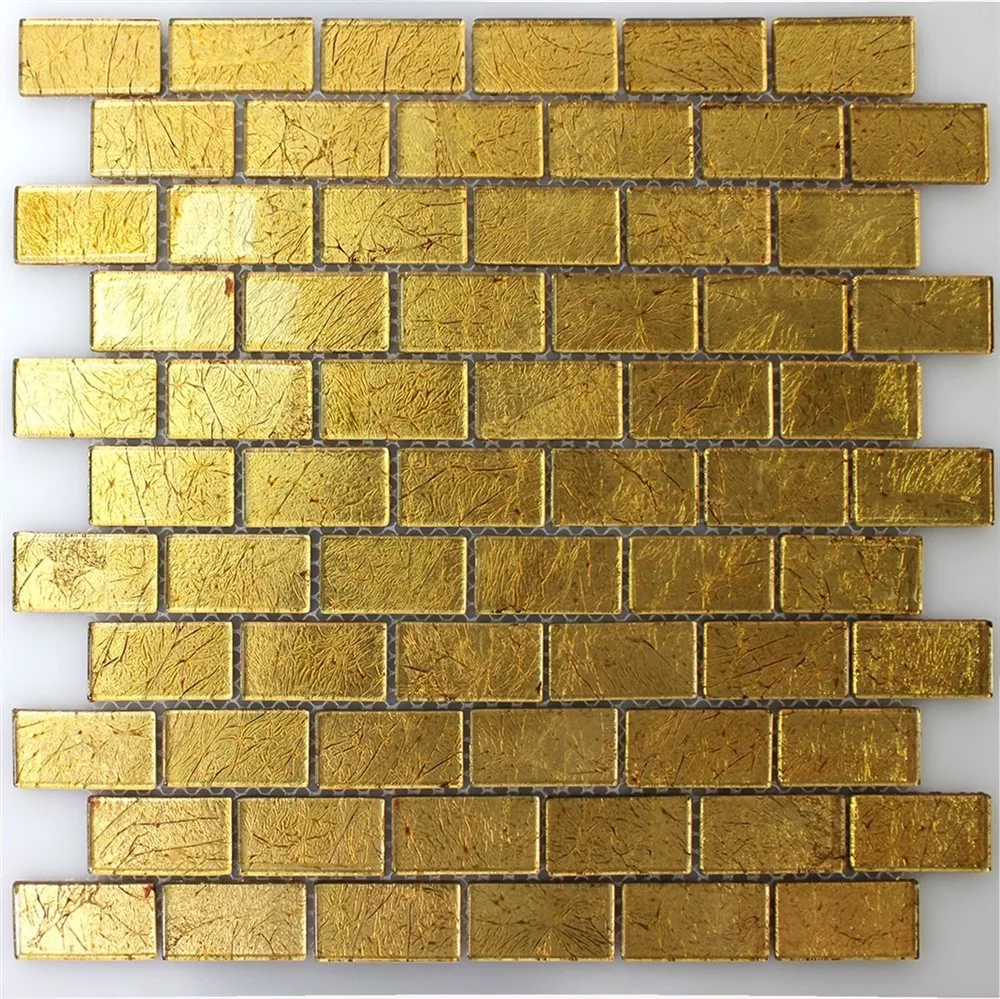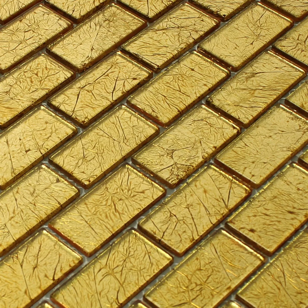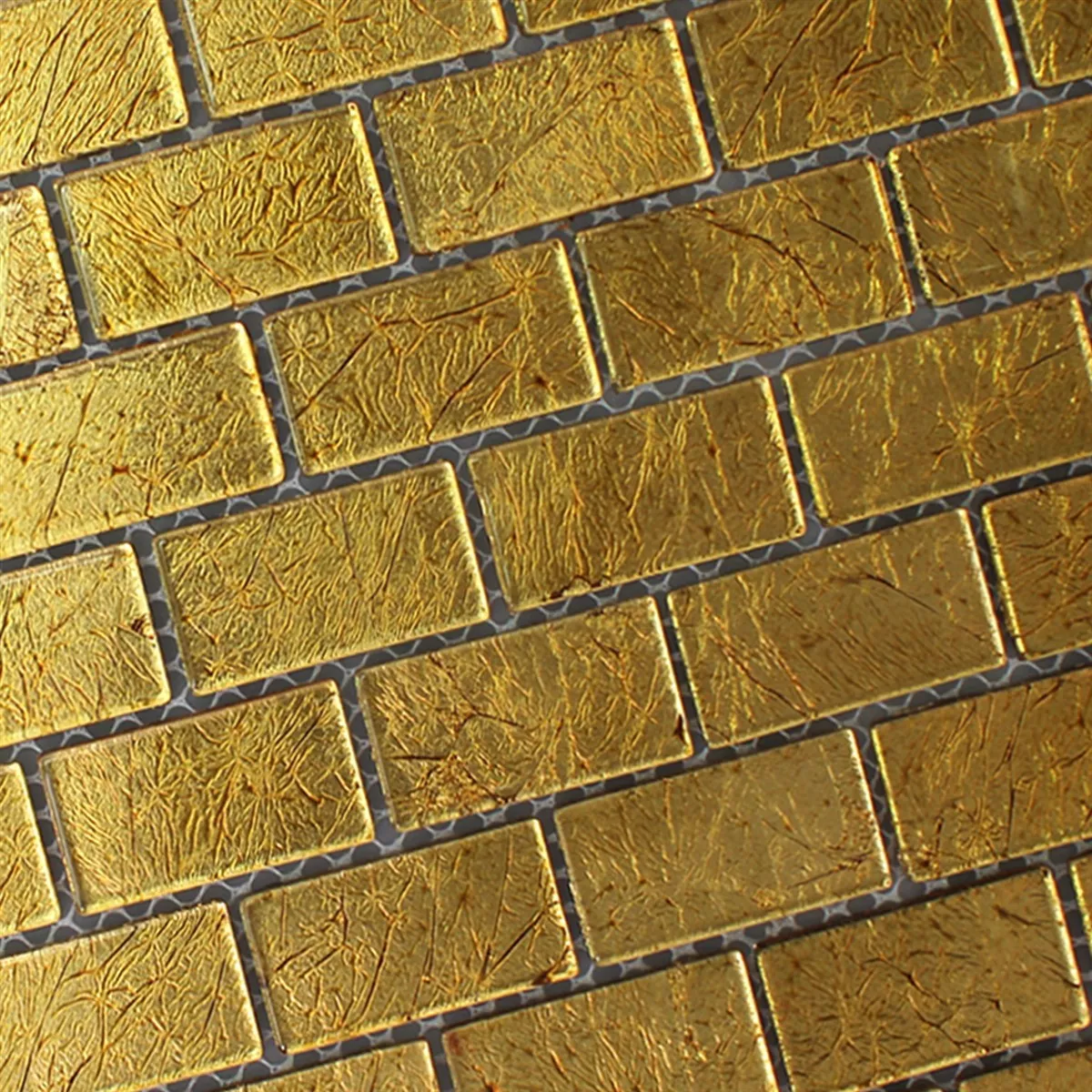 Prøve Mosaik Fliser Glas Brick Krystal Guld Struktur