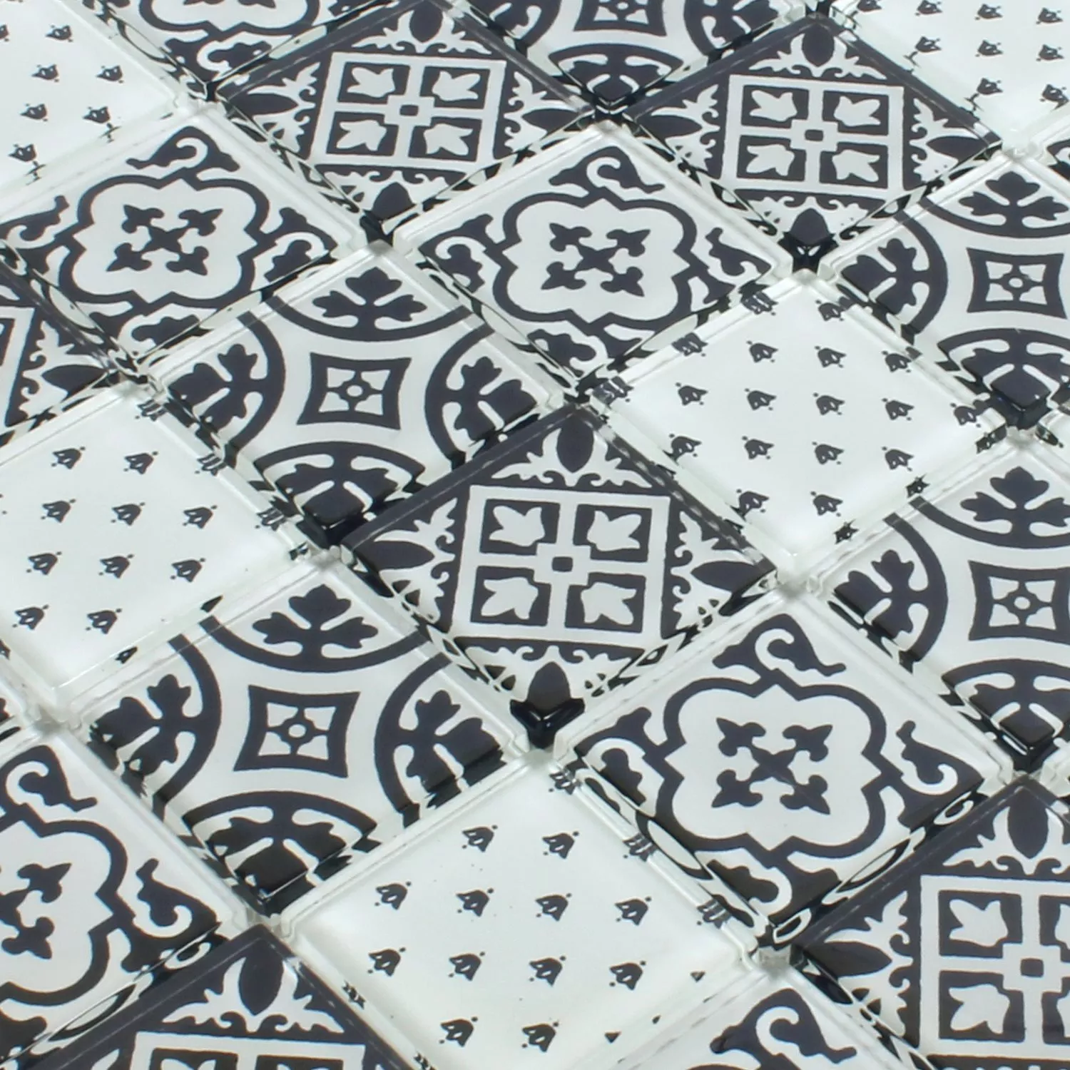 Prøve Mosaik Fliser Glas Dante Sort Hvid