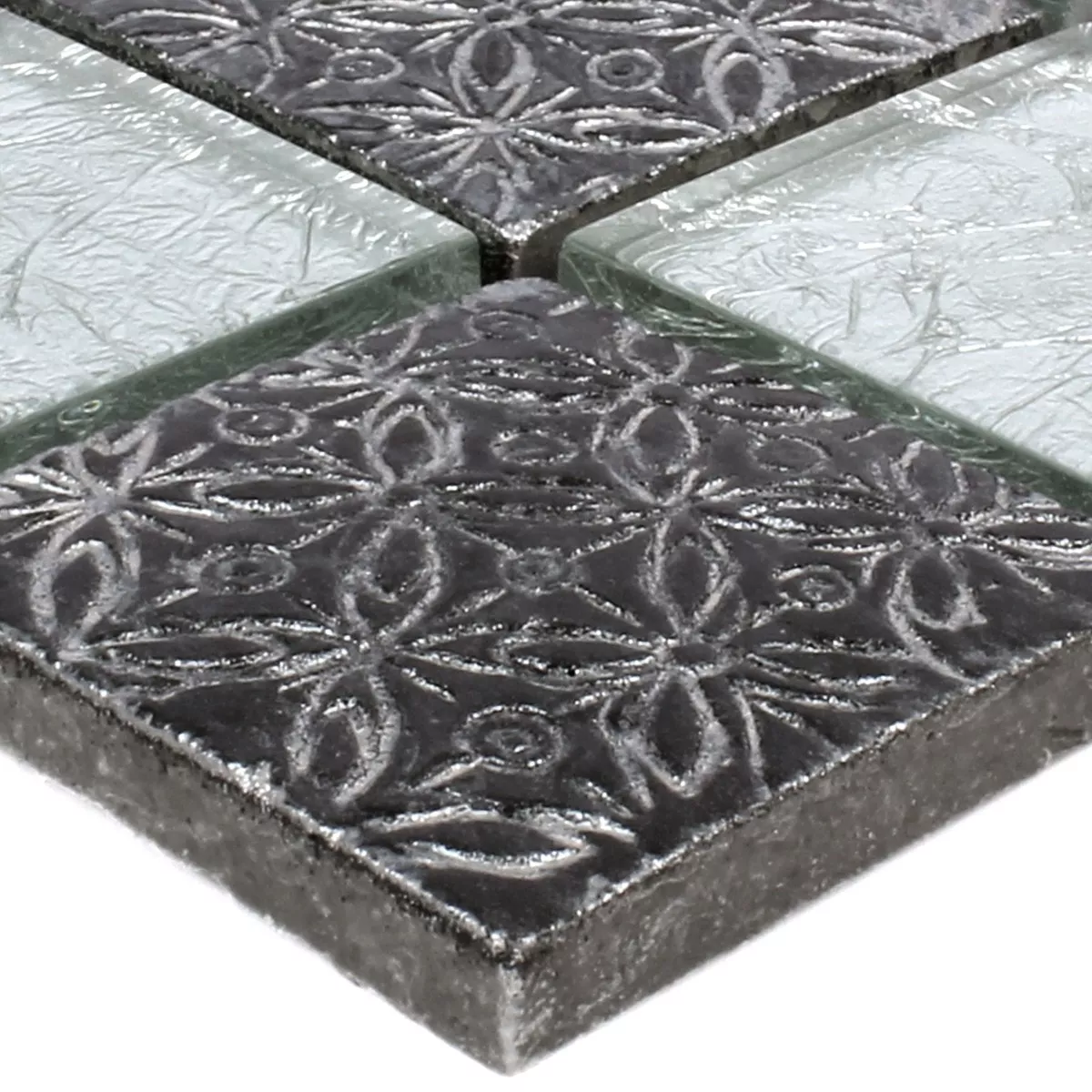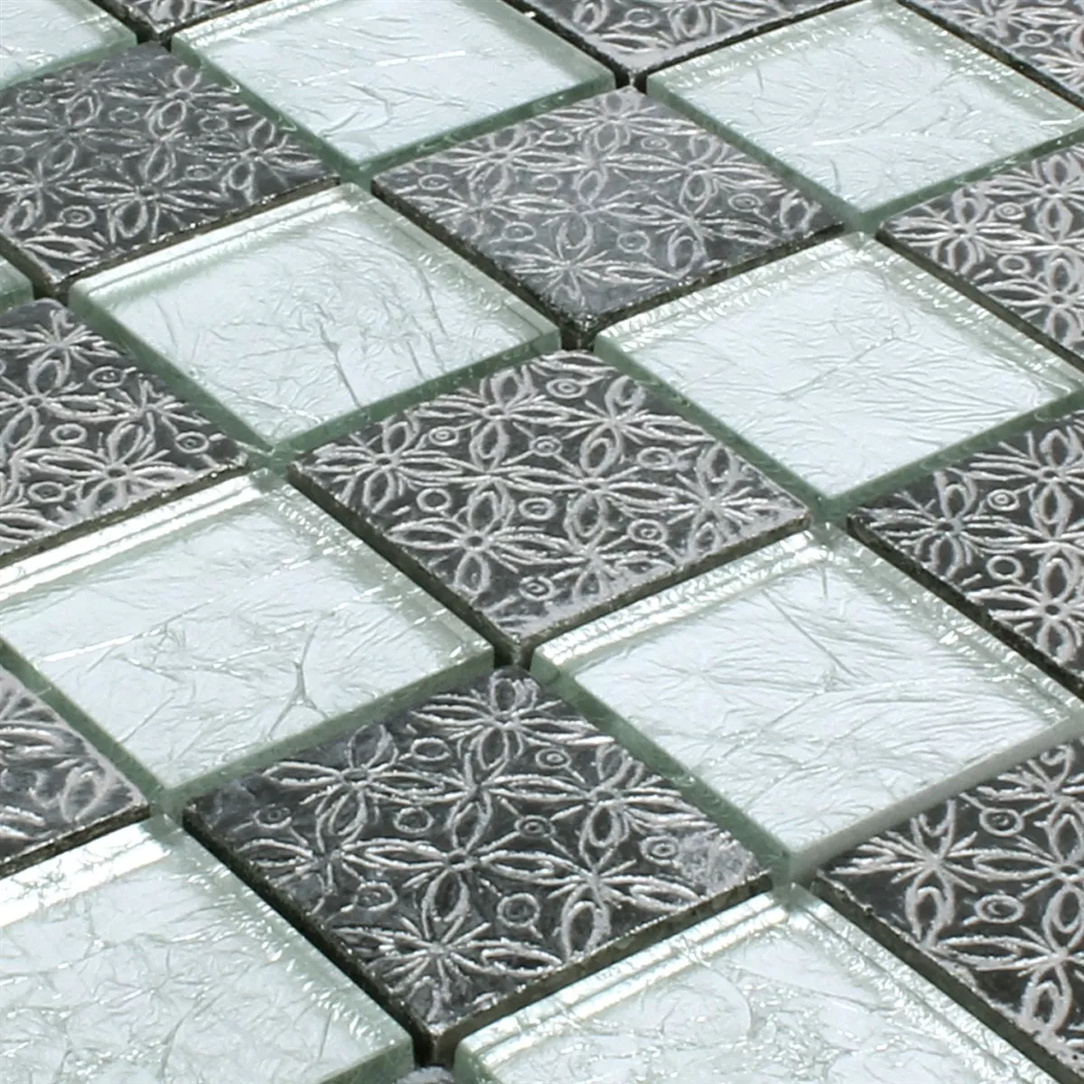 Prøve Mosaik Fliser Glas Natursten Friesia Sølv