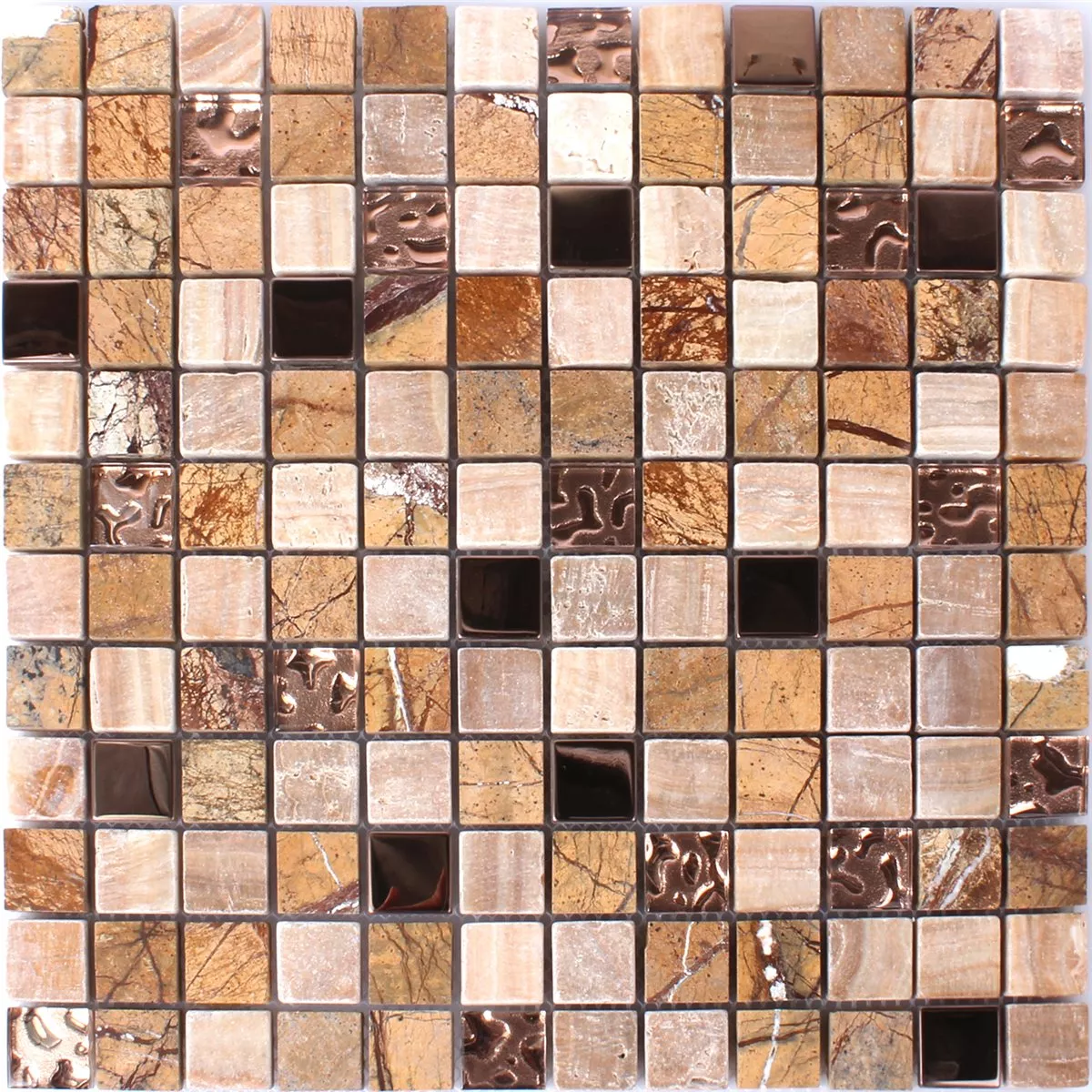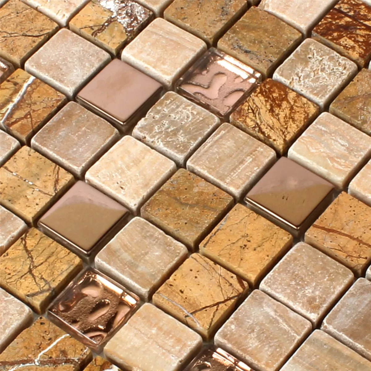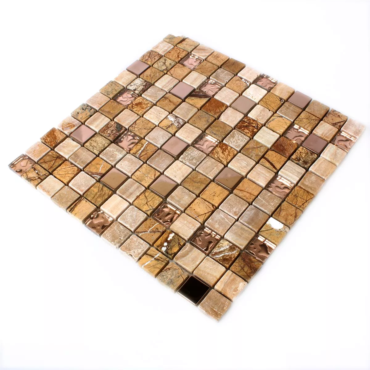 Prøve Mosaik Fliser Glas Natursten Rustfrit Stål Brun Mix