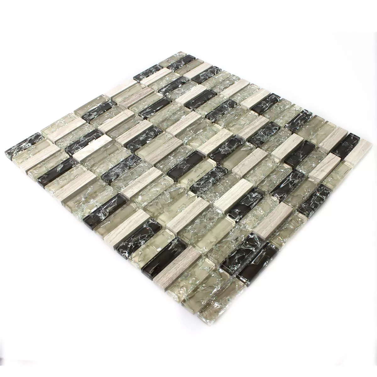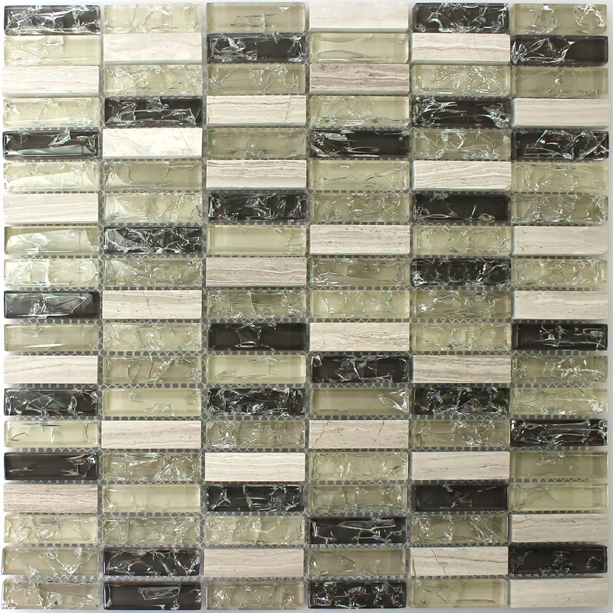 Prøve Mosaik Fliser Glas Natursten Stænger Grøn Gra