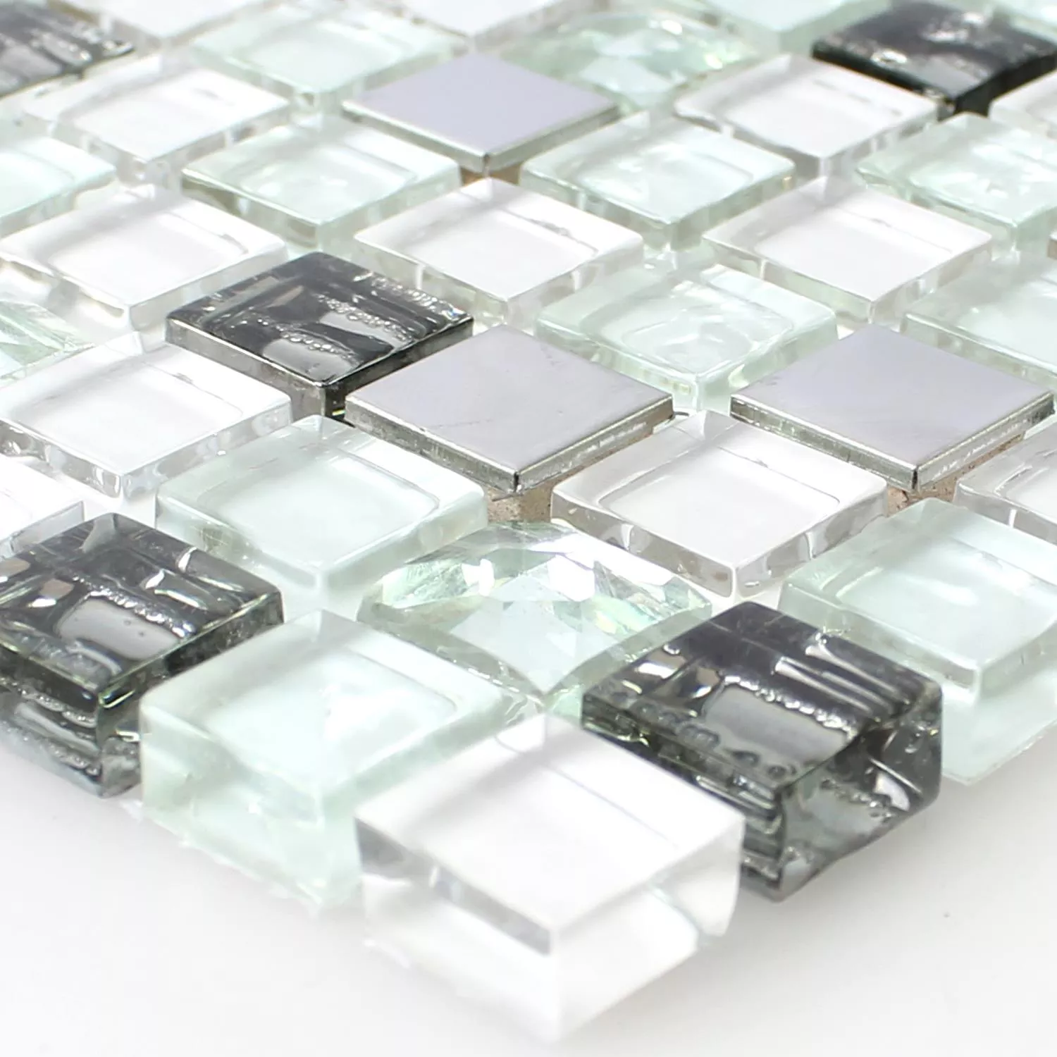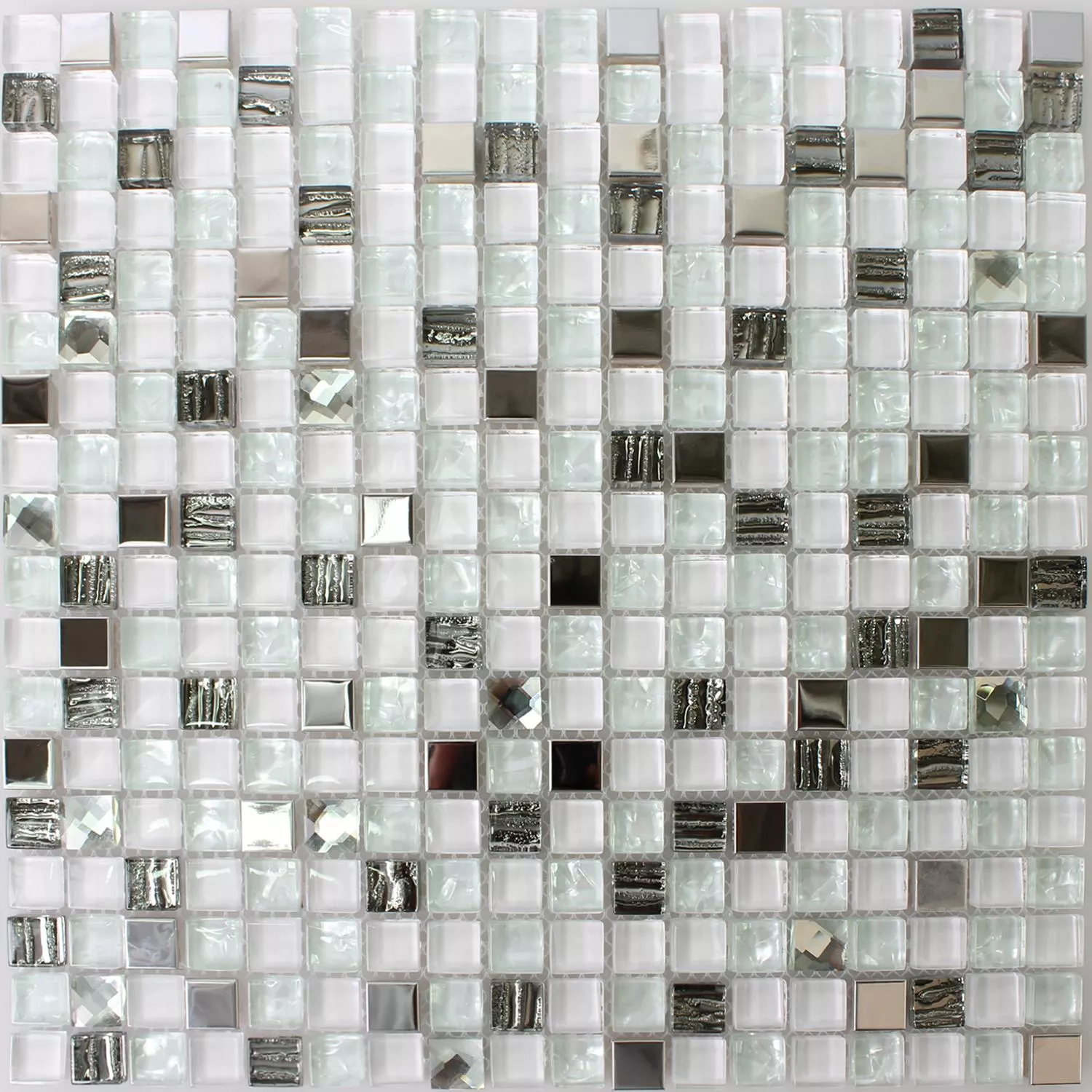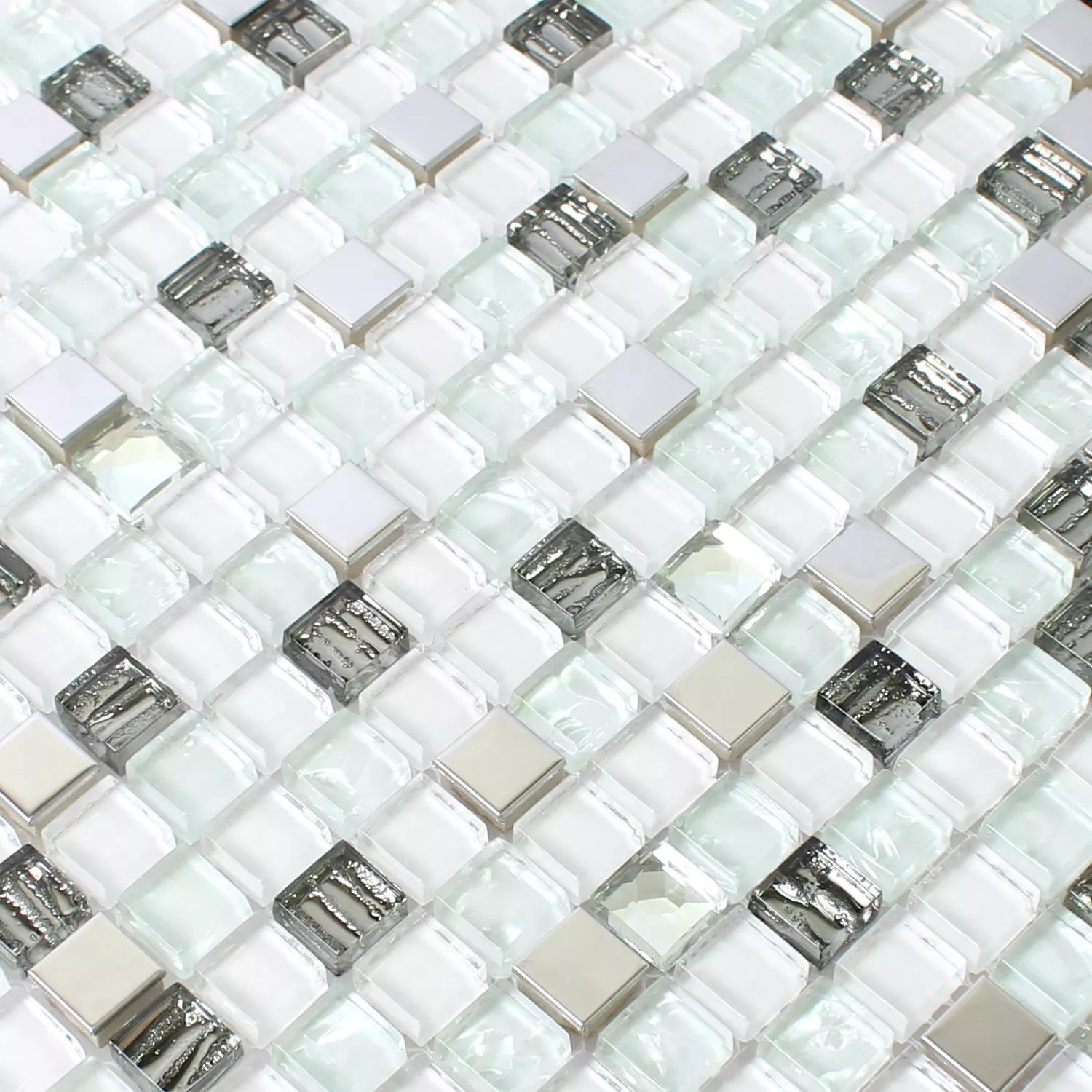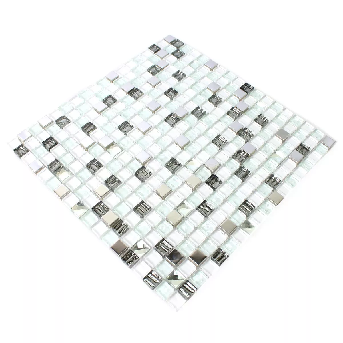 Prøve Mosaik Fliser Glas Rustfrit Stål Hvid