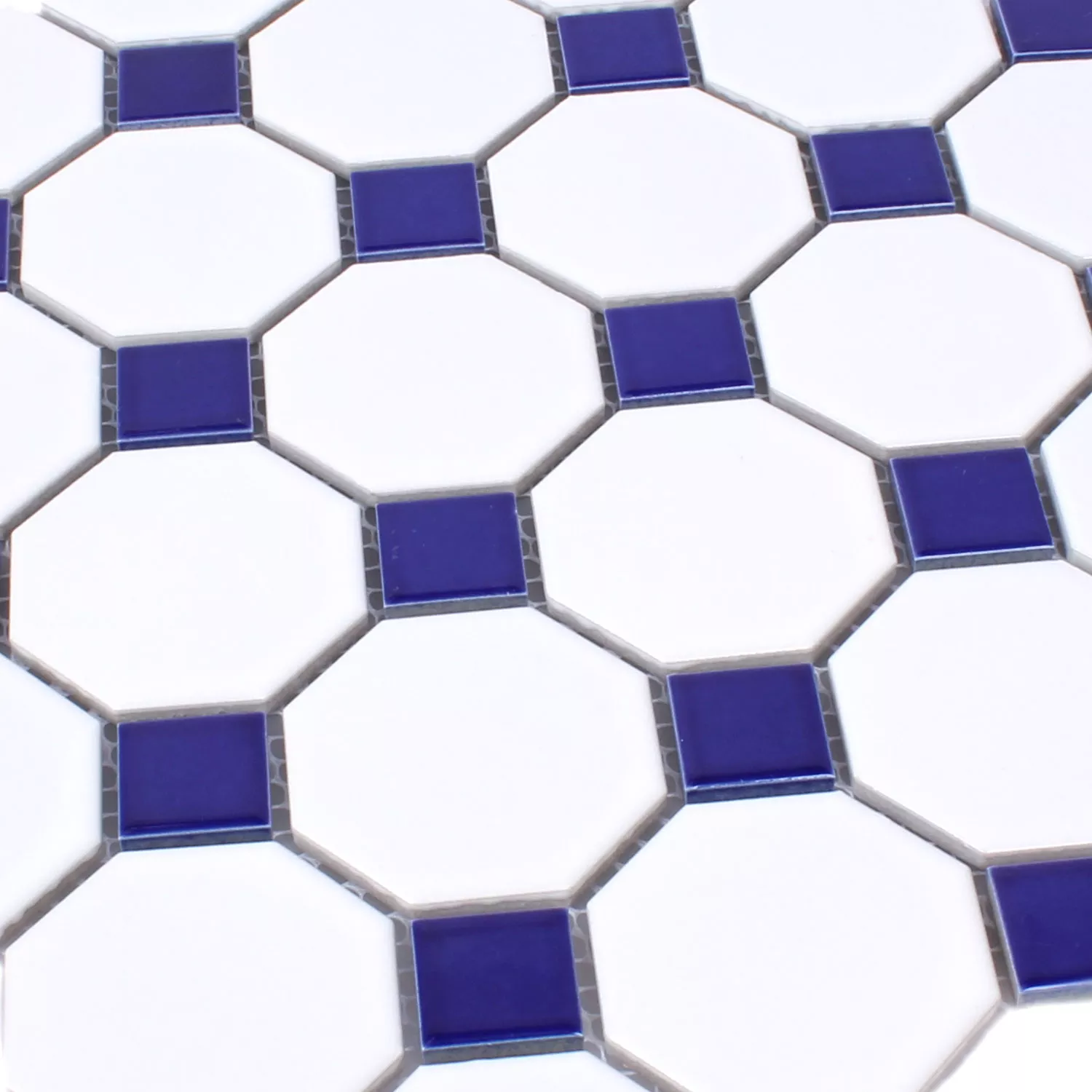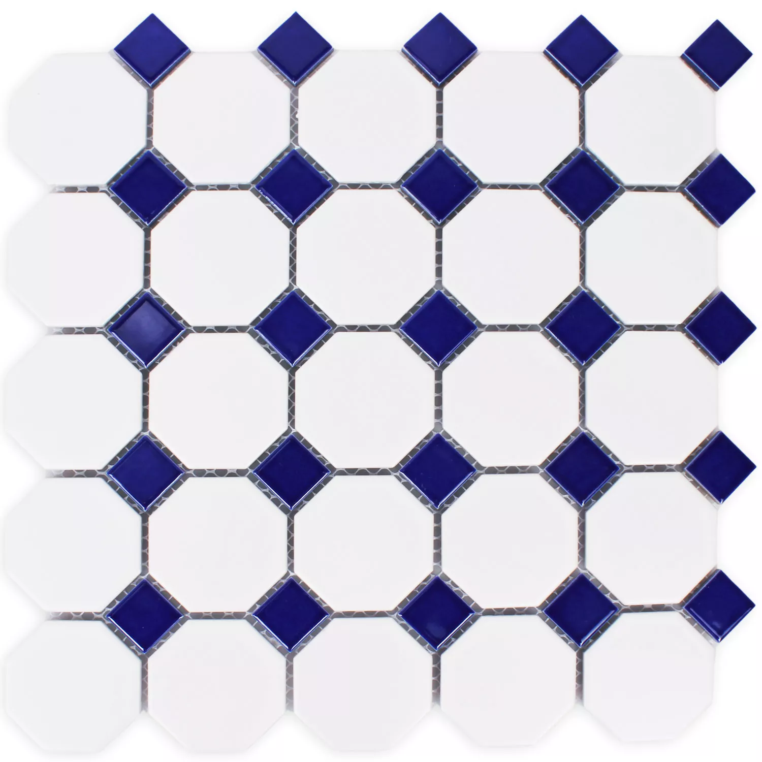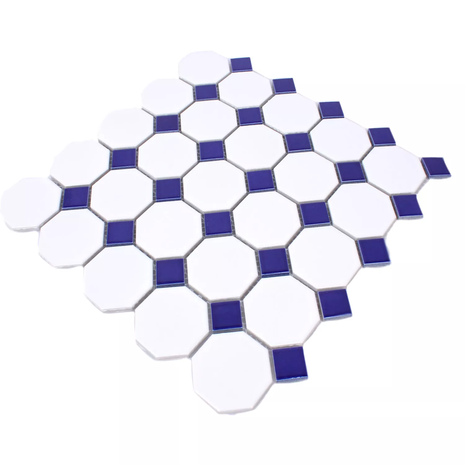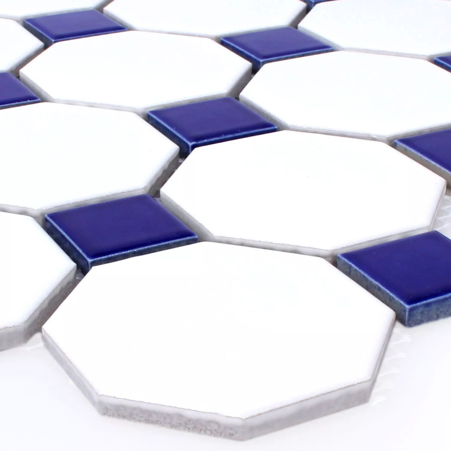 Prøve Mosaik Fliser Keramik Octagon Belami Hvid Blå