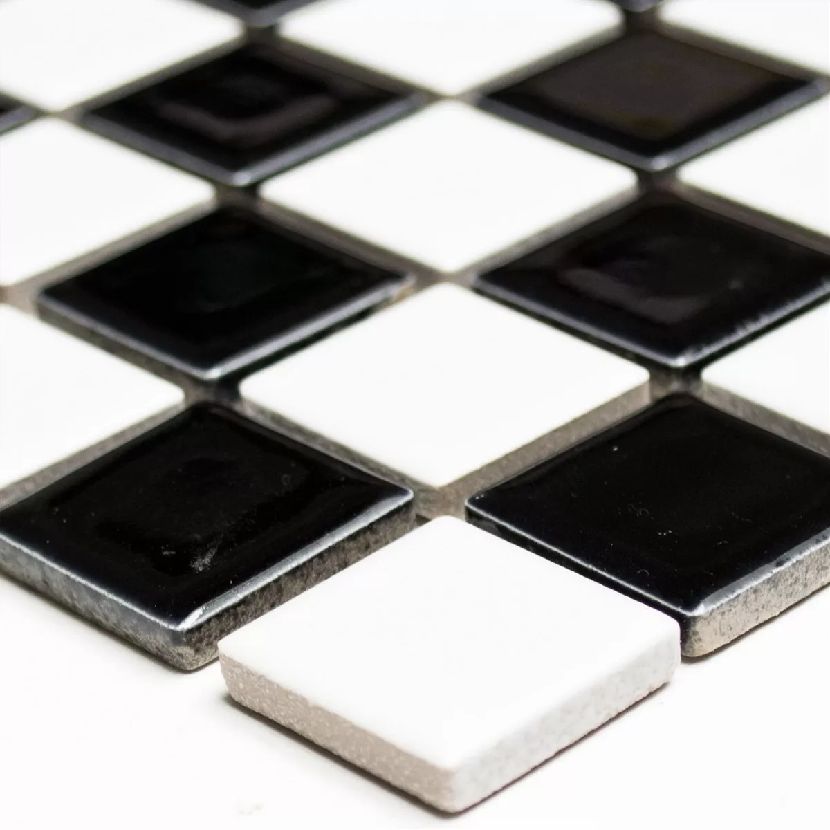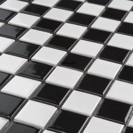 Prøve Mosaik Fliser Keramik Sort Skakbræt