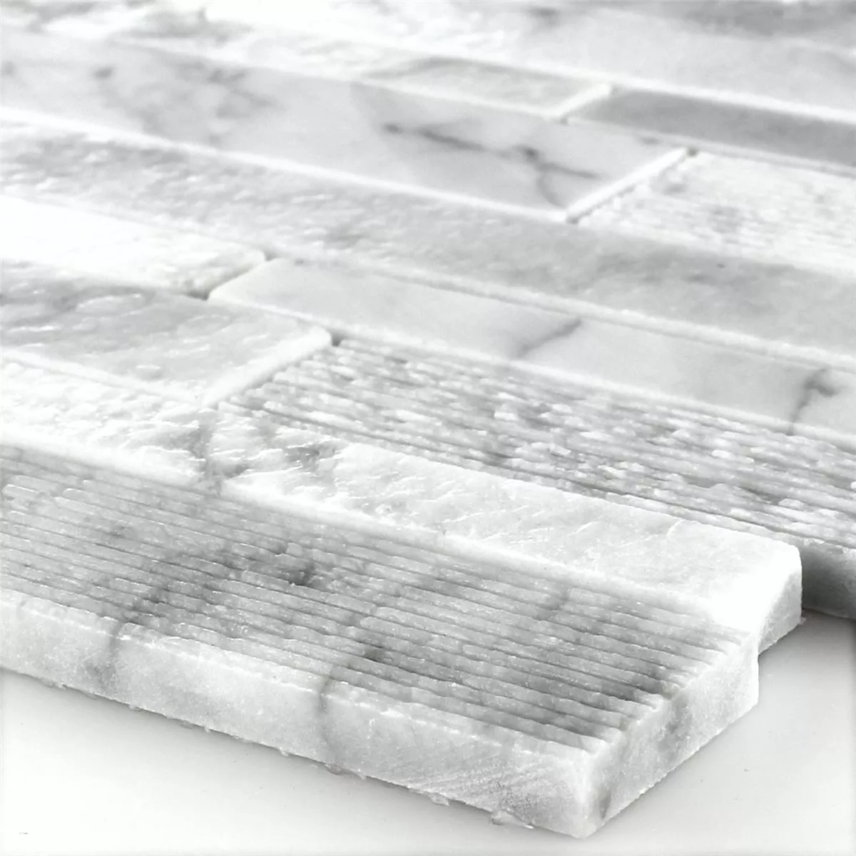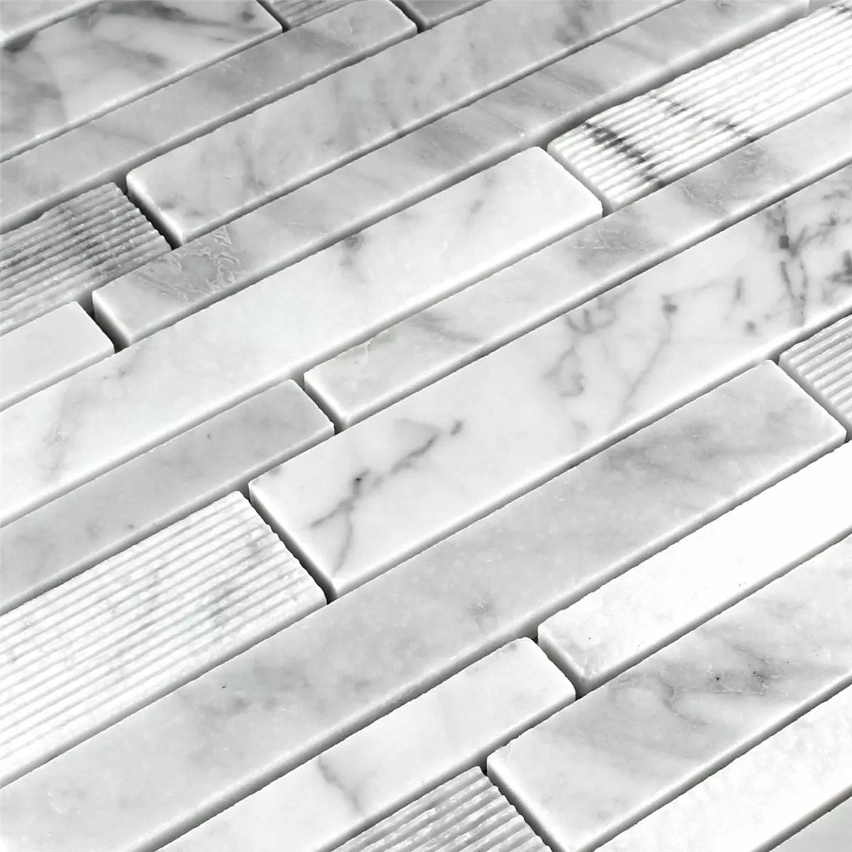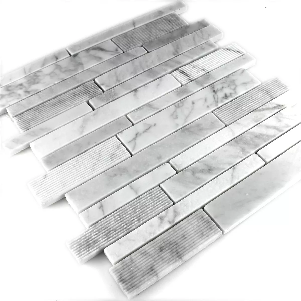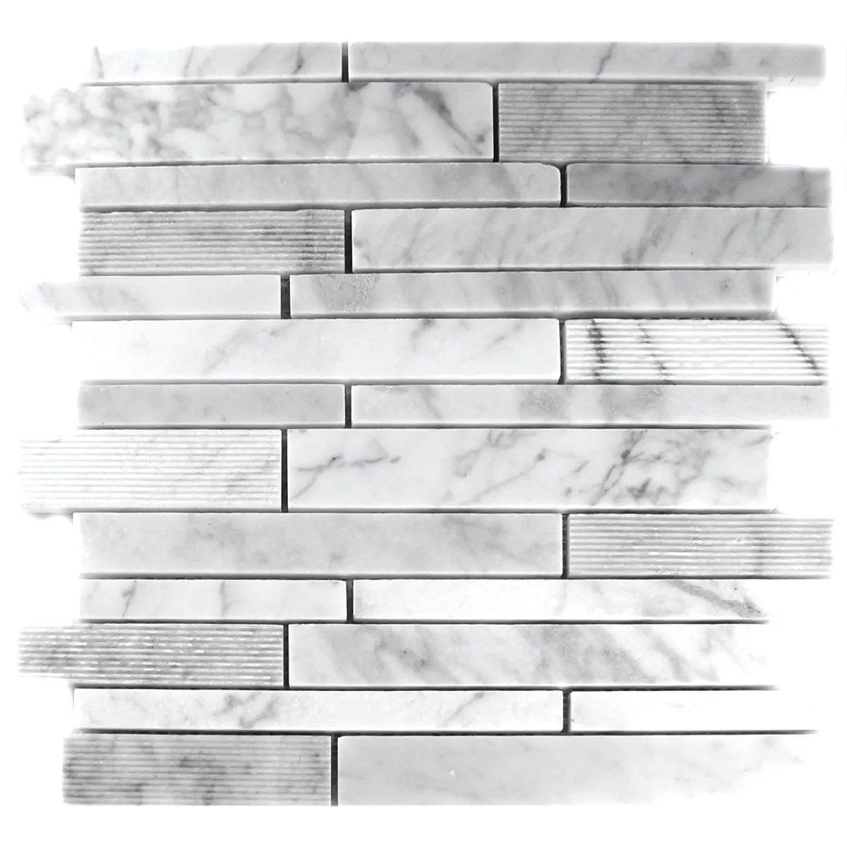 Prøve Mosaik Fliser Marmor Stænger Fræses Hvid