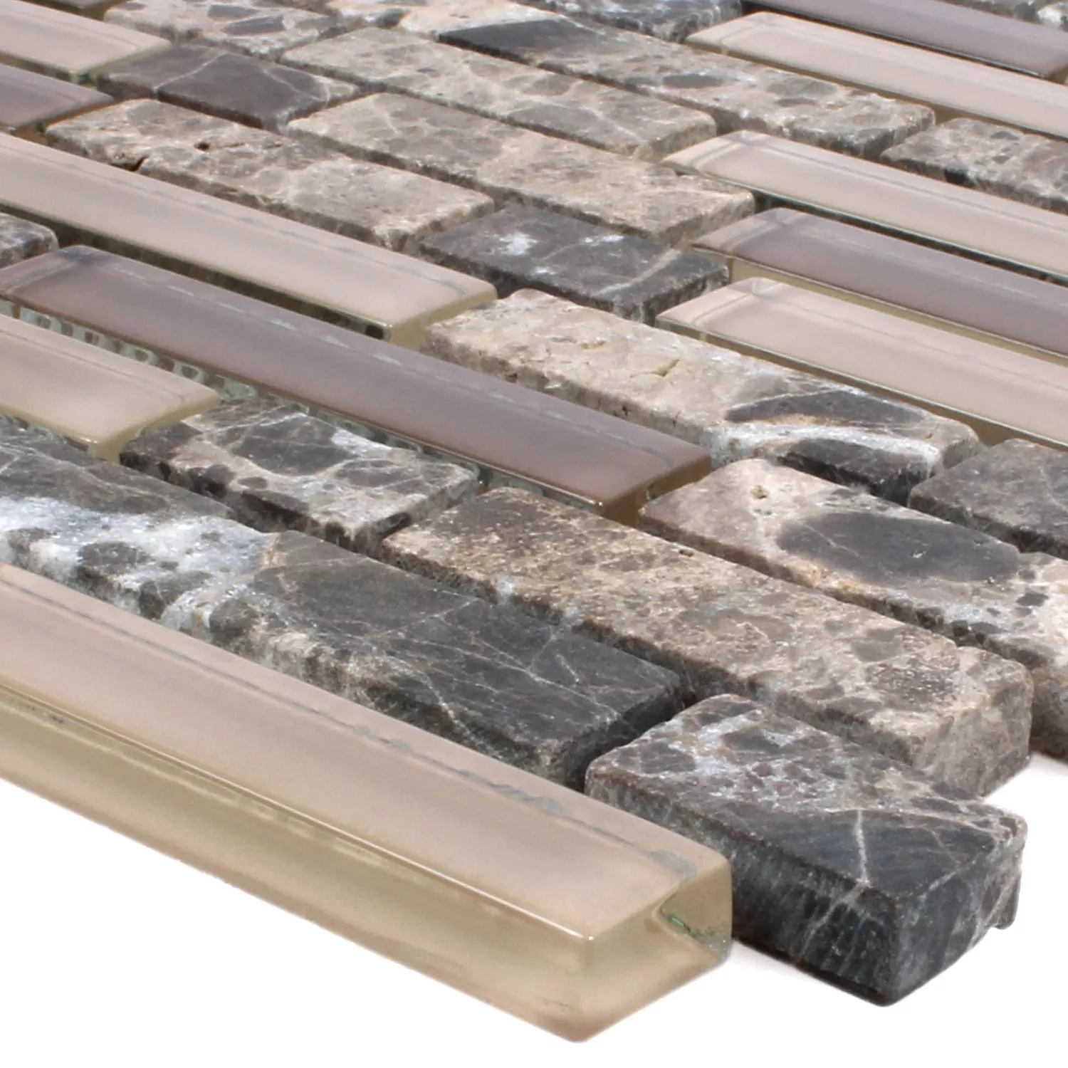 Prøve Mosaik Fliser Milos Glas Natursten Mix Brun