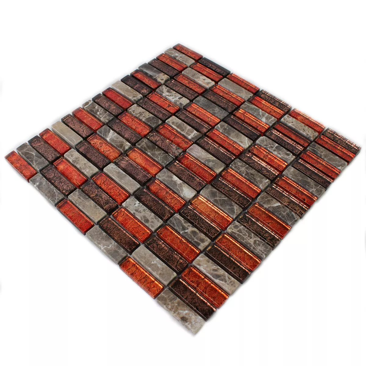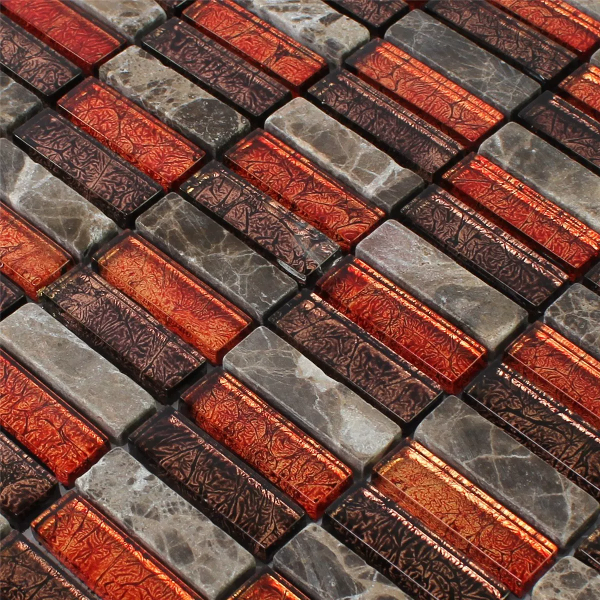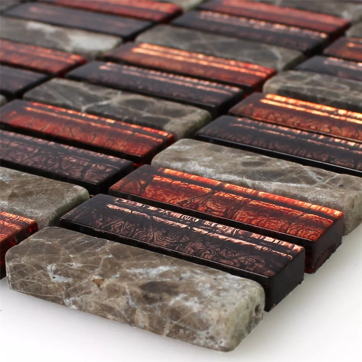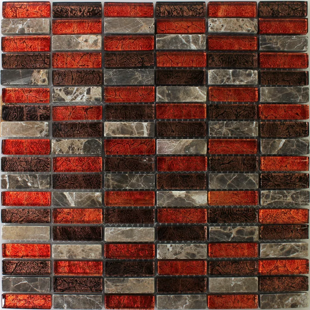 Prøve Mosaik Fliser Natursten Glas Rød Brun Stick