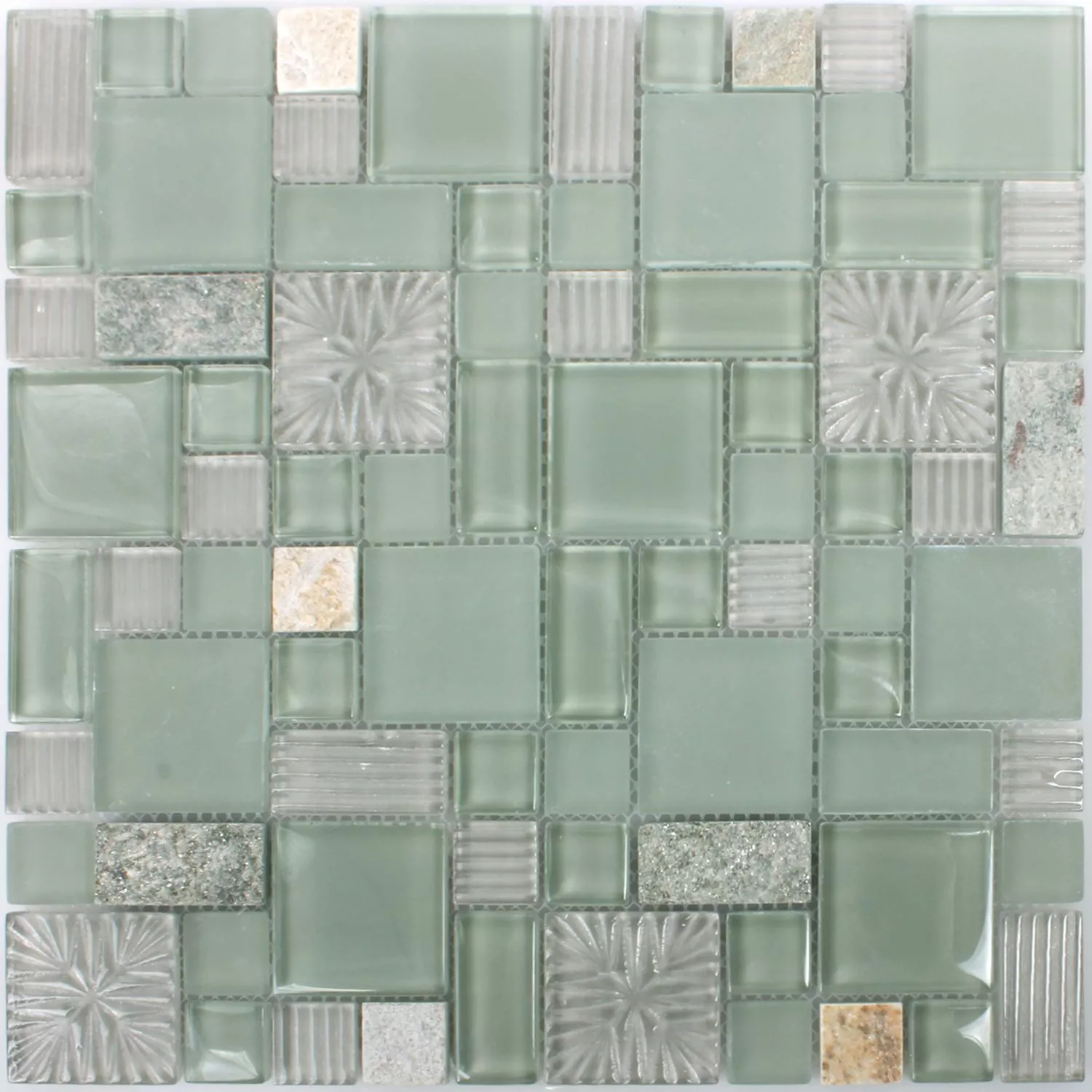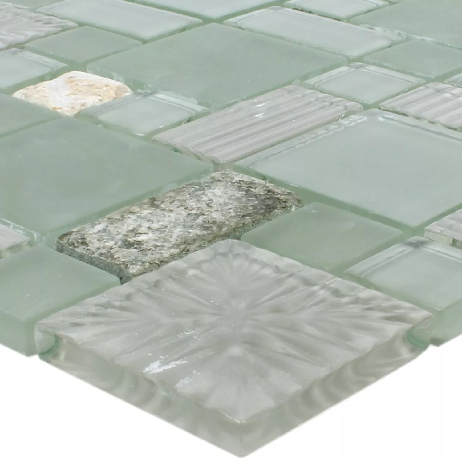 Prøve Mosaik Fliser Norderney Glas Natursten Gra
