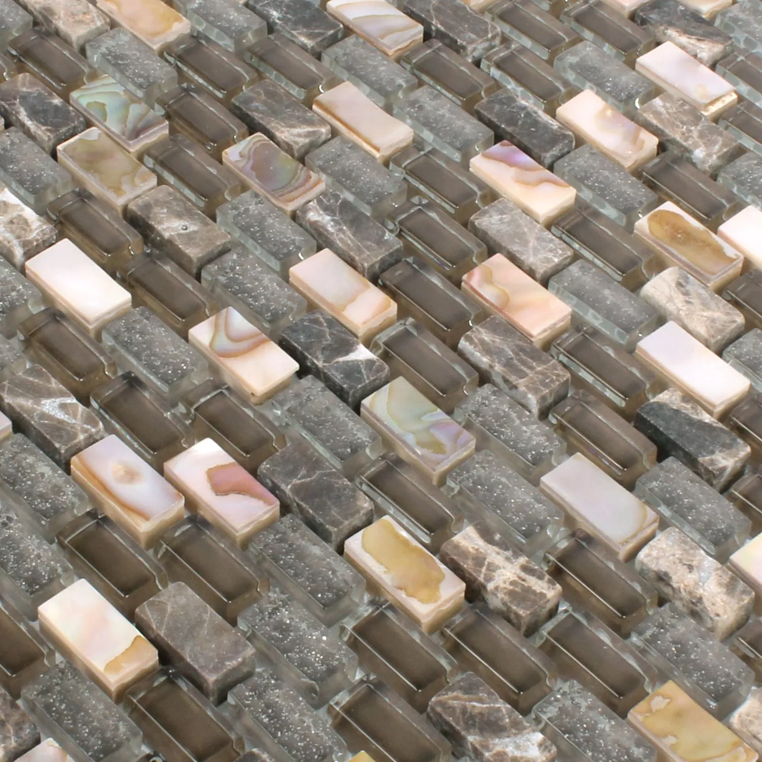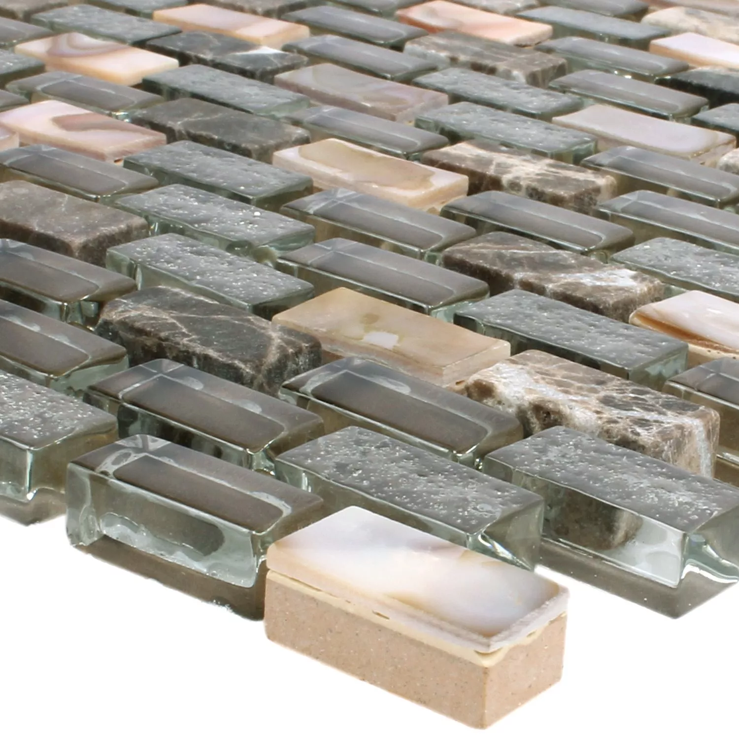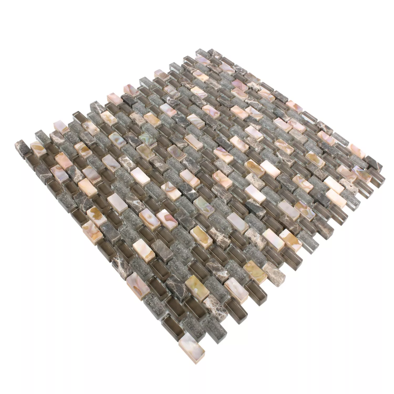 Prøve Mosaik Fliser Shell Glas Natursten Jasmina Morkbrun
